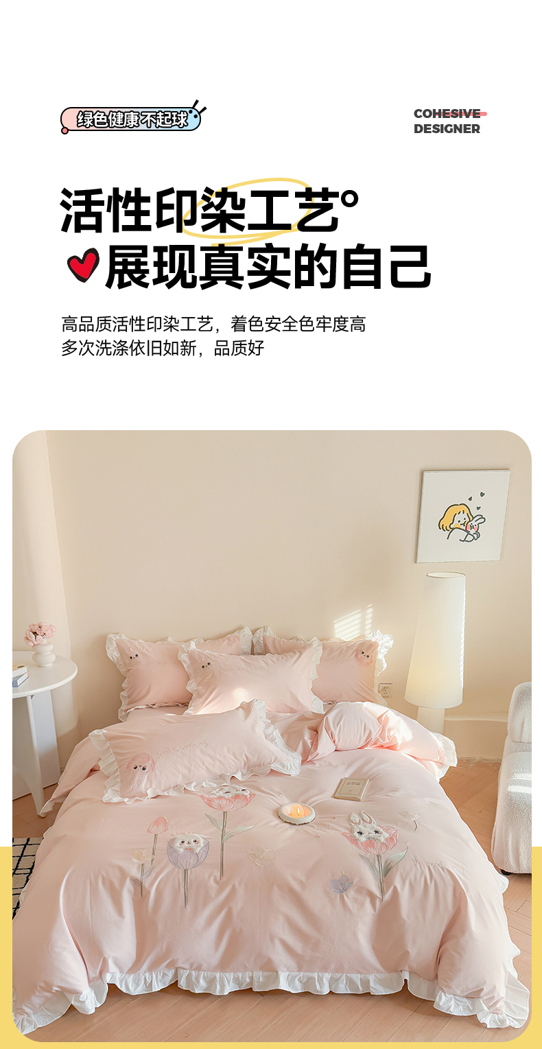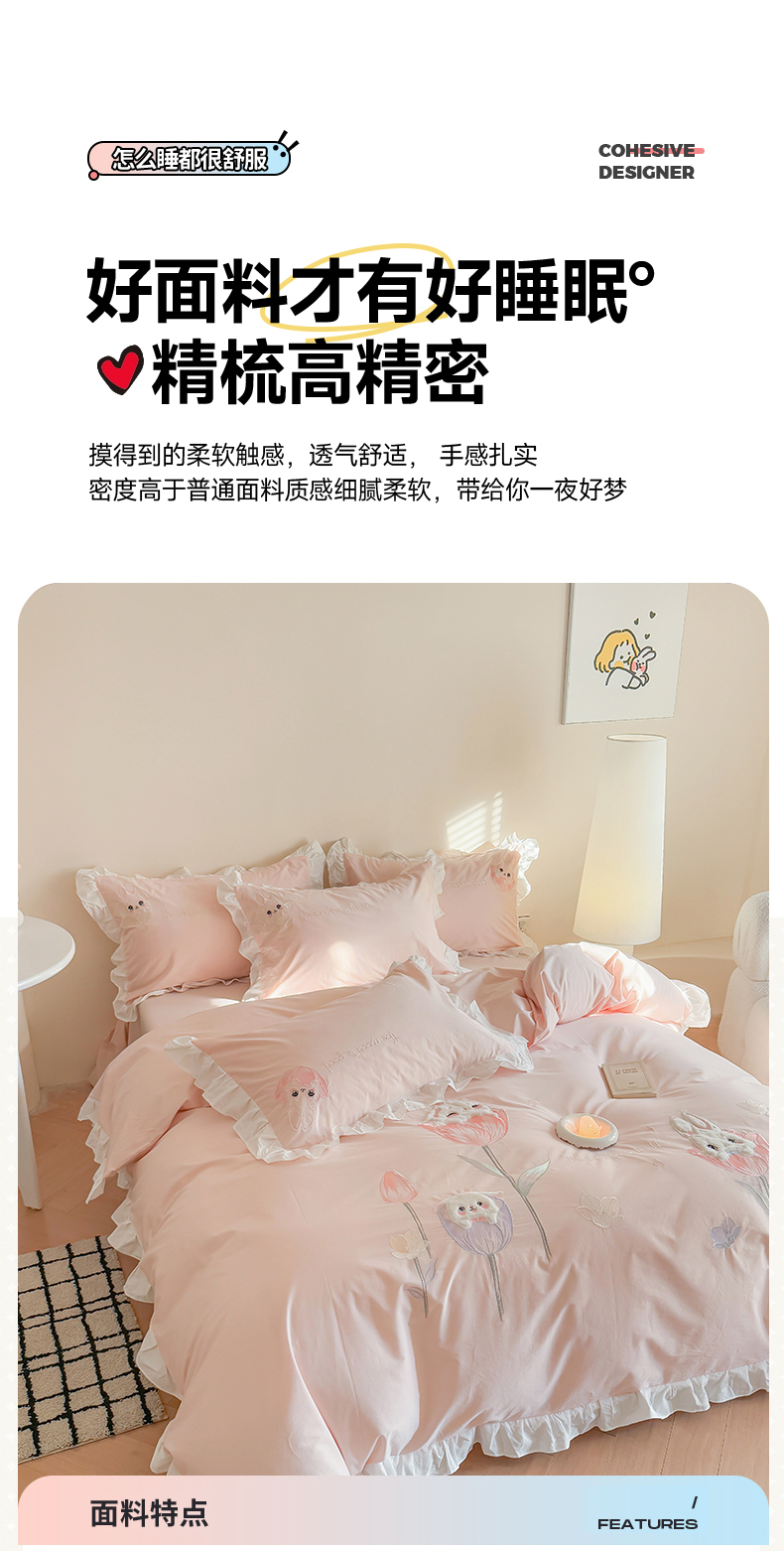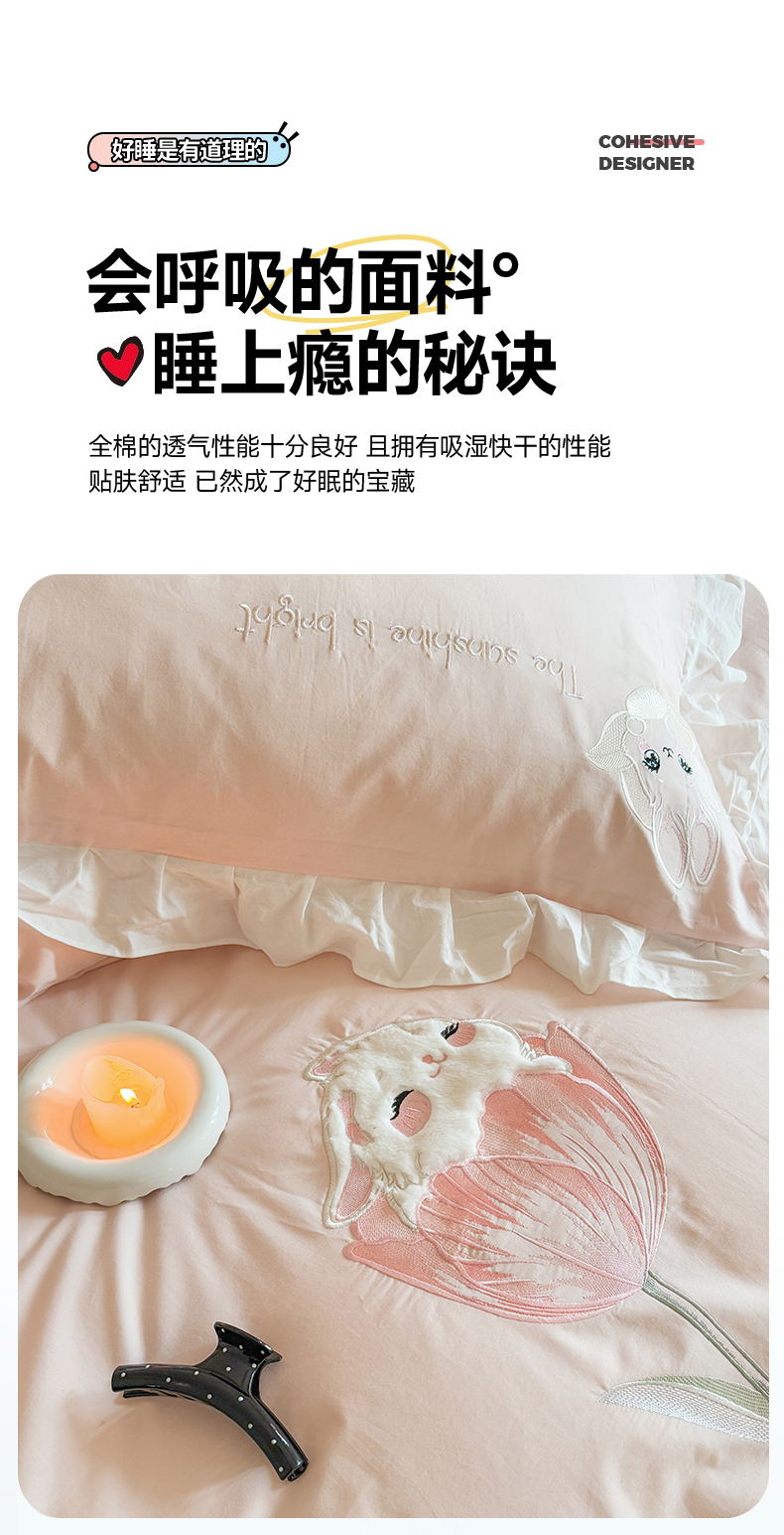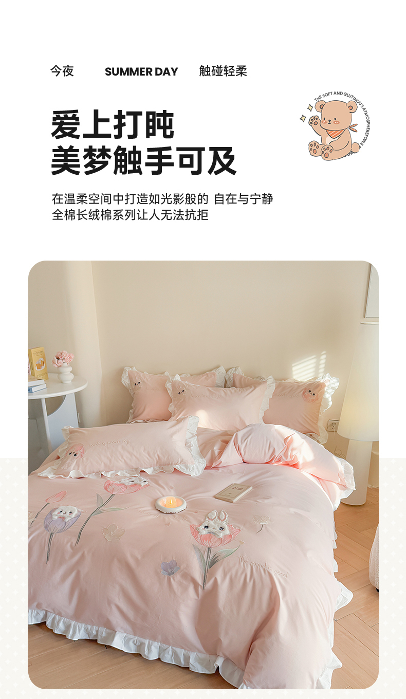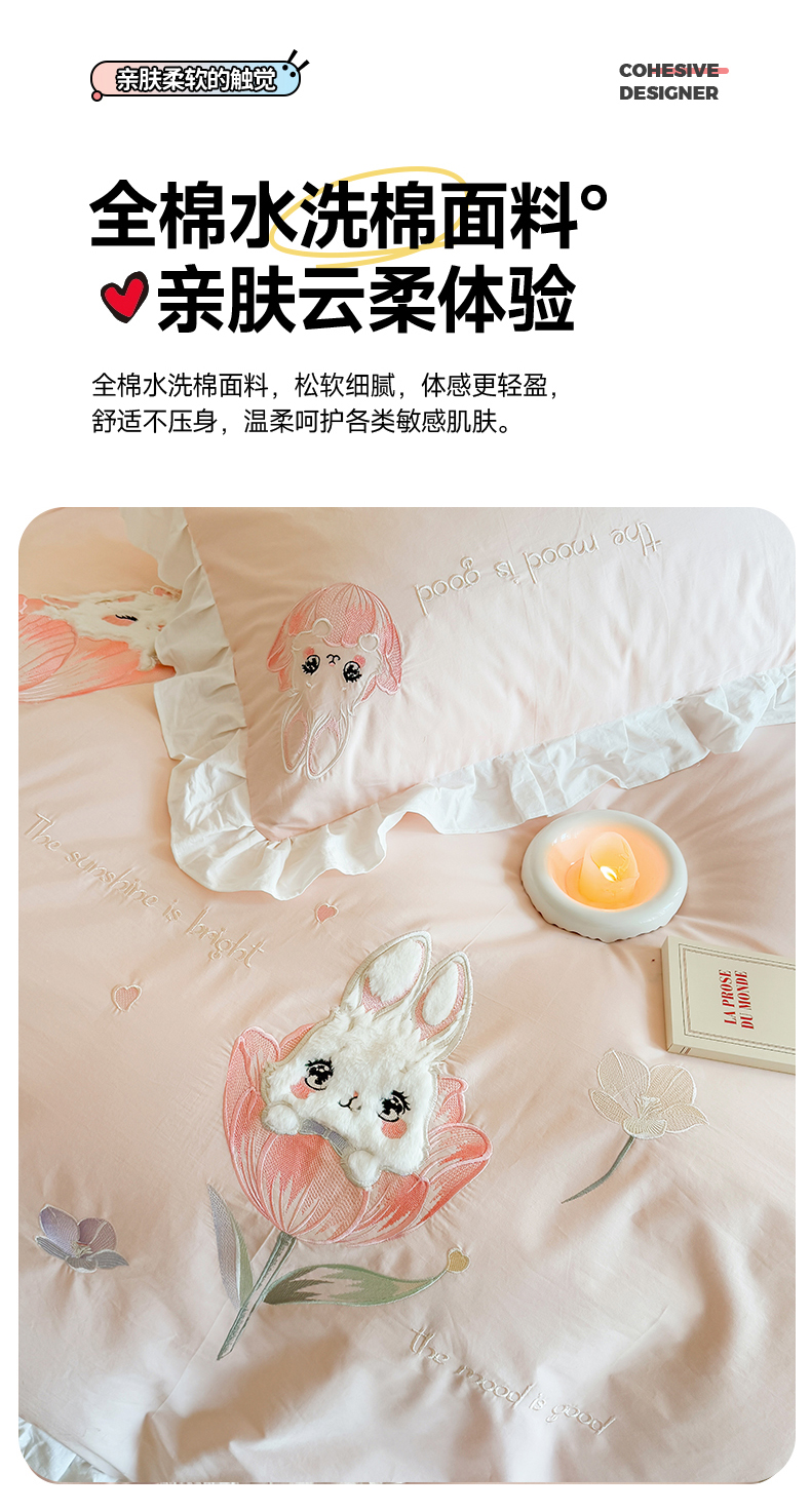 当前位置: 91家纺网 > 商品网购 > 床品套件 > 四件套 > 全棉普通四件套 > 蜜柚2025花边款贴布郁金香小兔 郁金香小兔 浅粉