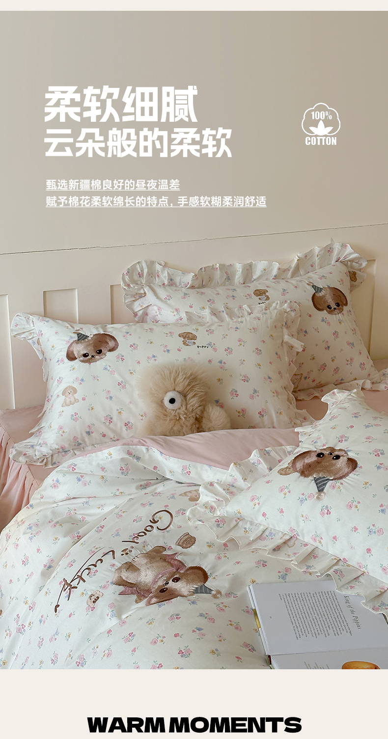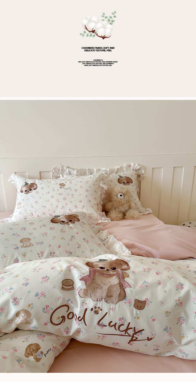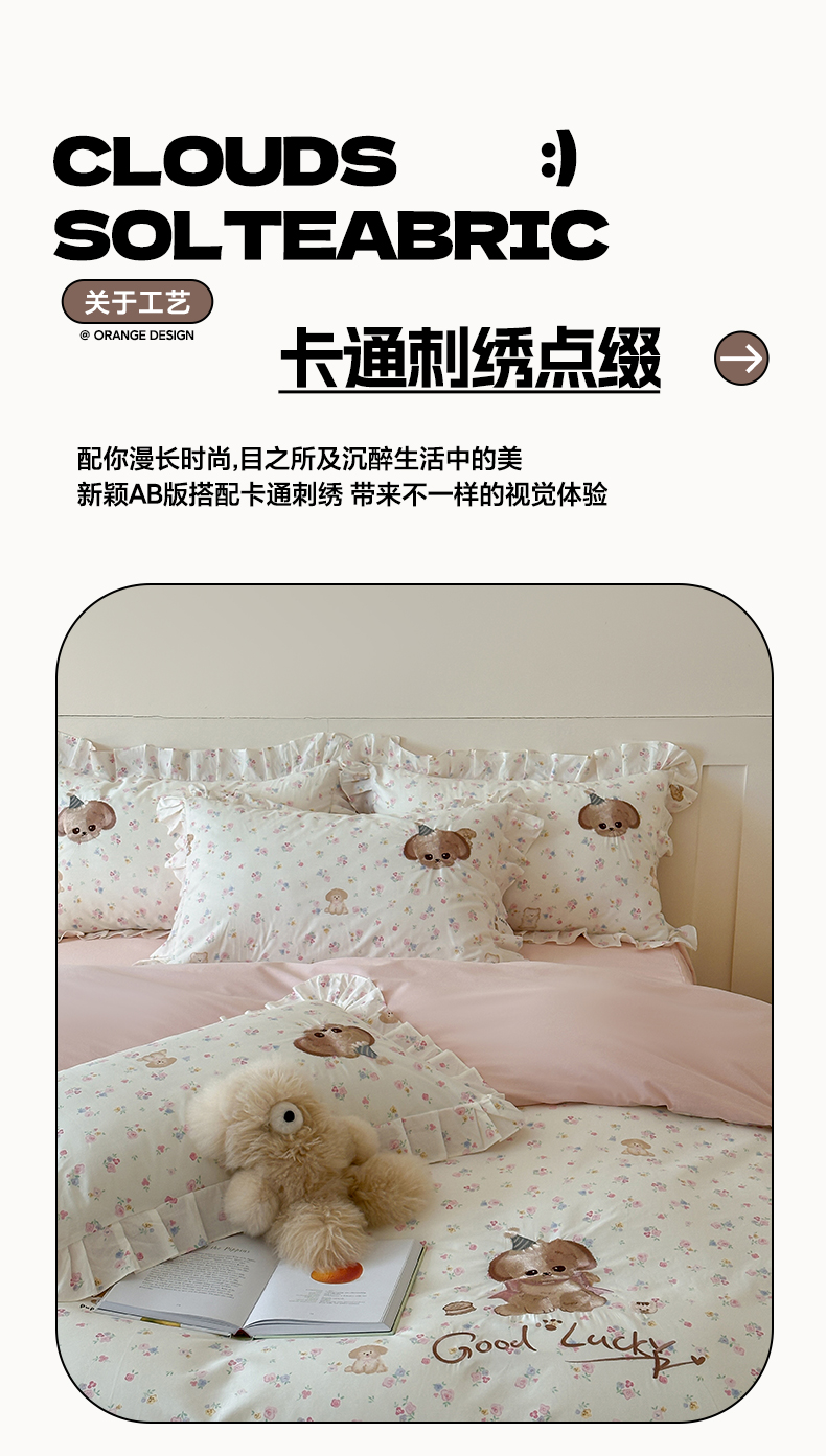 当前位置: 91家纺网 > 商品网购 > 床品套件 > 四件套 > 全棉普通四件套 > 卡巴伦 床裙款-全棉卡通刺绣套件 花涧梦
