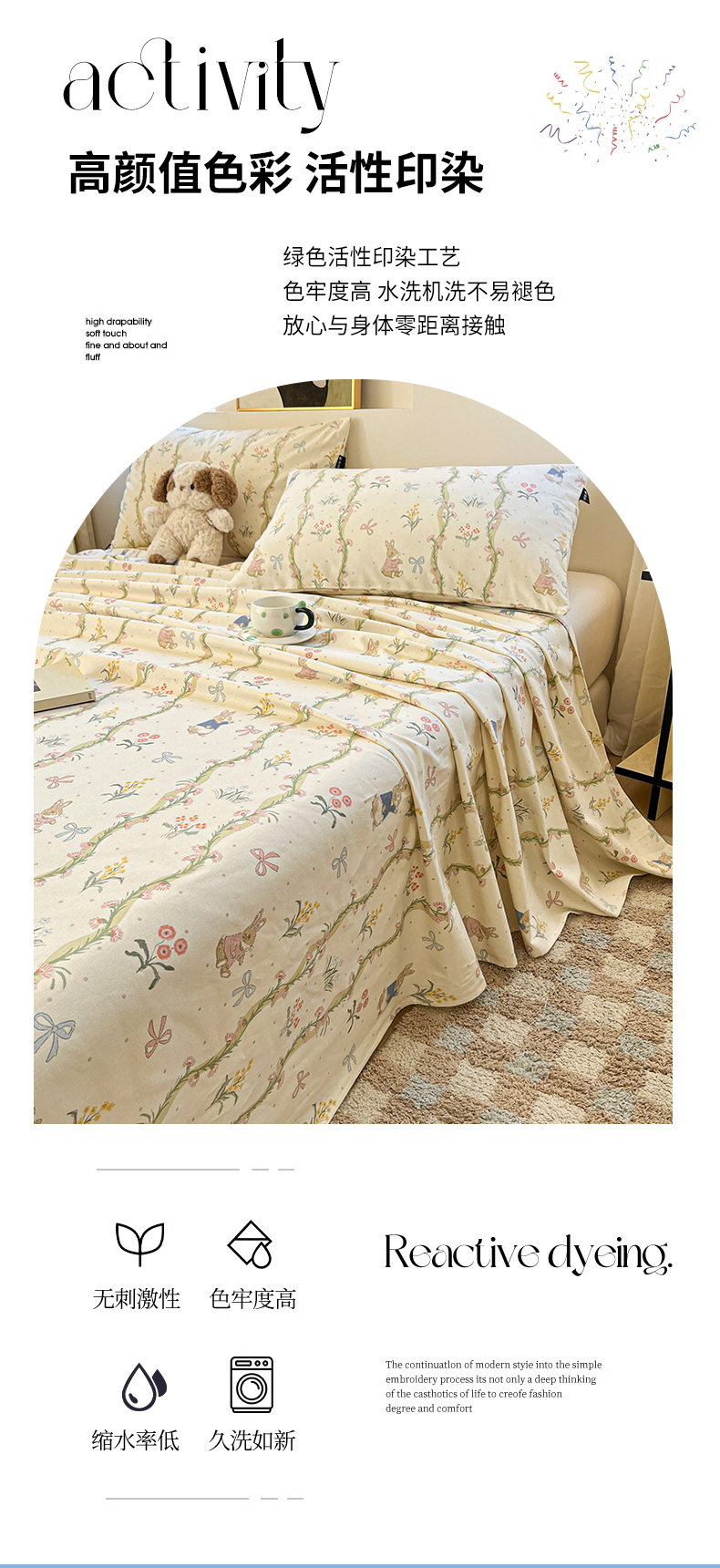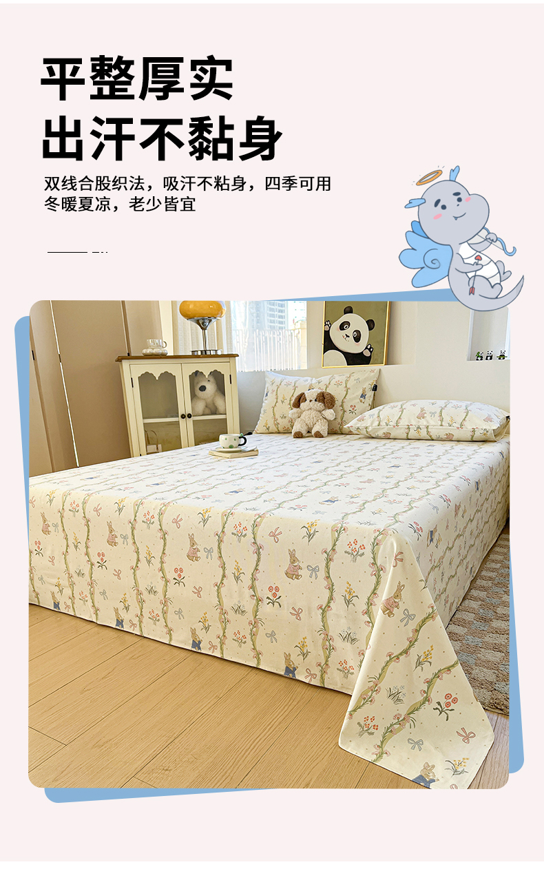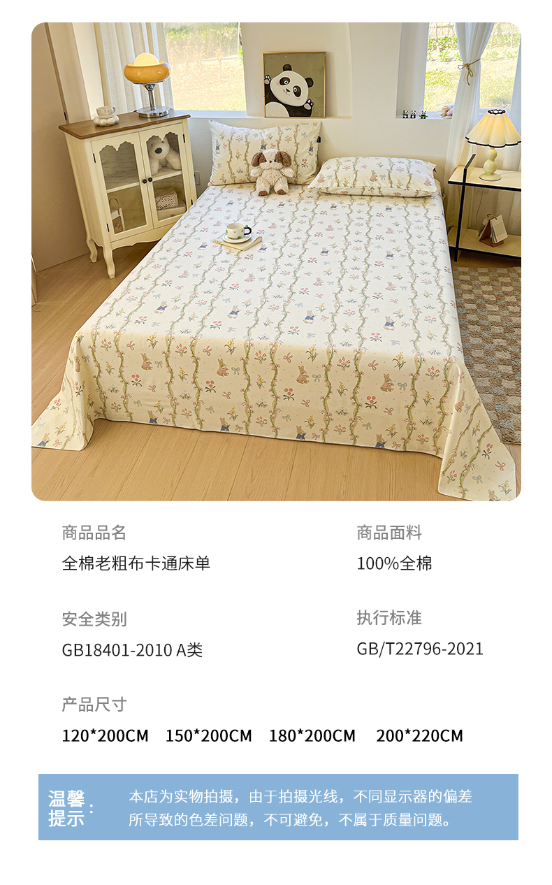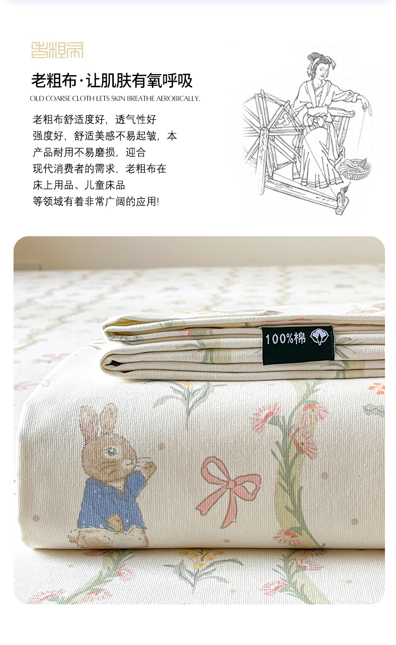 商品名称:鑫钰 2025新款纯棉老粗布单床单-卡通系列 蔓藤免
