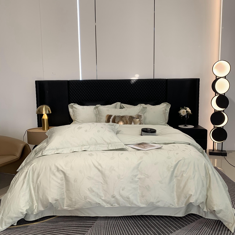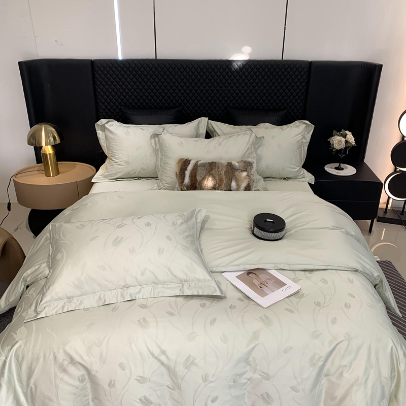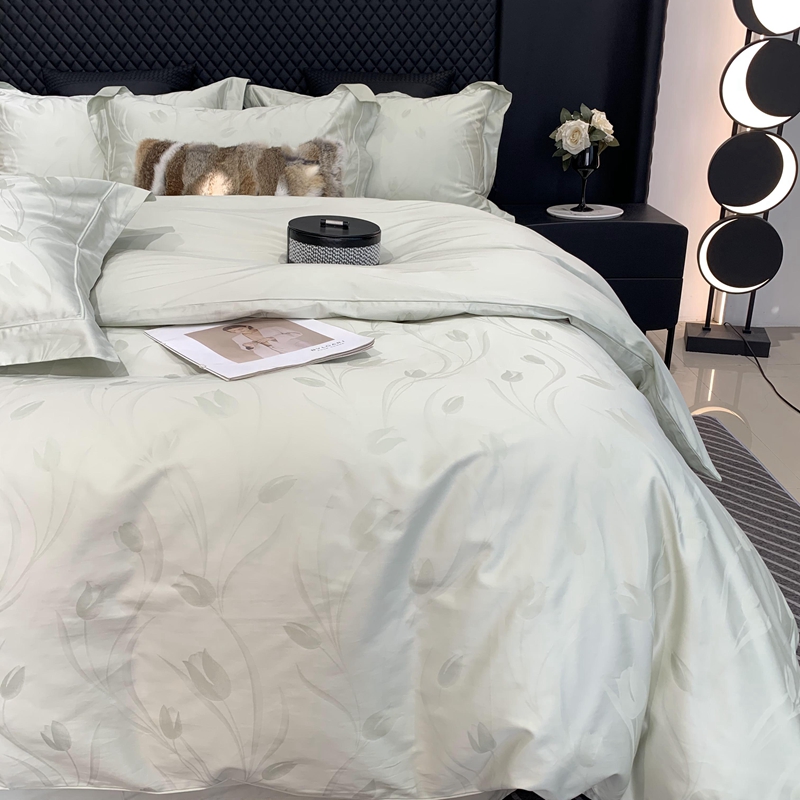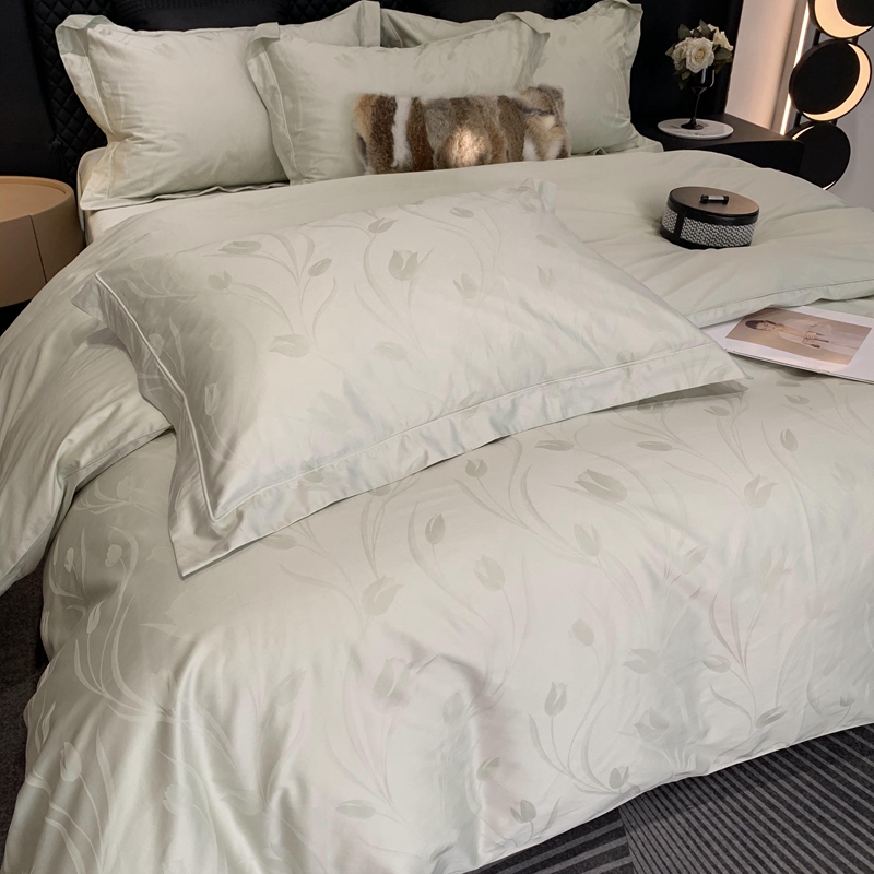 商品名称:莱豫 2025新款100支新疆阿克苏长绒棉提花四件套 郁金香绿