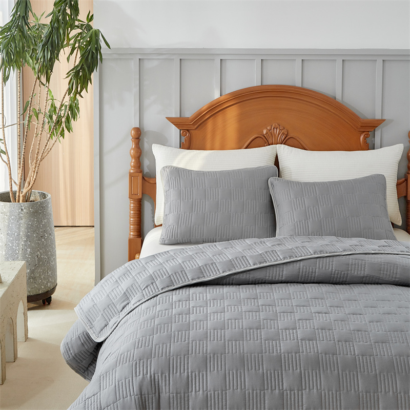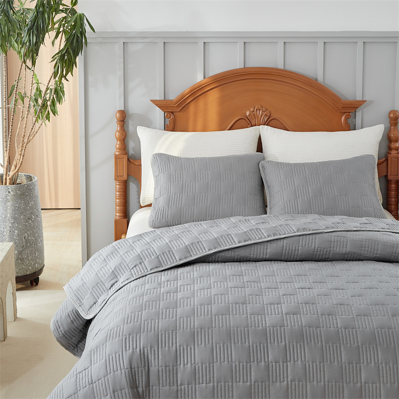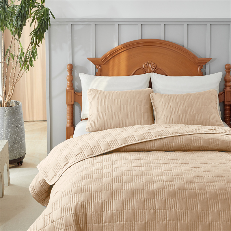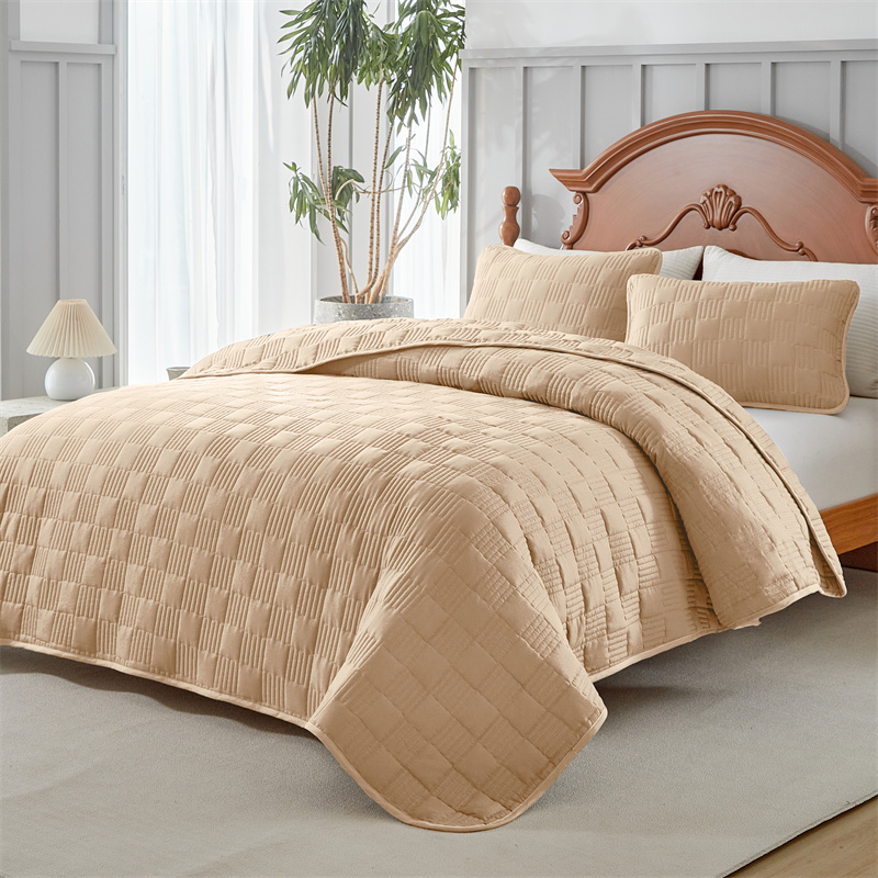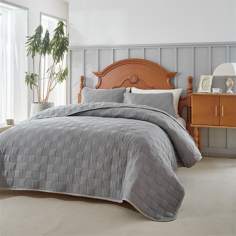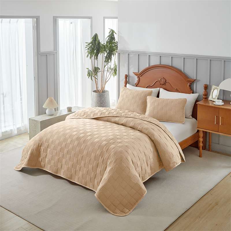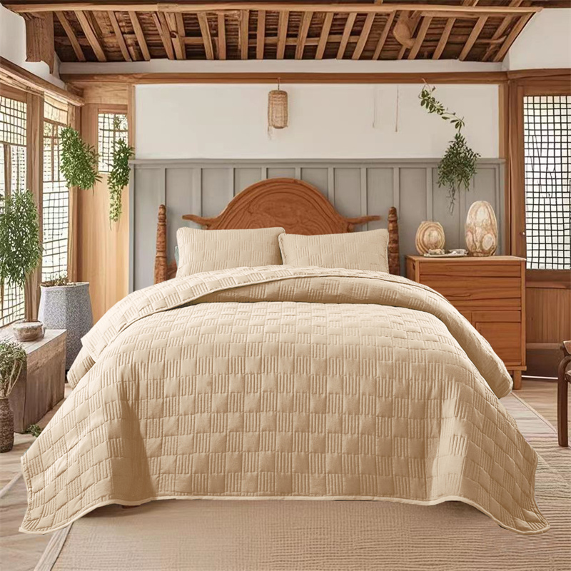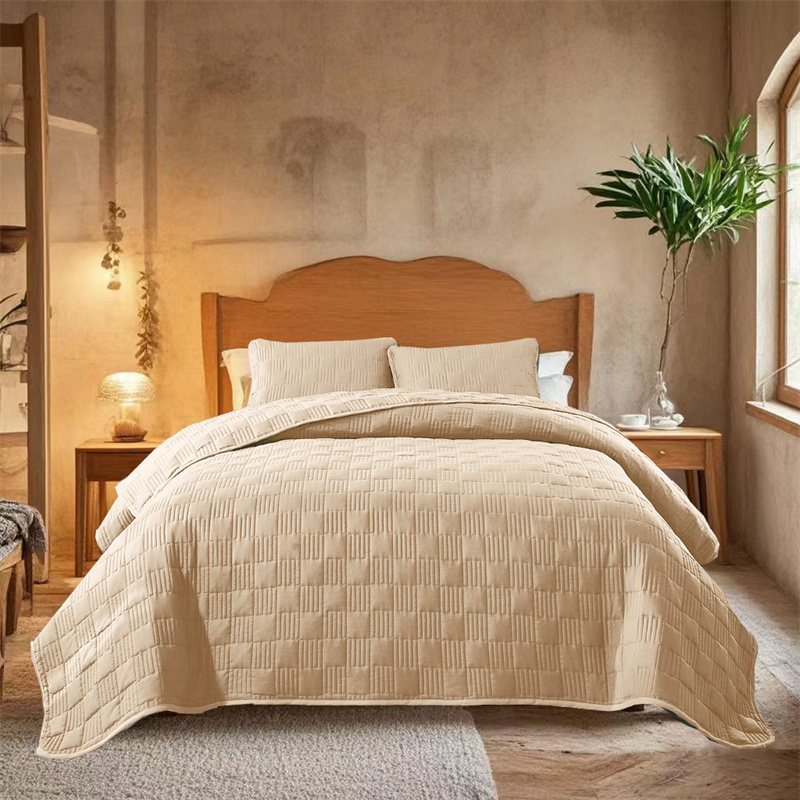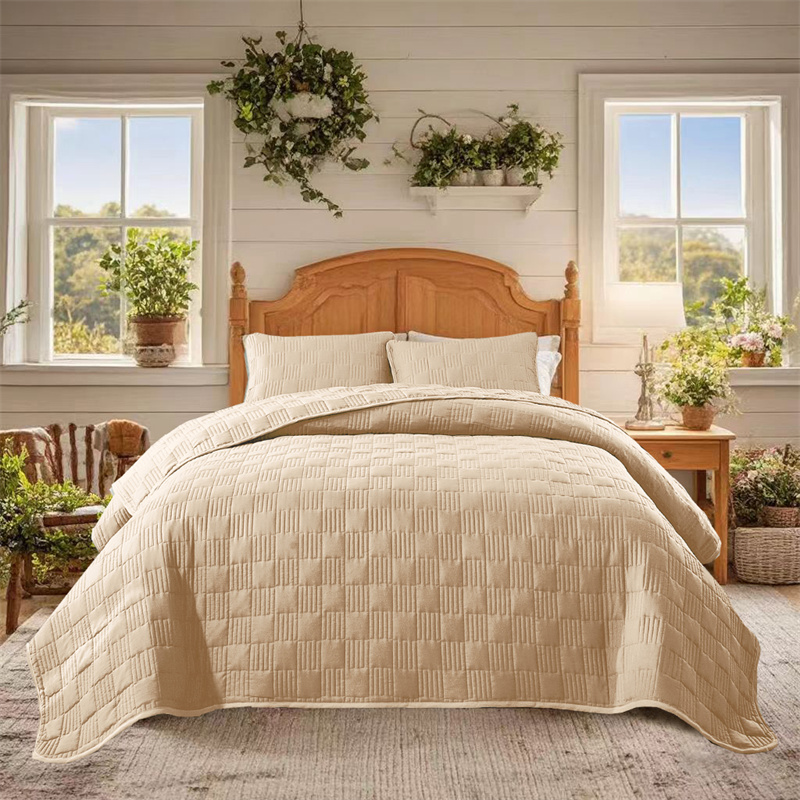(总)温宁家纺 2025新款跨境双面化纤水洗棉小方块夹棉四季床盖(国外也当做夏被)