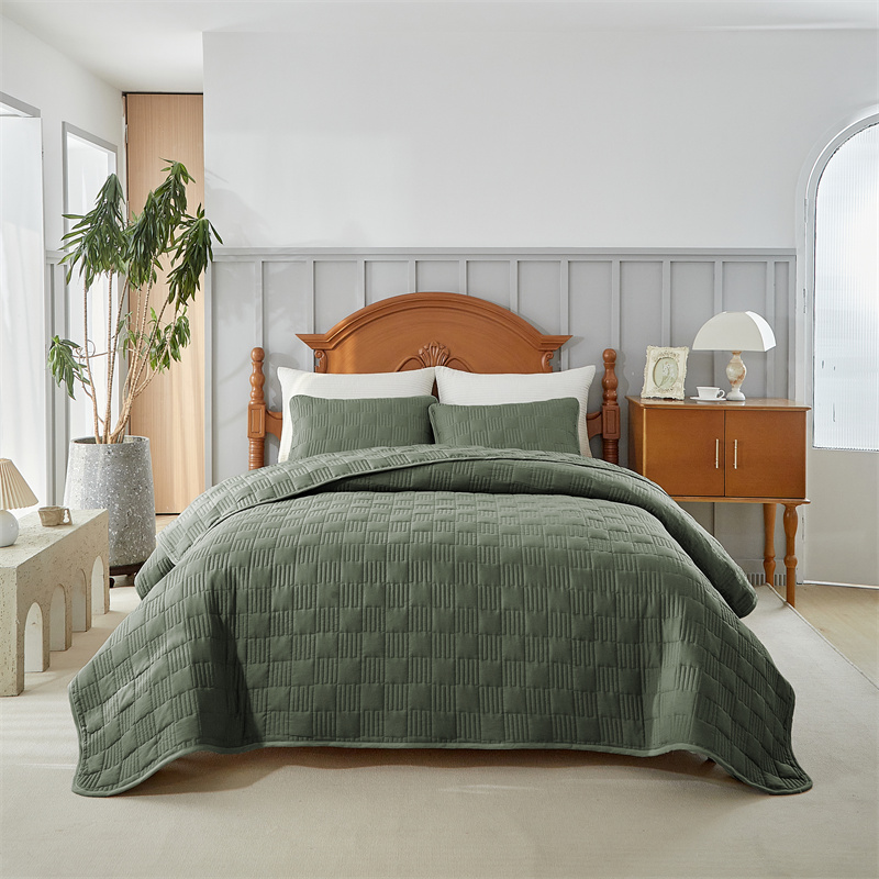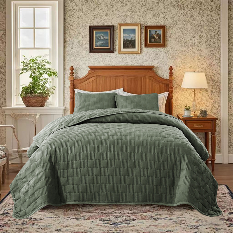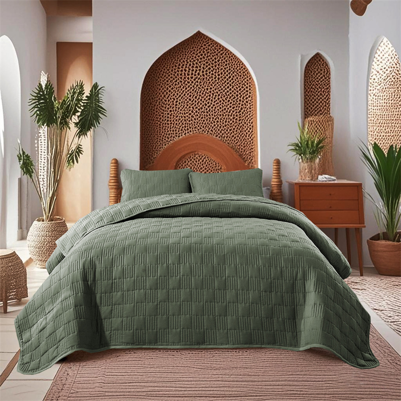 (总)温宁2025新款跨境外贸专供正方格床盖,绿色,米色,银灰