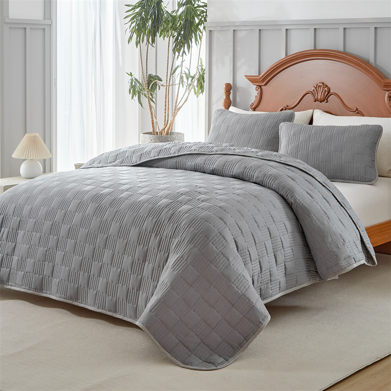 (总)温宁家纺 2025新款长方格床盖三件套 国外薄被,长方格-灰色,长方格-绿色,长方格-米色