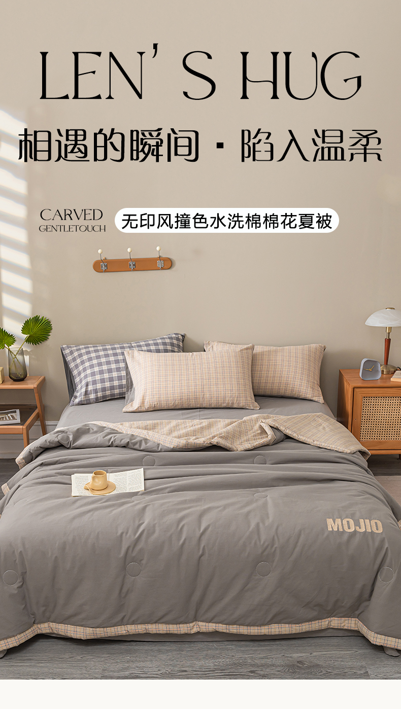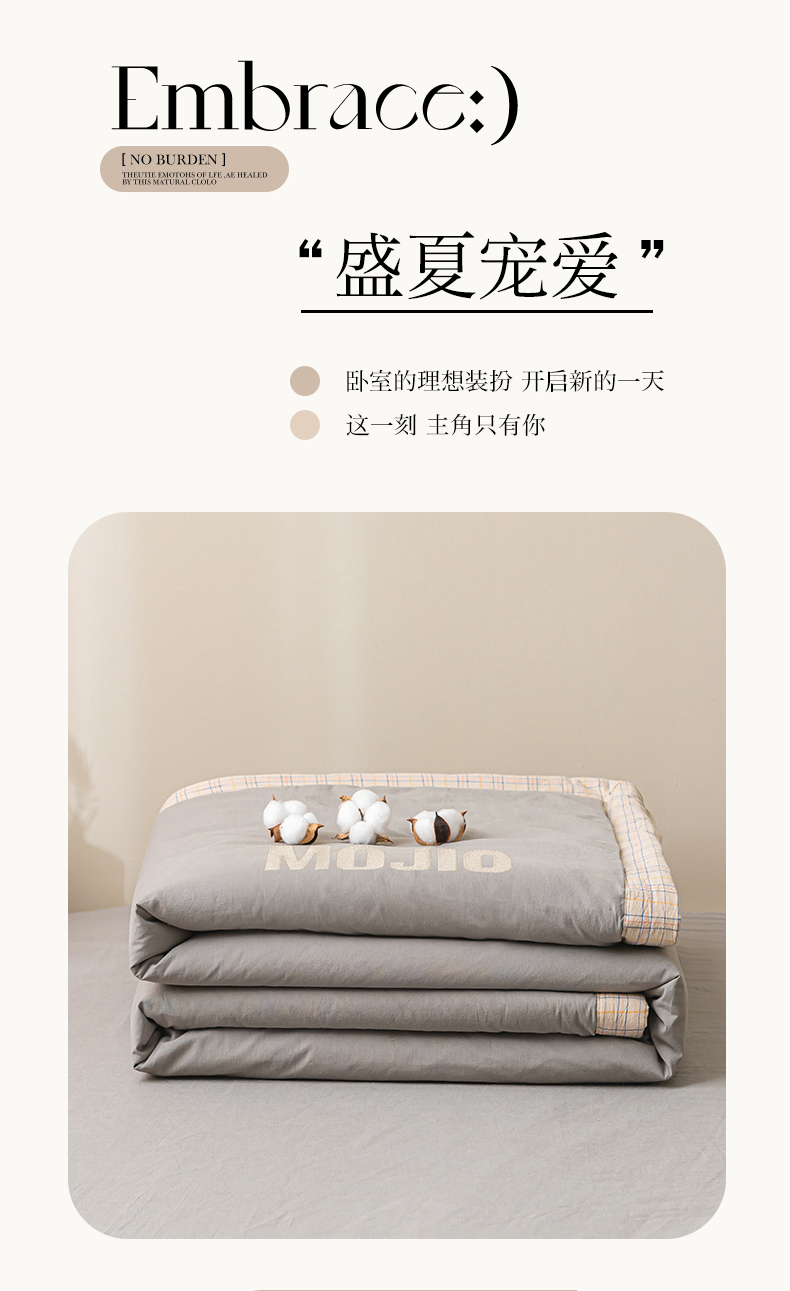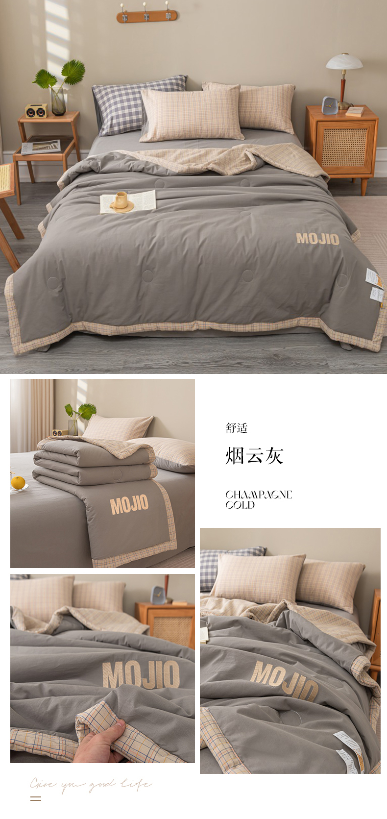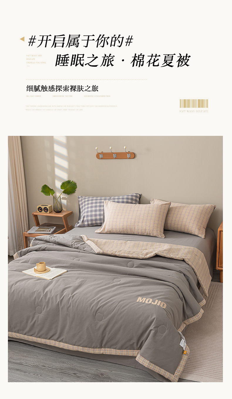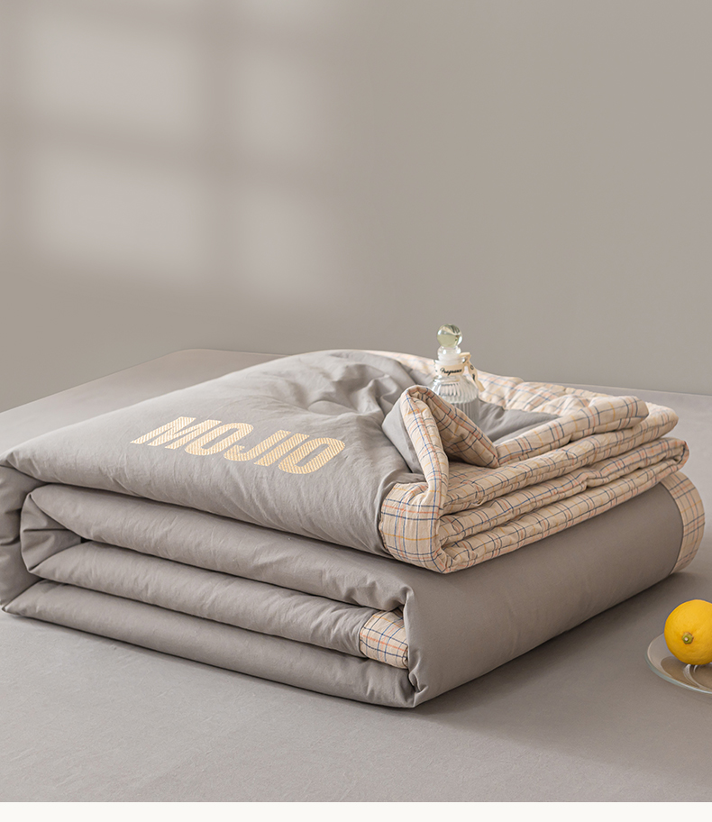 商品名称:水云缦2025新款字母烫画无印风50%棉花被(填充100克每平方) 烟云灰
