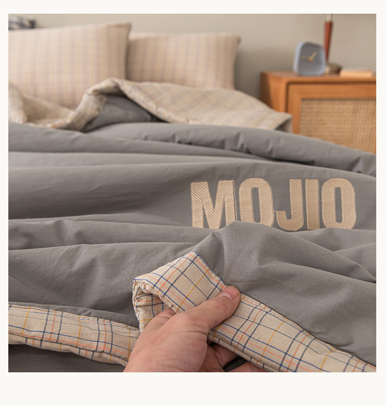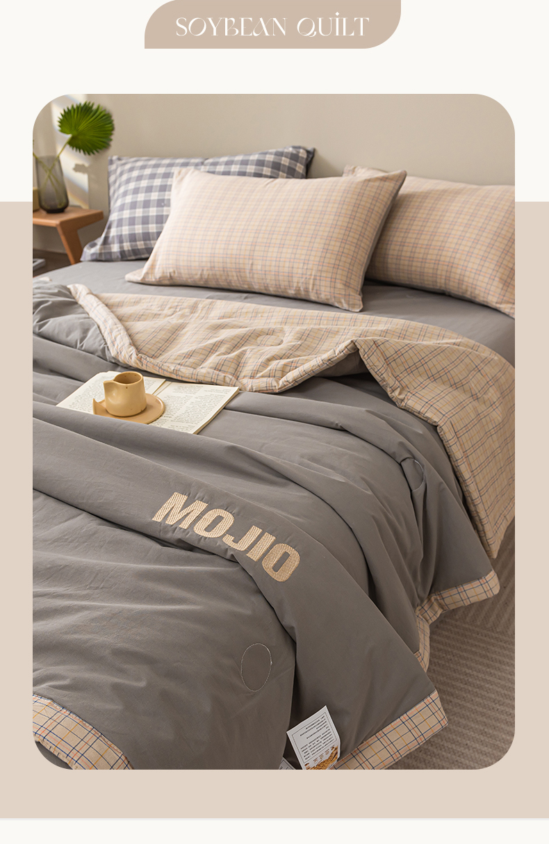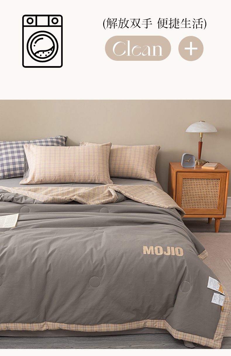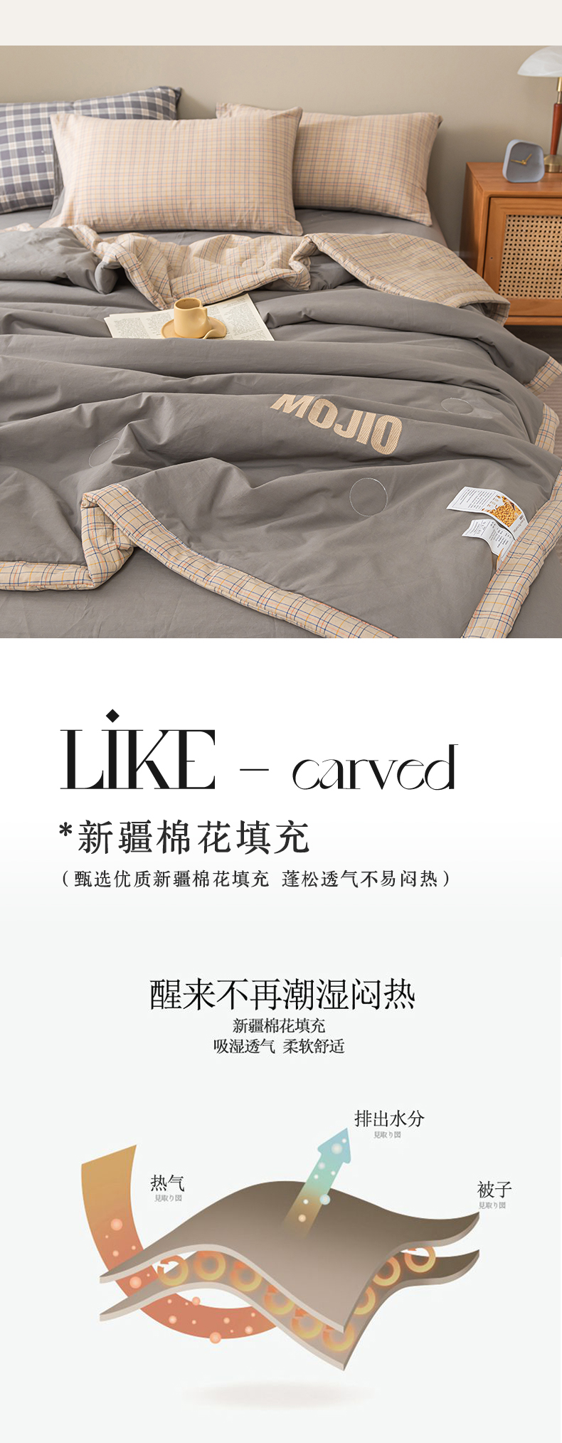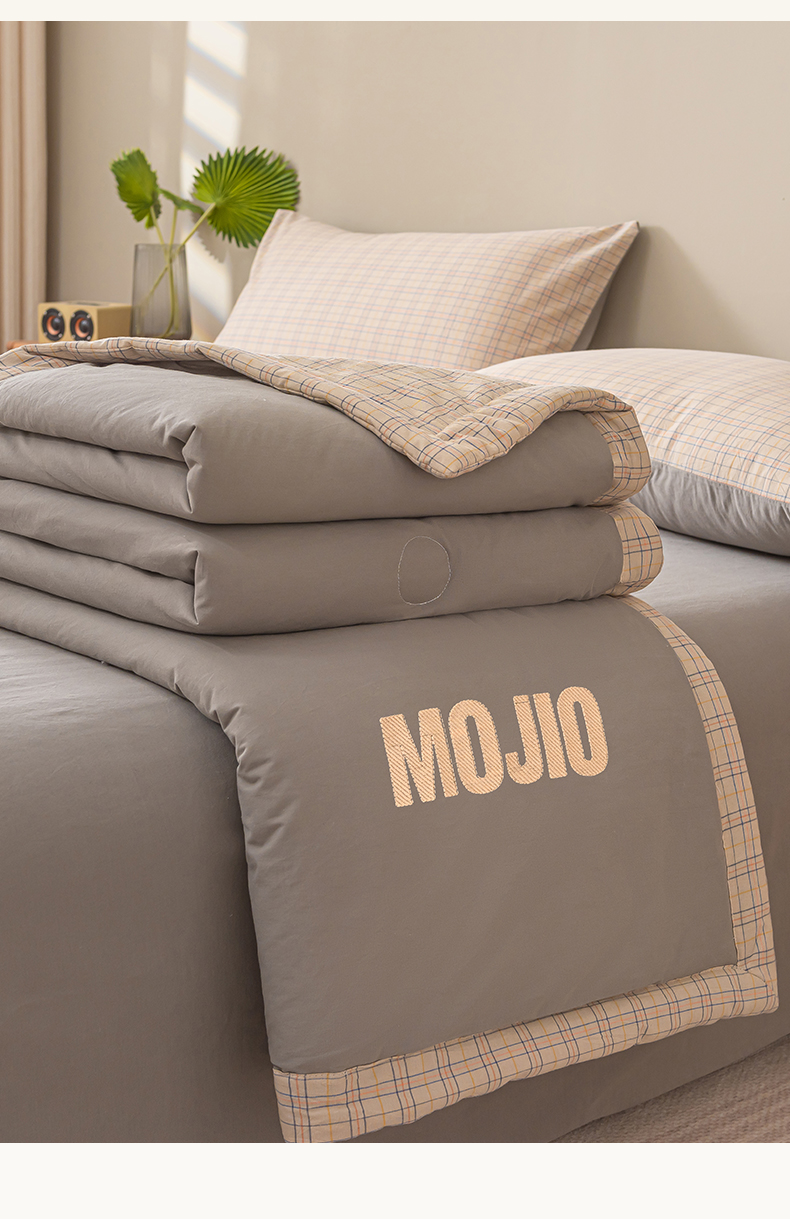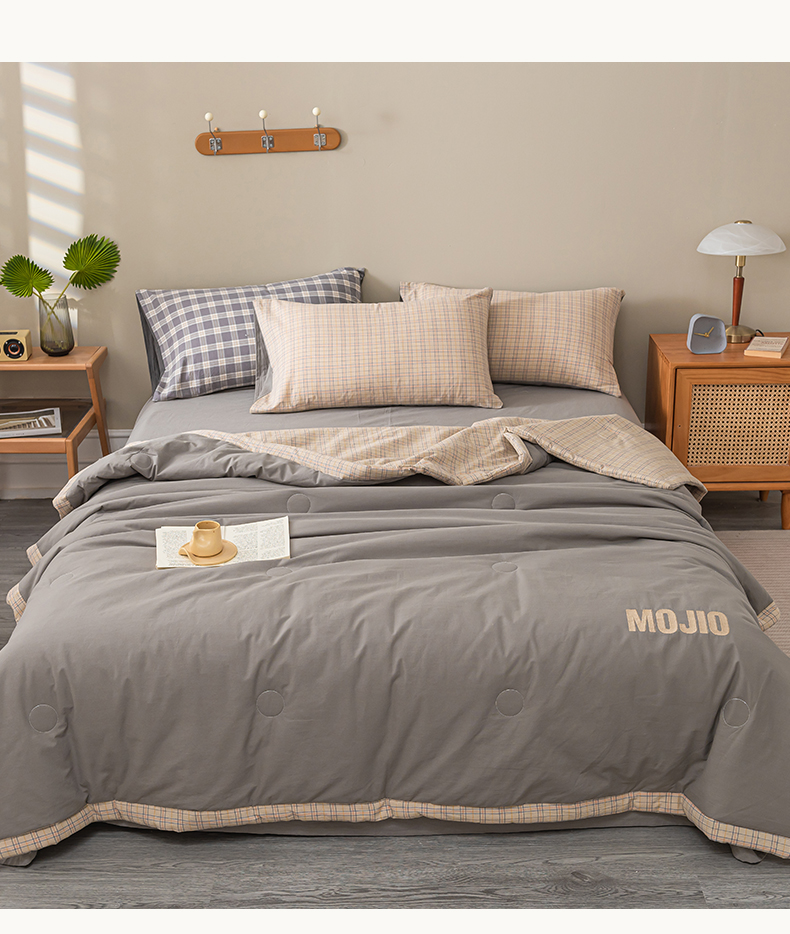 商品名称:水云缦2025新款字母烫画无印风50%棉花被(填充100克每平方) 烟云灰