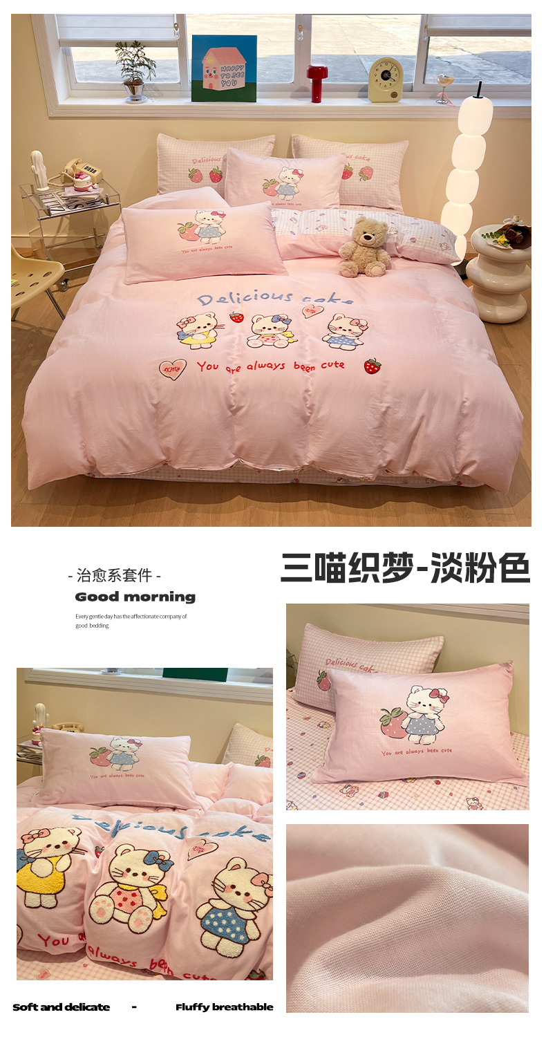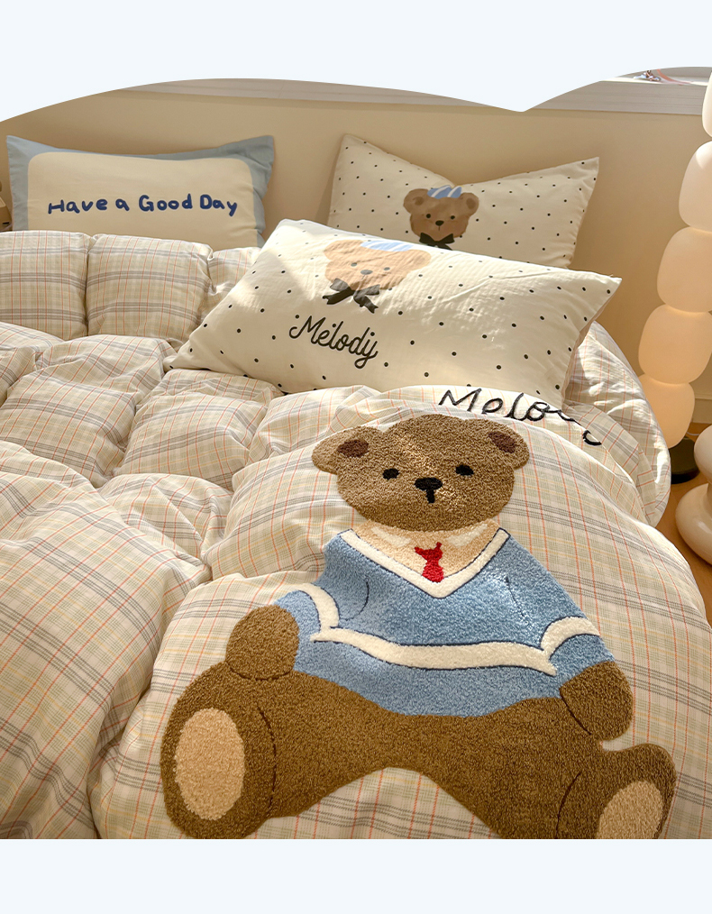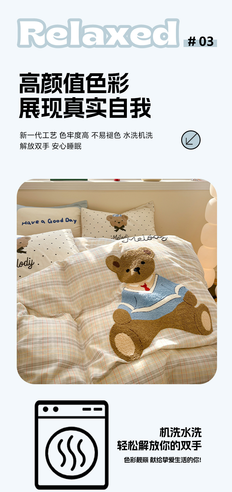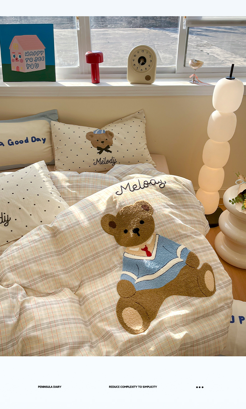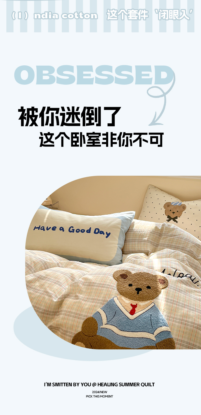 当前位置: 91家纺网 > 商品网购 > 床品套件 > 四件套 > 其它四件套 > 蓝邻家纺 2025年新款全棉双层纱毛巾绣四件套系列 暖格熊居