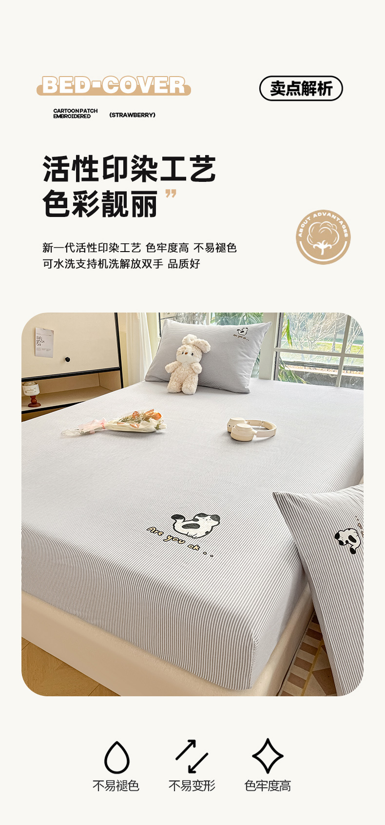 • 91家纺网 家纺一手货源 找家纺 博雅 2025新款全棉老粗布烫画床笠系列 淡海蓝-小花猫