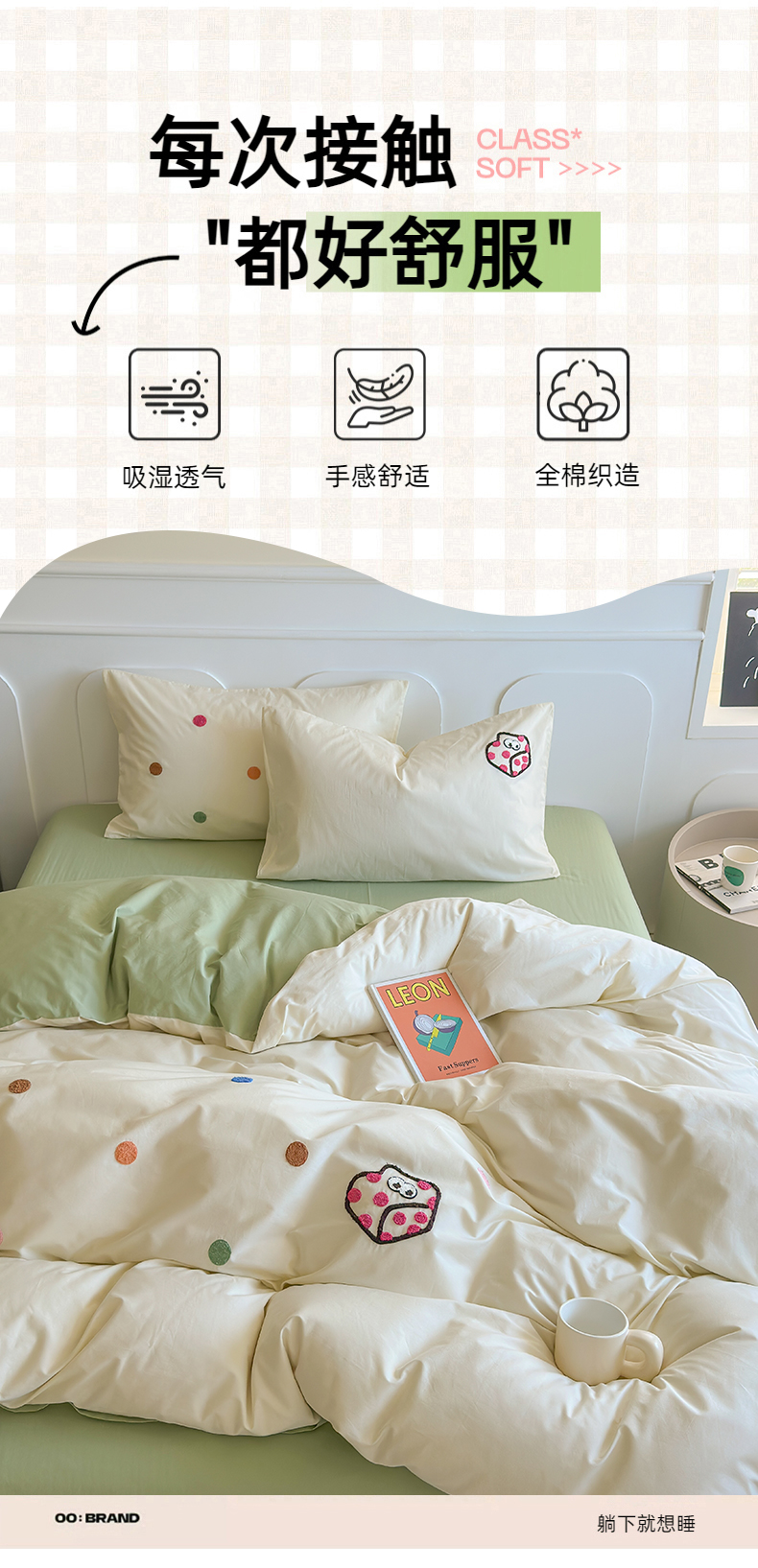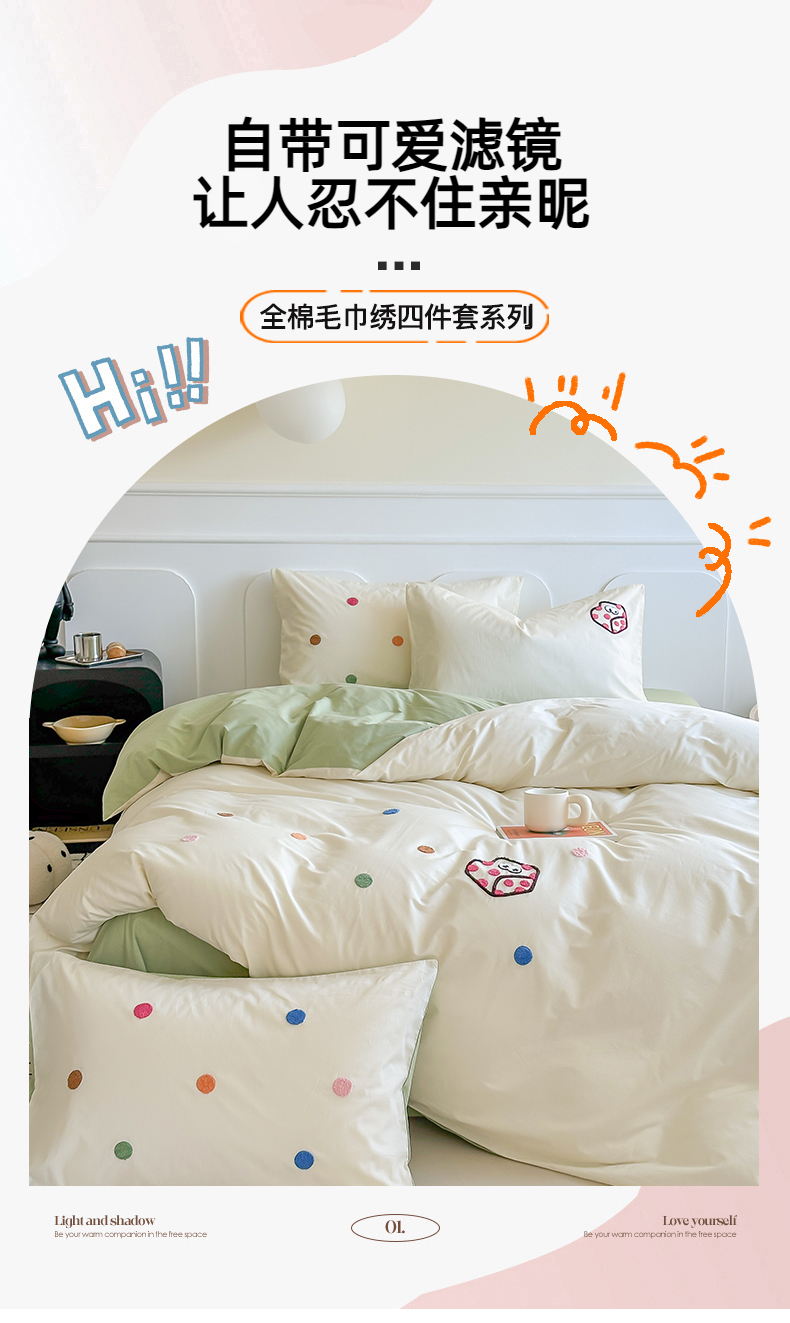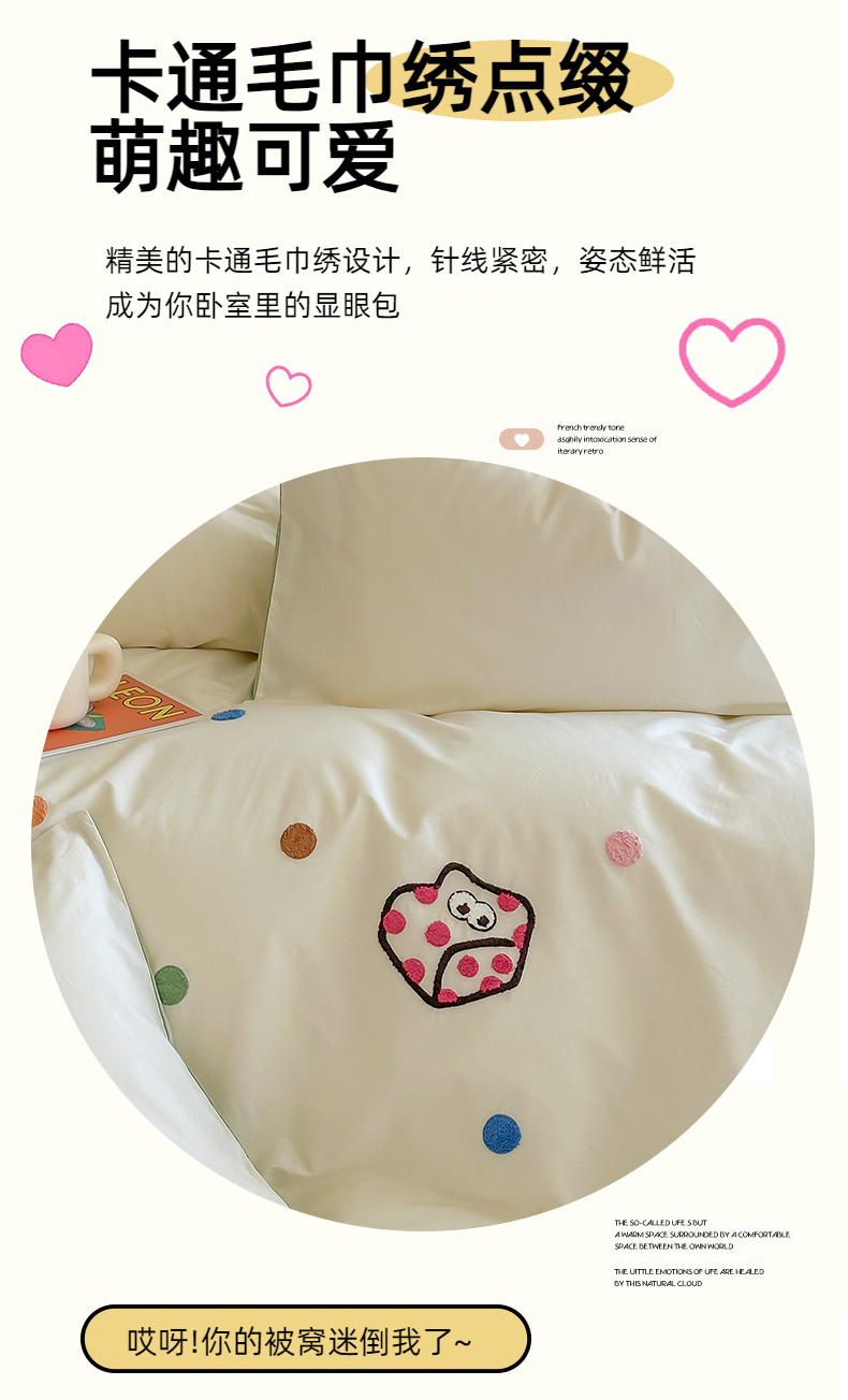 商品名称:TT.one 塔塔家居 2025新款全棉卡通毛巾绣四件套 波点绿