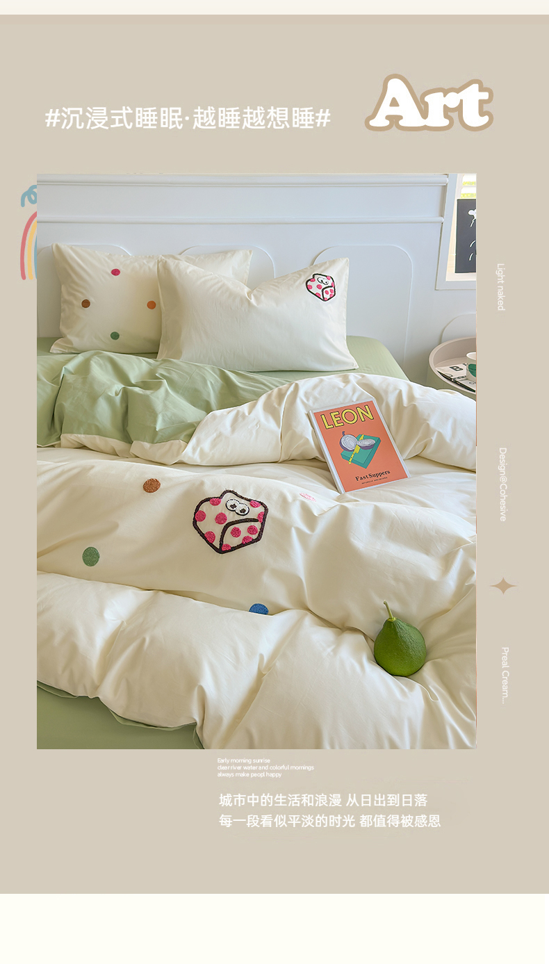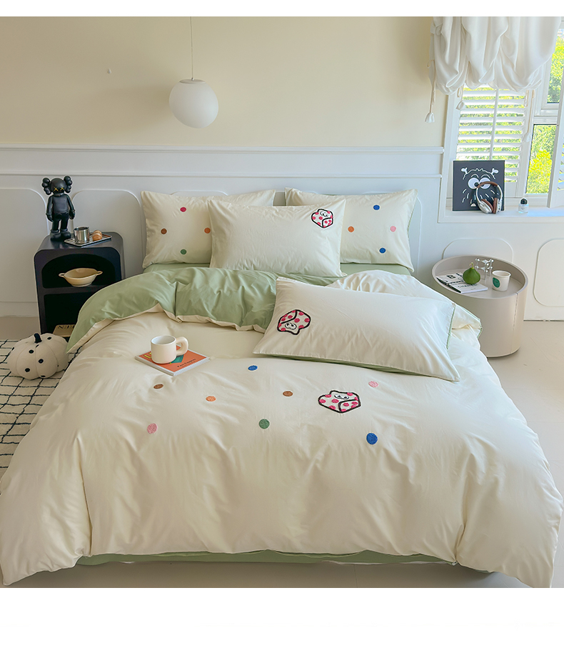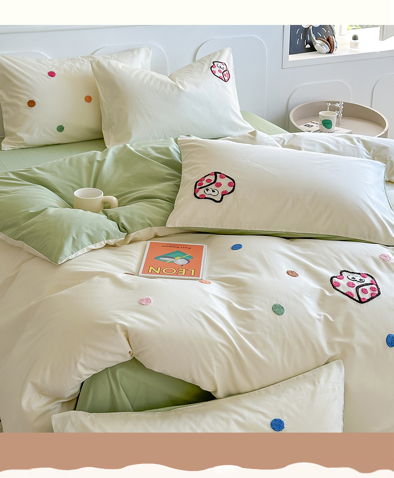TT.one 塔塔家居 2025新款全棉卡通毛巾绣四件套 波点绿