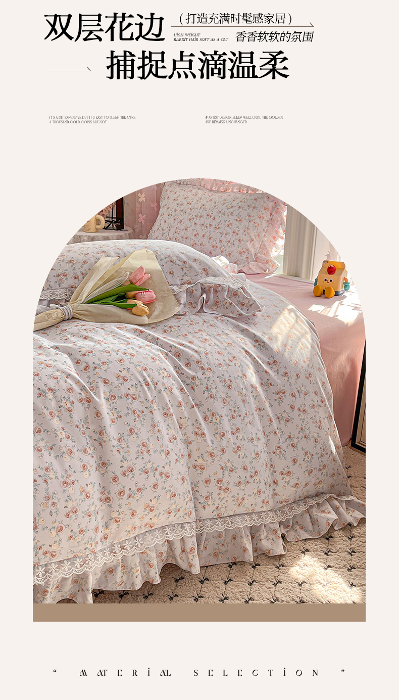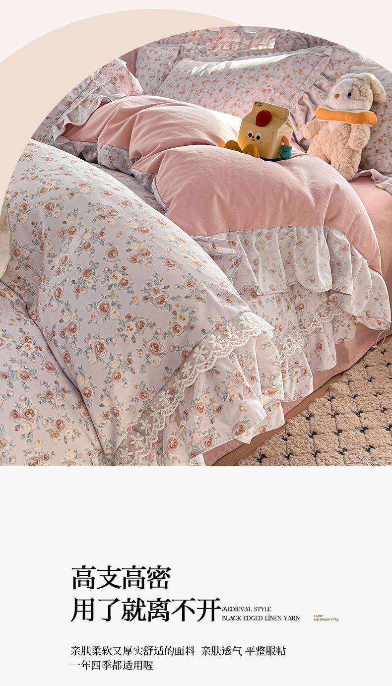 商品名称:喜梦缘家纺 2025A类公主风云柔棉工艺款四件套 梦幻玫瑰园