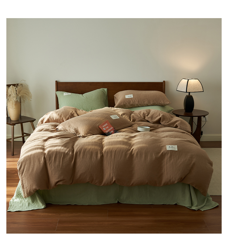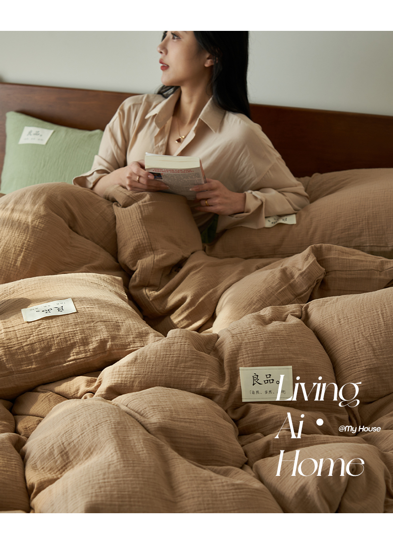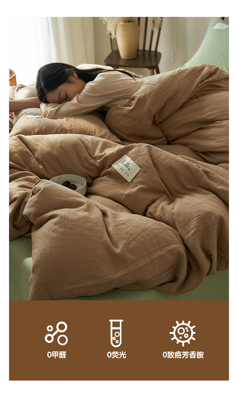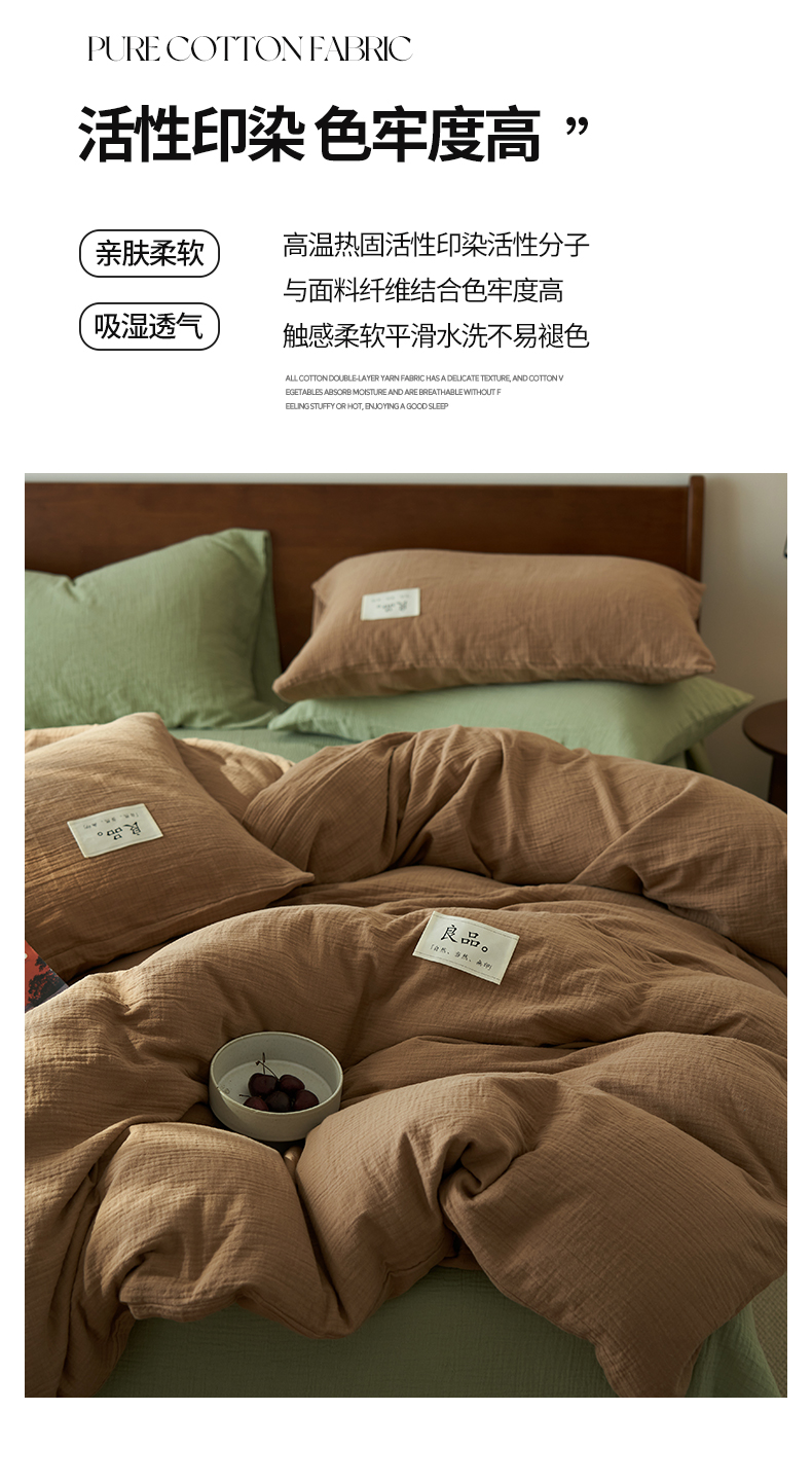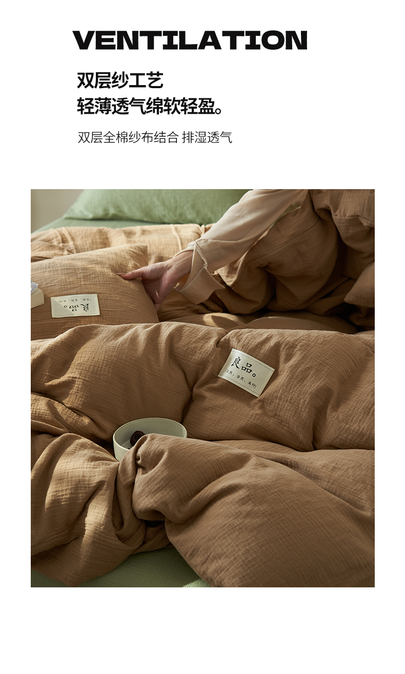 商品名称:2025新款纯棉双层纱四件套 双层纱四件套-褐色