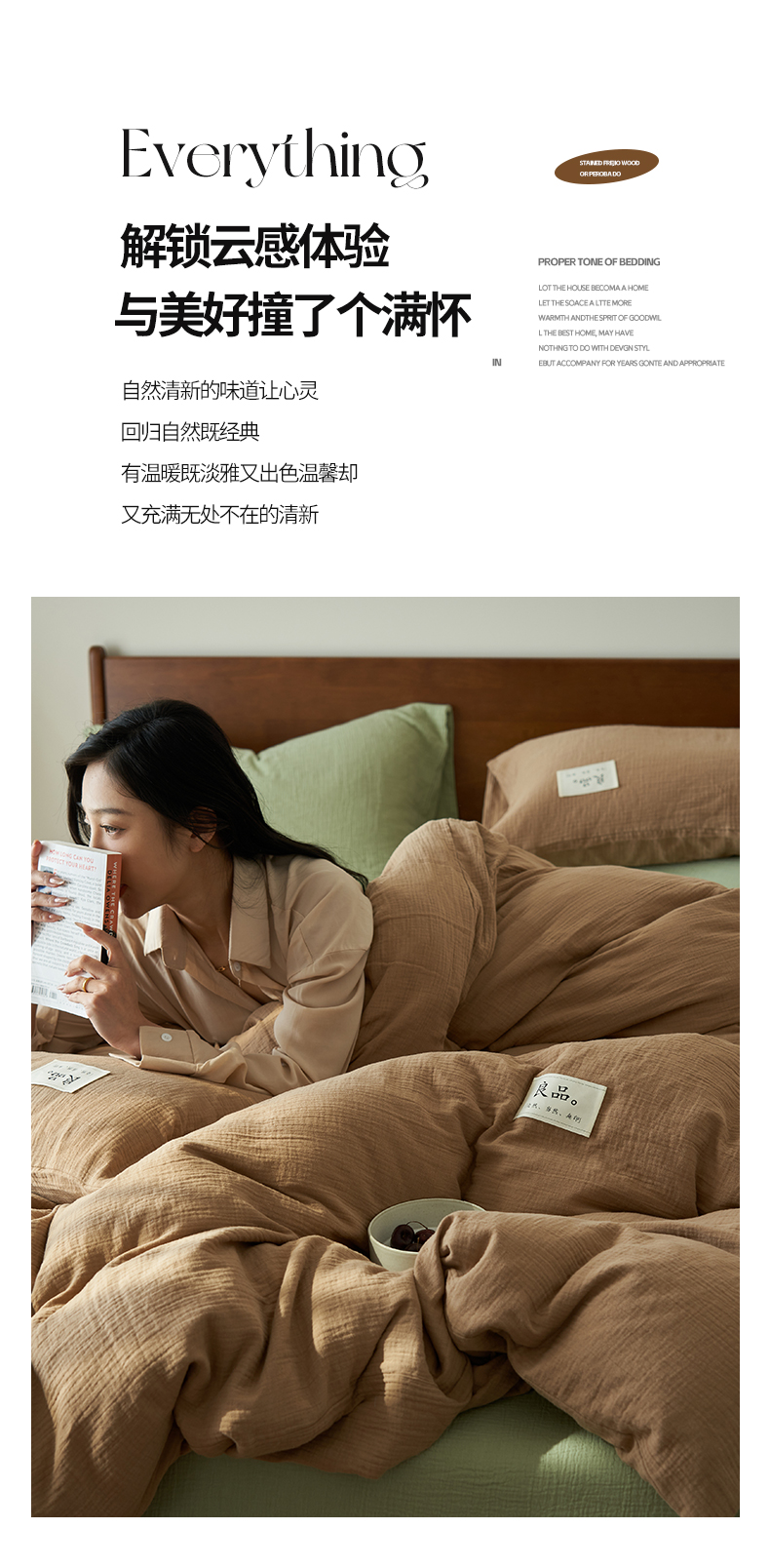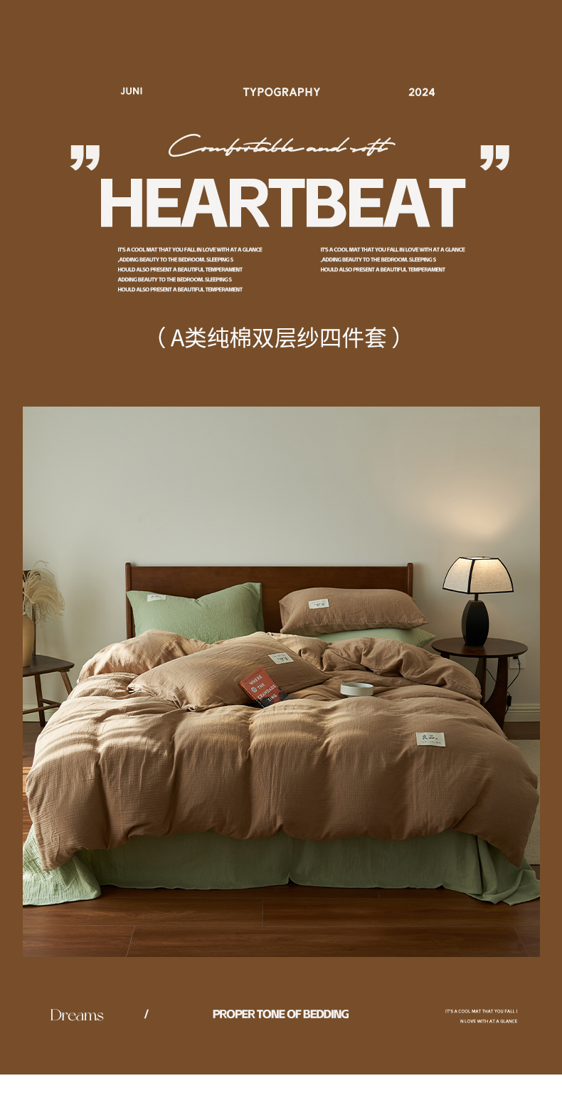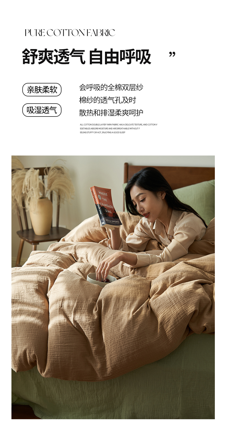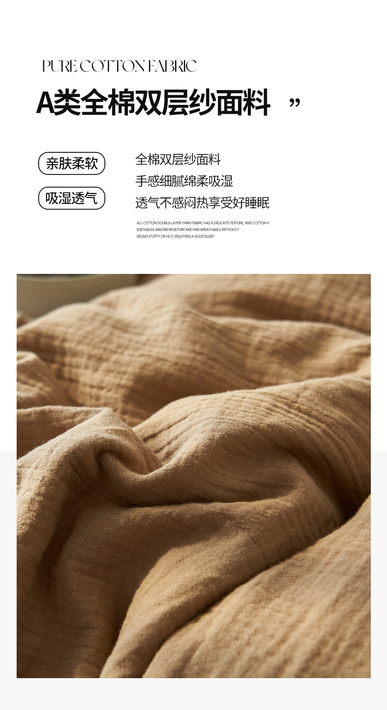 商品名称:2025新款纯棉双层纱四件套 双层纱四件套-褐色