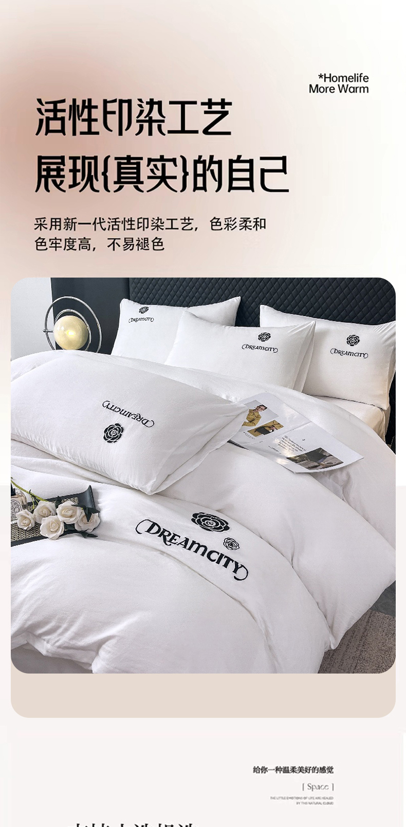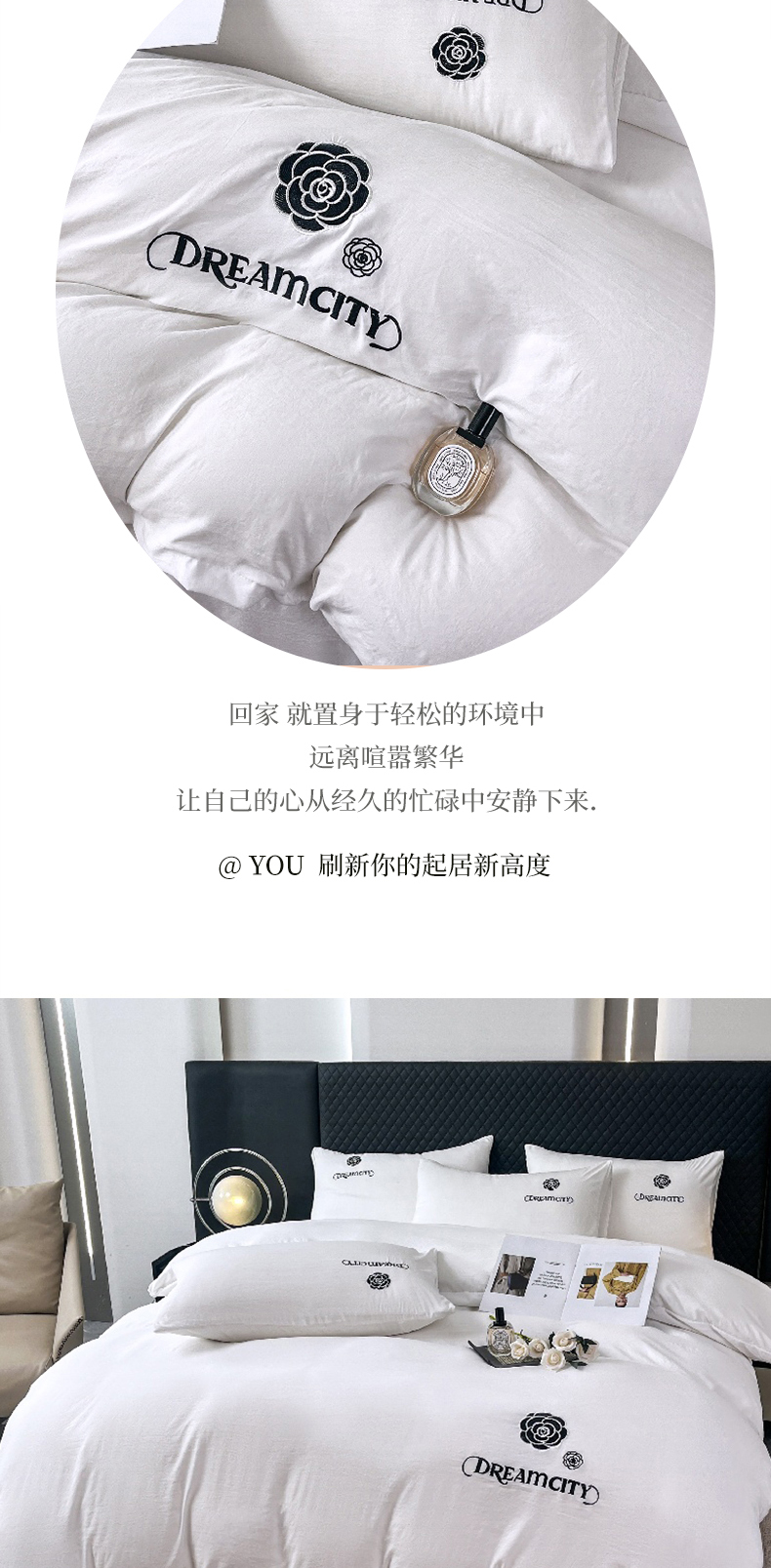 商品名称:(总)麒东家纺 2025新款刺绣水洗棉四件套山茶花系列