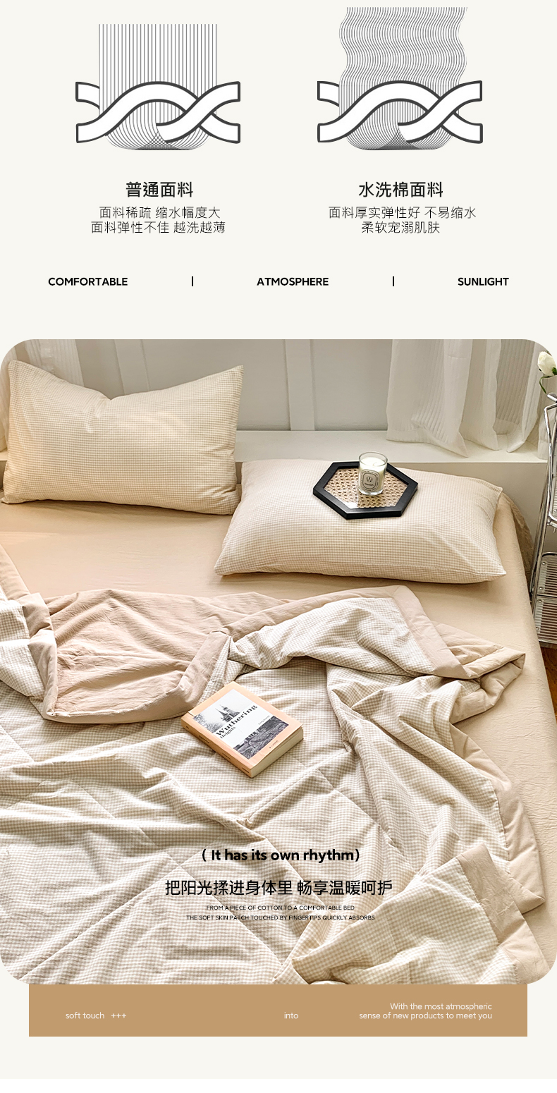 • 91家纺网 家纺一手货源 找家纺 水洗的故事 2025新款全棉色织水洗棉夏被&四件套 密条粉