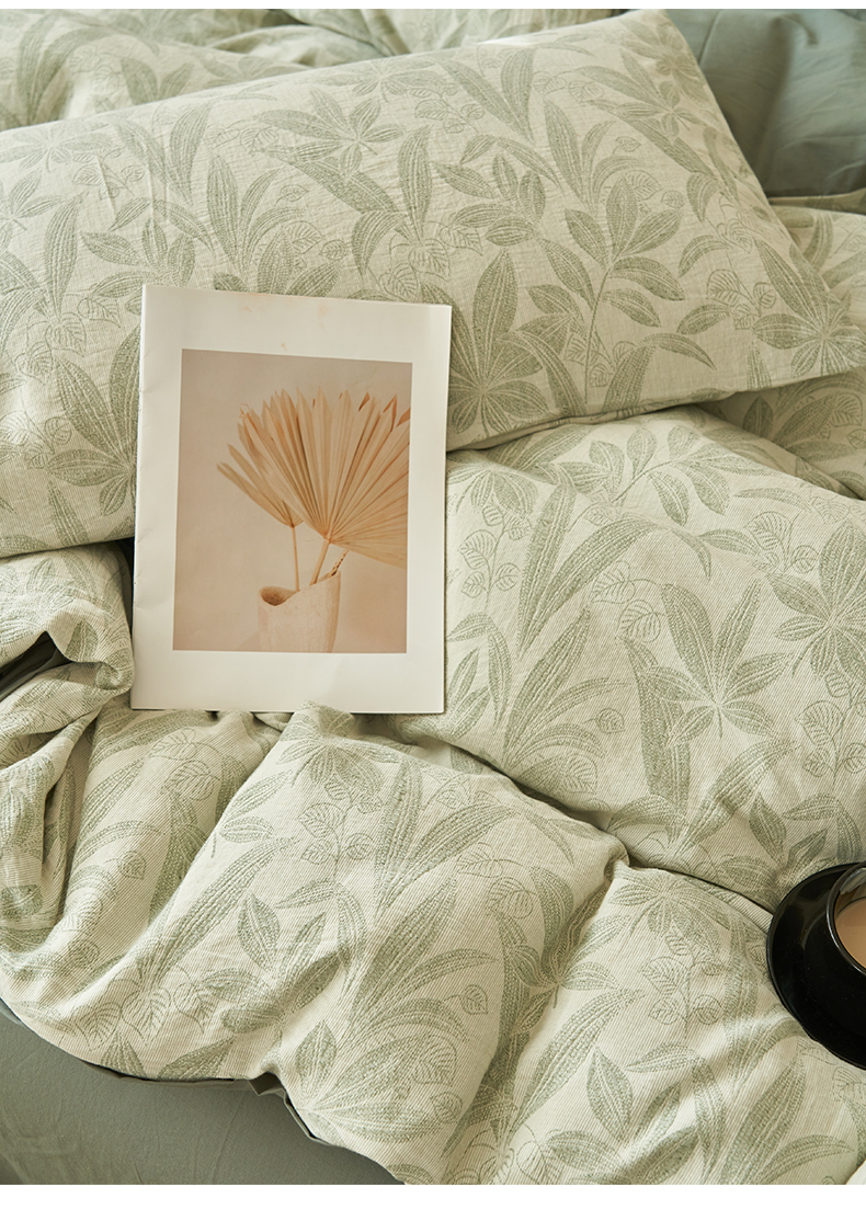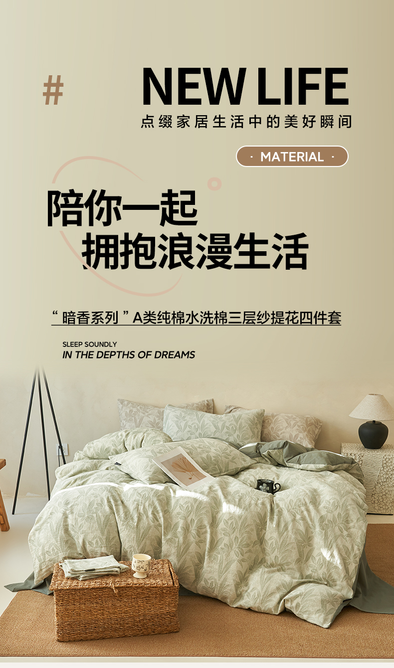 商品名称:2025新款纯棉水洗棉三层纱暗香提花四件套 暗香四件套-墨绿