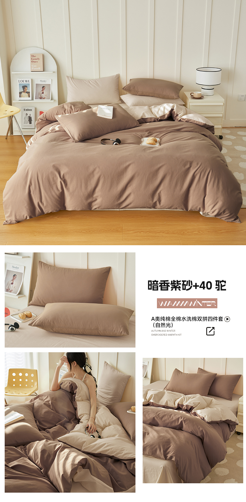 (总)2025新款全棉13372水洗棉双拼四件套(影棚暗光),天青韵白+拾柴,40暖木棕+拾柴,40驼+40暖木棕,安然蓝+毛毯灰,暗木幽香+宝藏灰,暗香紫砂+40驼,布鲁兰+拾柴,春风十里+浮生一梦,豆沙+毛毯灰,扶苏绿+毛毯灰,果绿+墨子绿,礁石灰+毛毯灰,漫雾+古巴砂,毛毯灰+宝藏灰,蘑菇黄+天青韵白,碳烤栗子+拾柴,天蓝+米黄,天青韵白+一念秋风,一叶知秋+袅袅灰,樱木粉+一念秋风