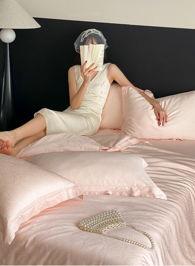 云栖家居 2025天丝棉提花四件套 春纪-皮粉
