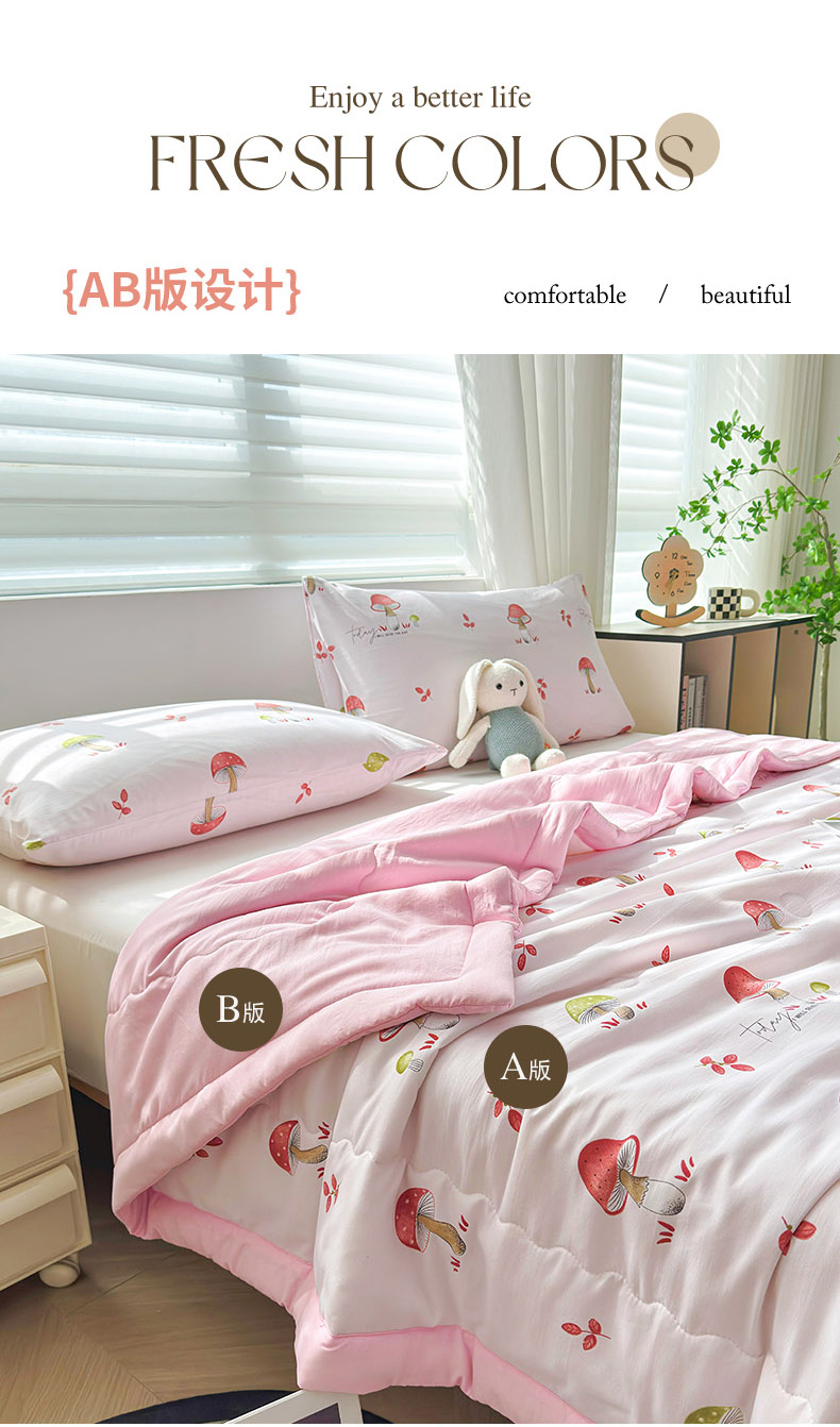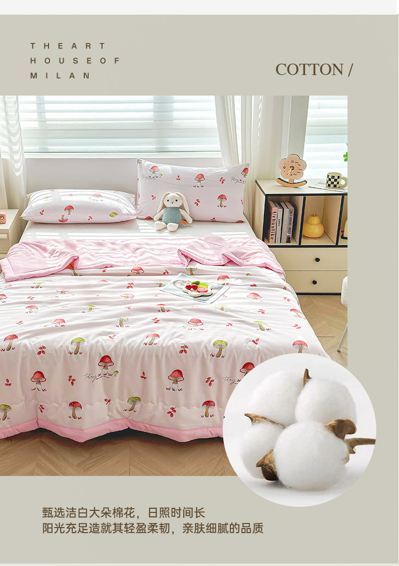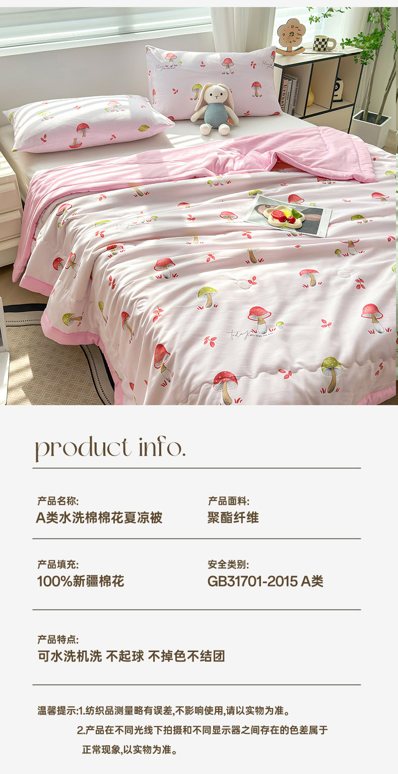 商品名称:鑫佰利 2025新款A类水洗棉印花纯棉花夏被子被芯 蘑菇乐园