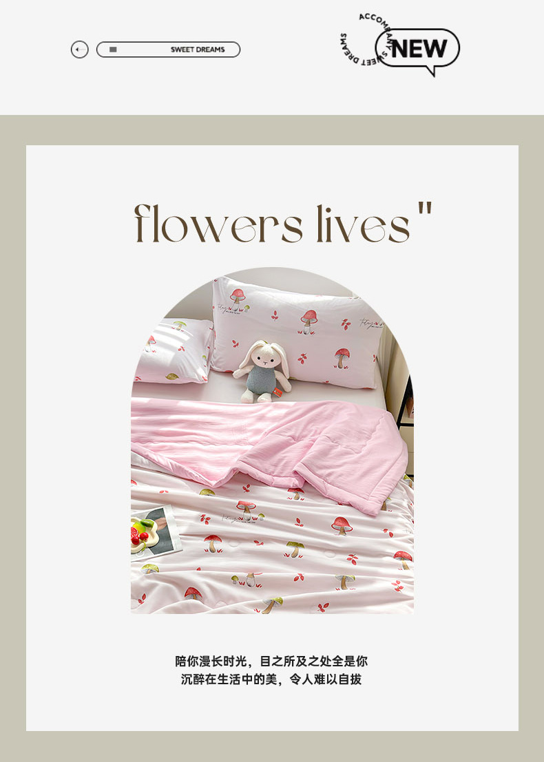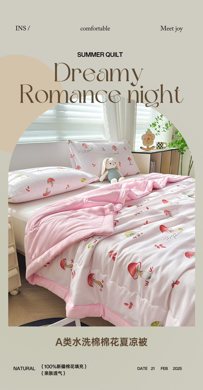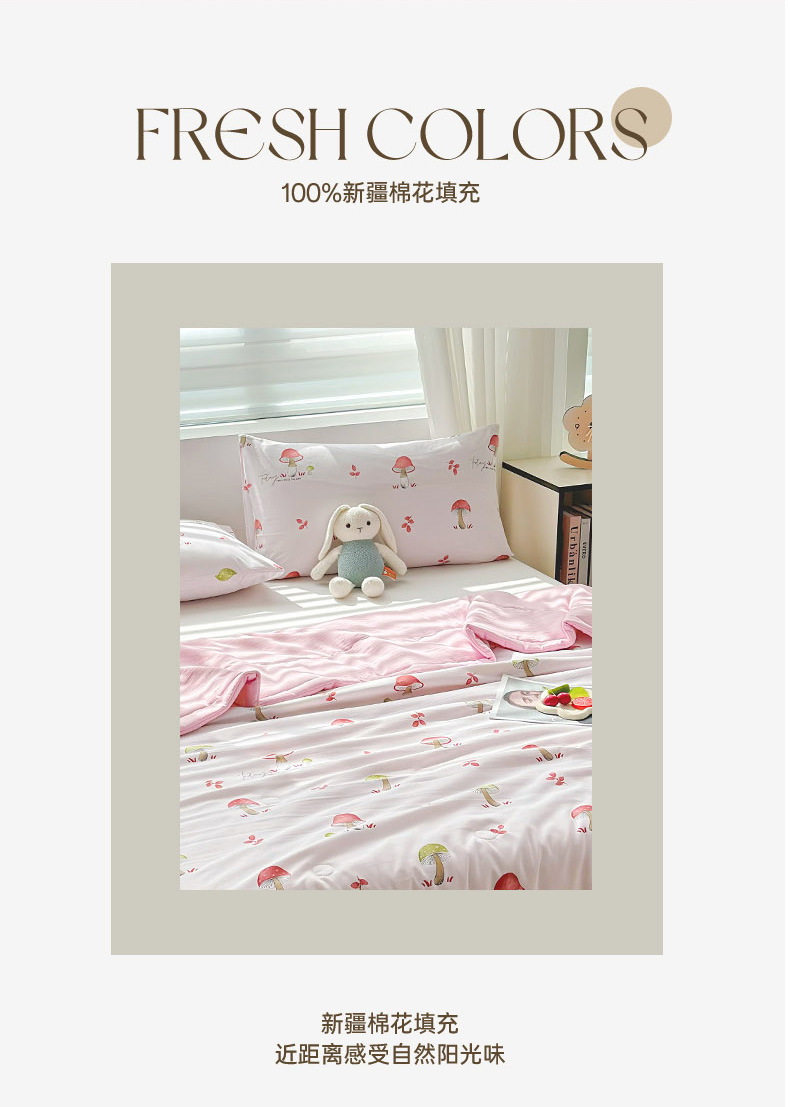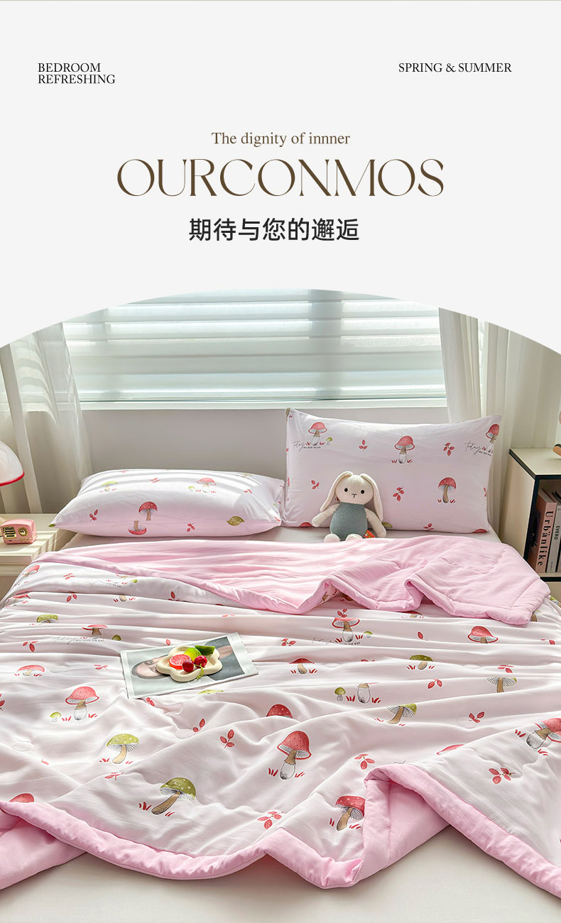 商品名称:鑫佰利 2025新款A类水洗棉印花纯棉花夏被子被芯 蘑菇乐园