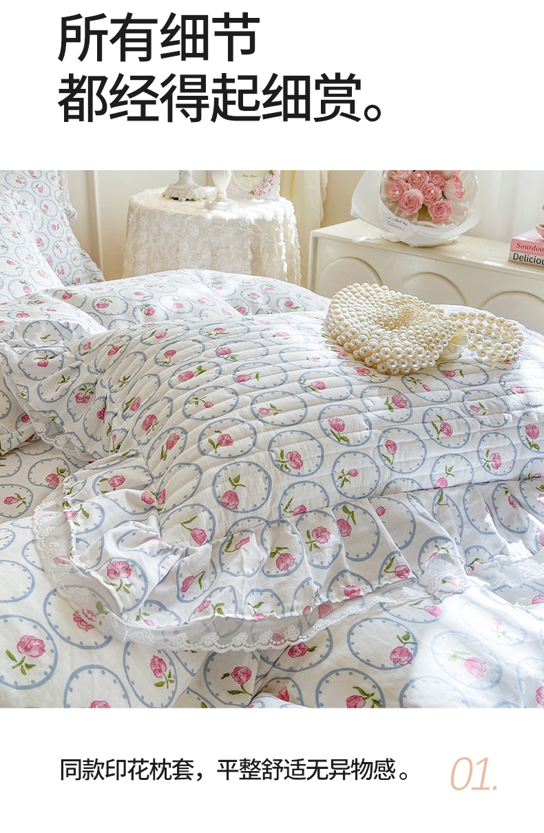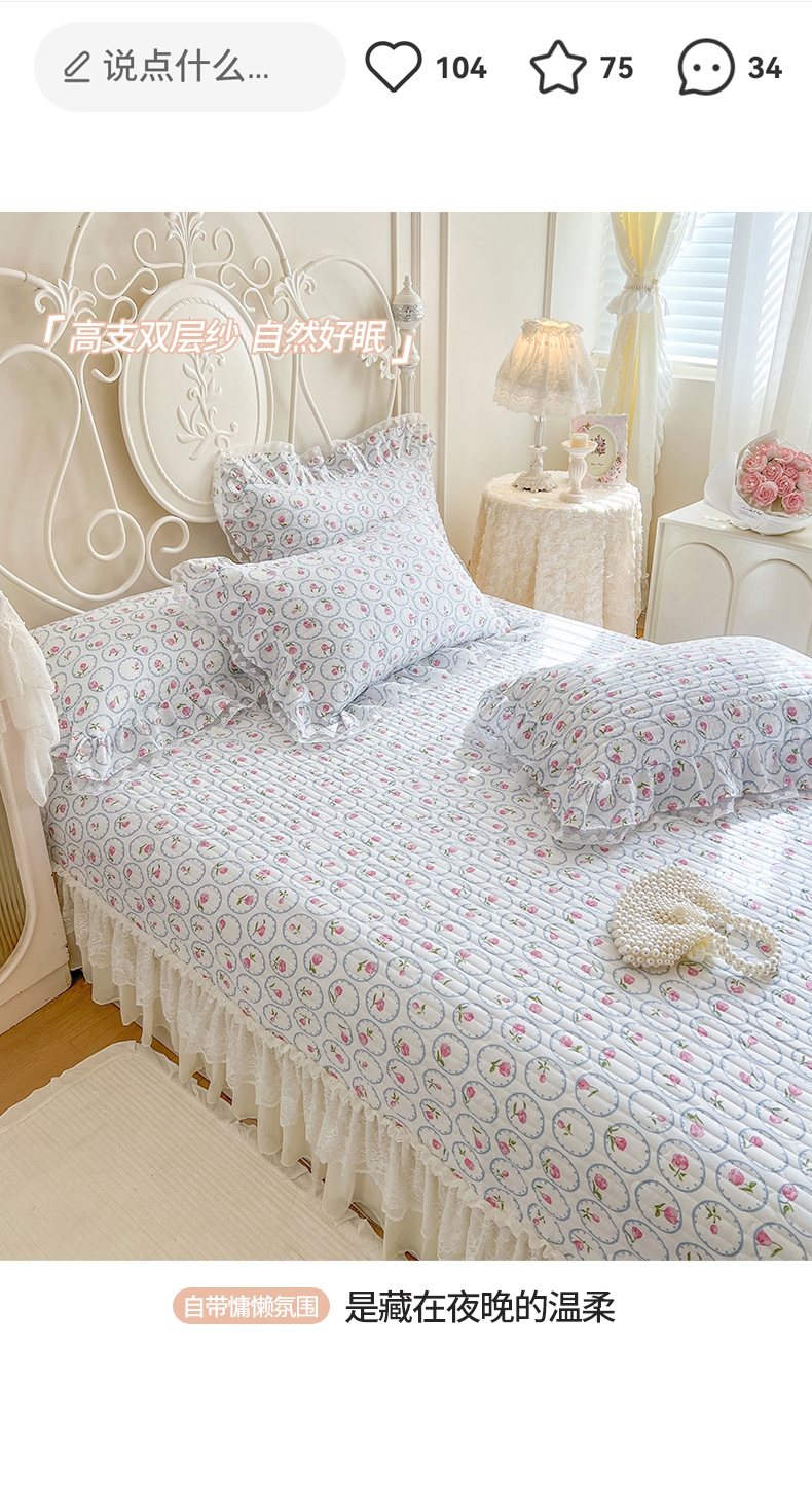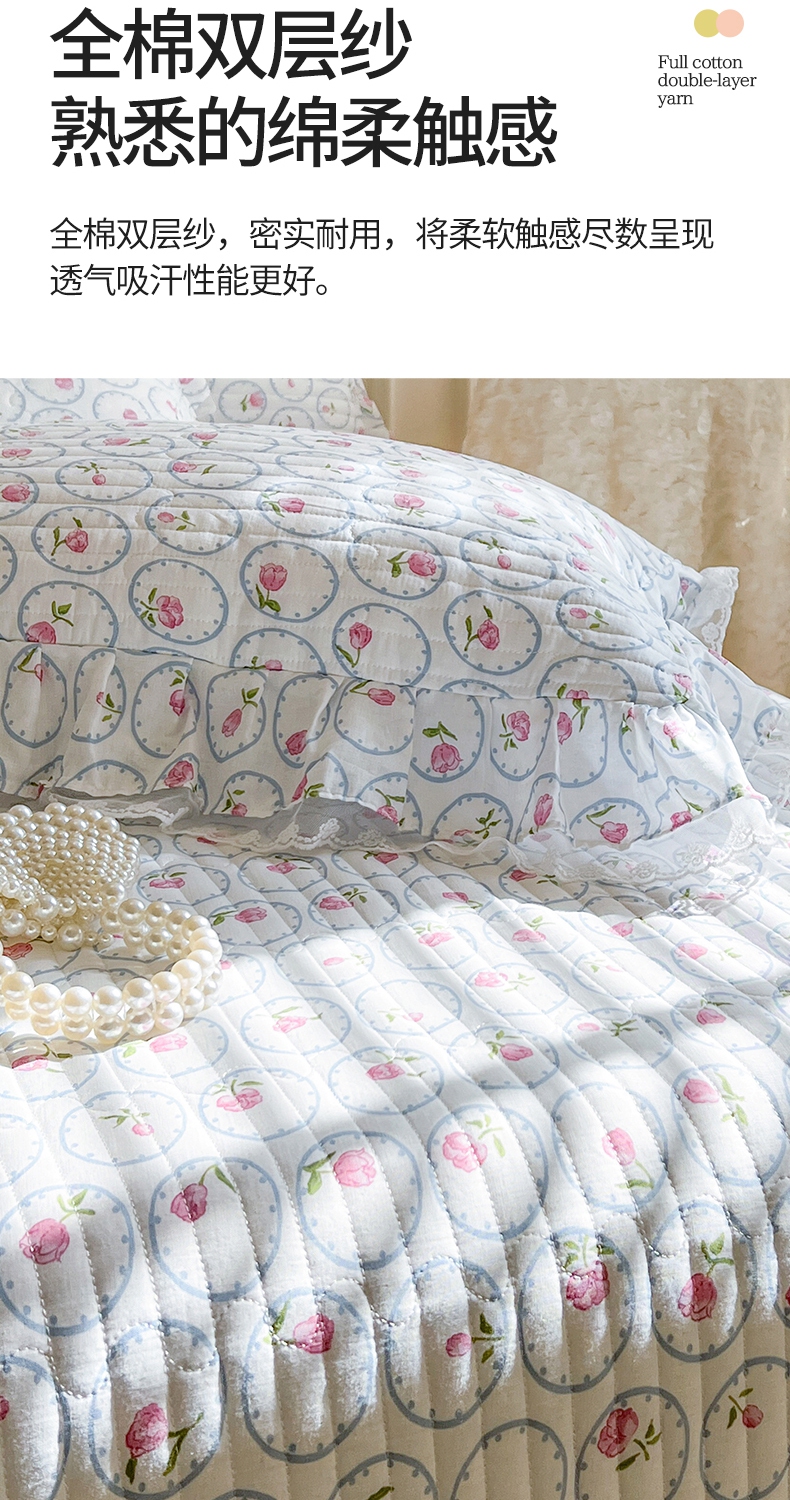 商品名称:麒豆豆 2025新款全棉印花双层纱床盖 简爱