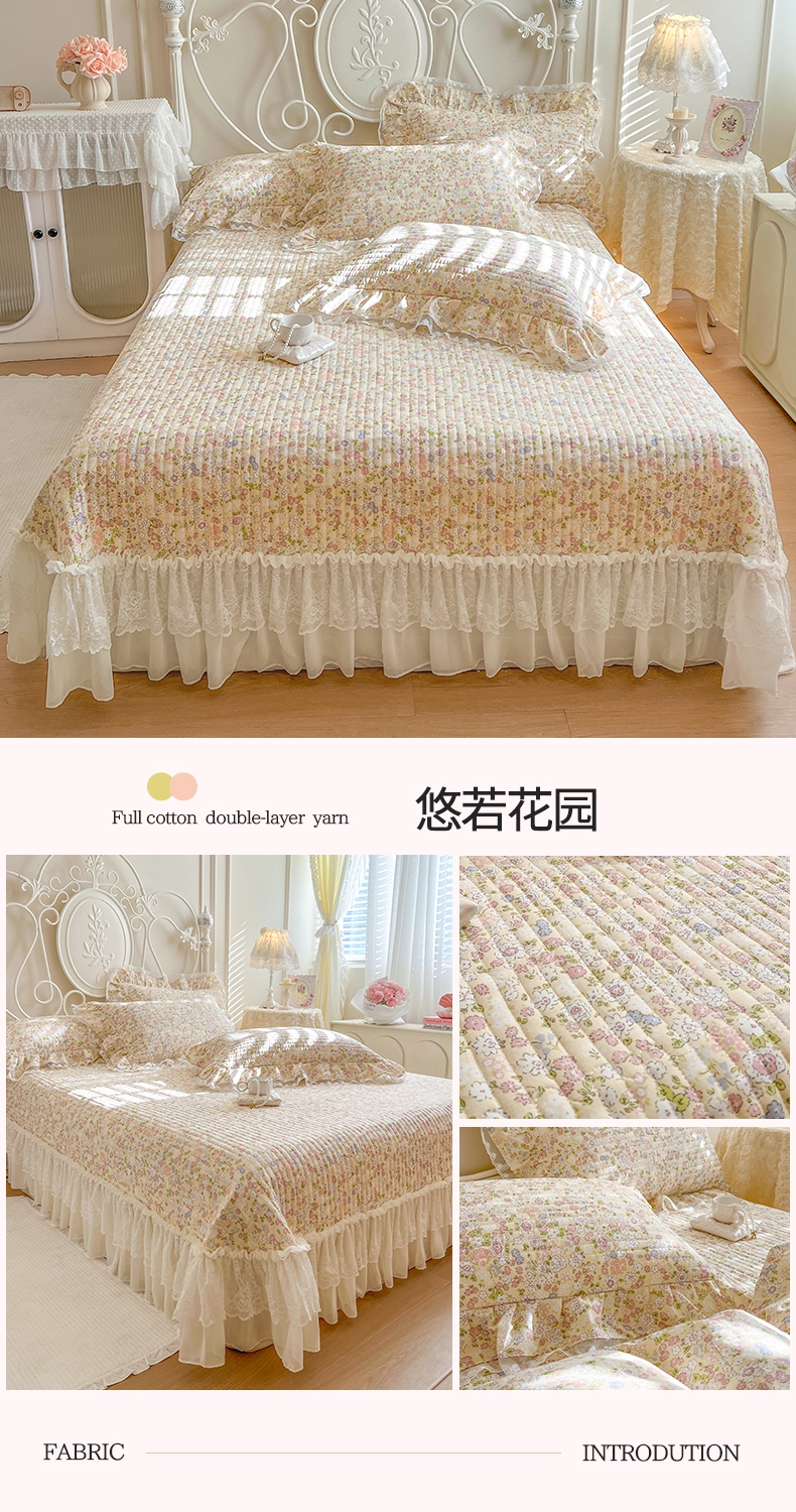 (总)麒豆豆 2025新款全棉蕾丝边床裙款床笠-晨暮花间,晨暮花间-绯红,晨暮花间-粉色,晨暮花间-麦绿,晨暮花间-米色,晨暮花间-浅紫,晨暮花间-雾蓝