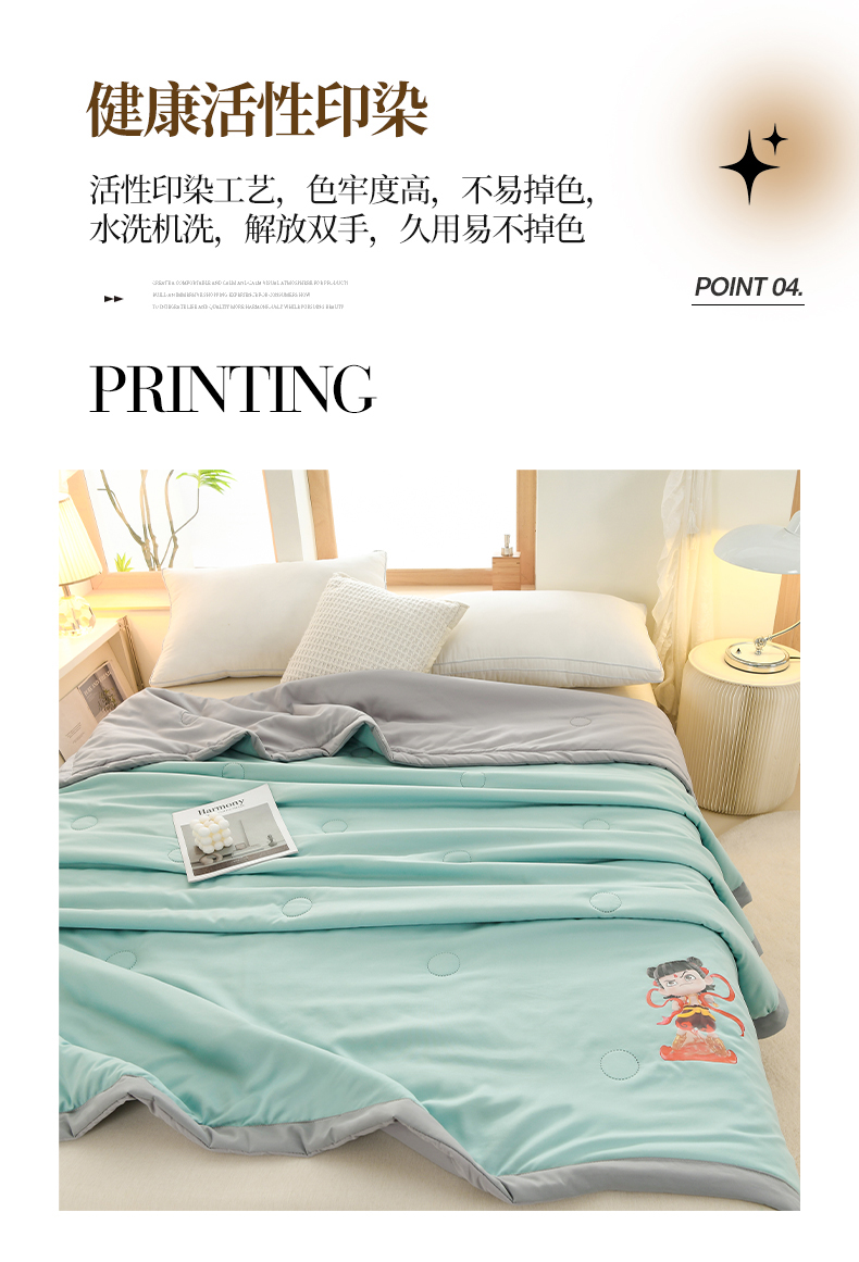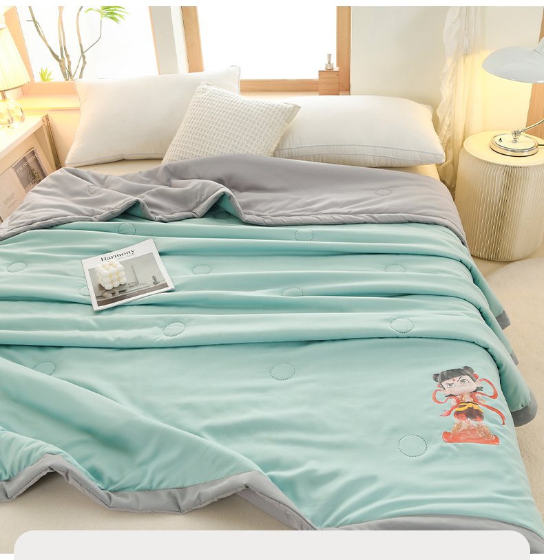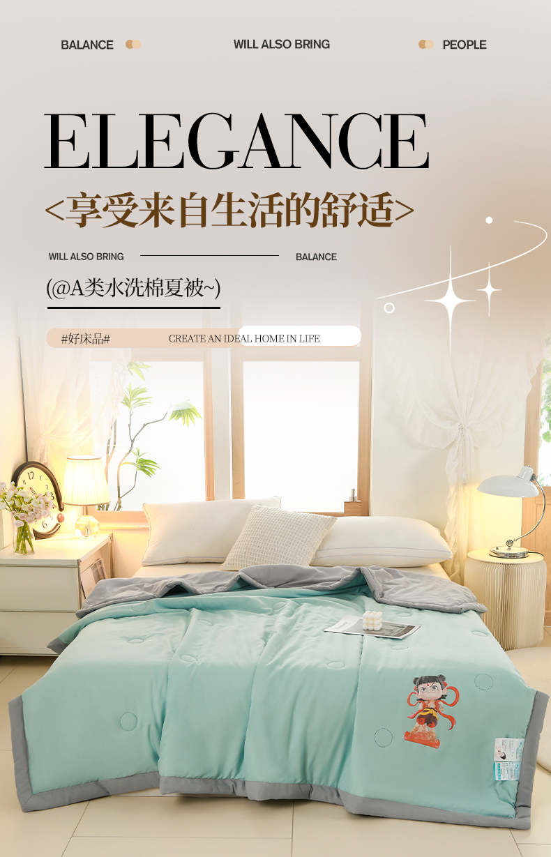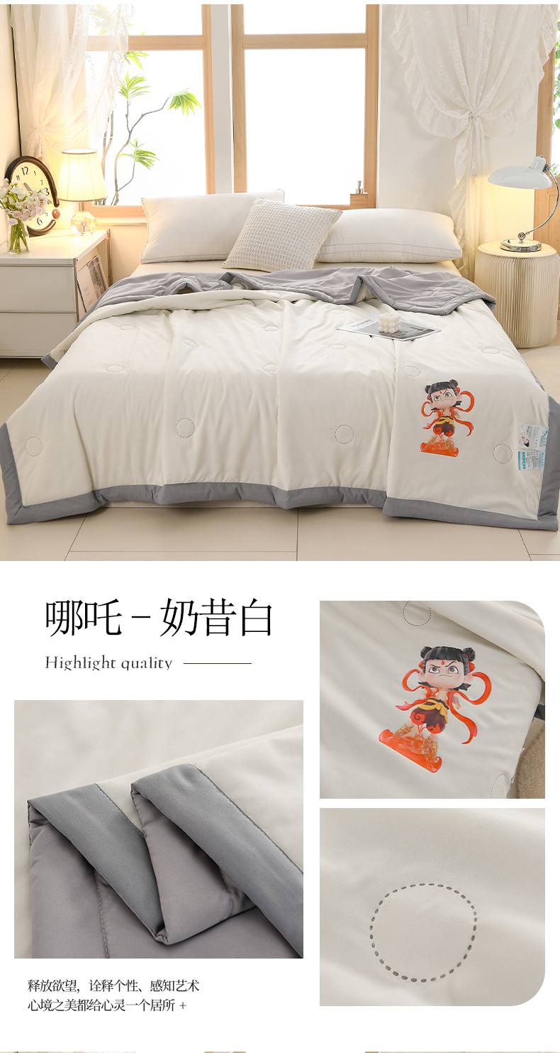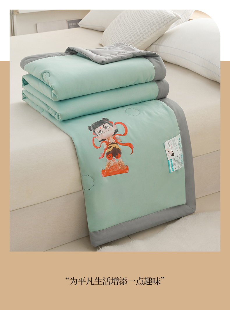 (总)易展家居 2025年新款水洗棉哪吒夏被,哪吒-奶昔白,哪吒-轻绿,哪吒-轻银粉,哪吒-轻银灰