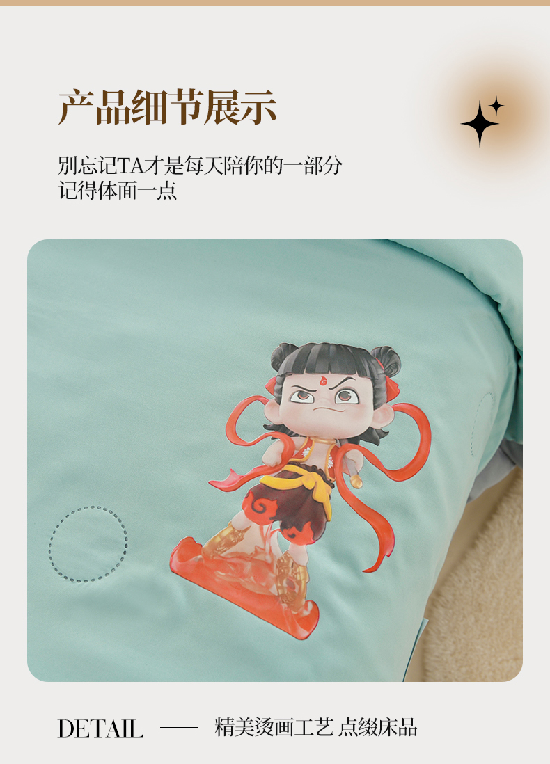 易展家居 2025年新款水洗棉哪吒夏被 哪吒-轻绿