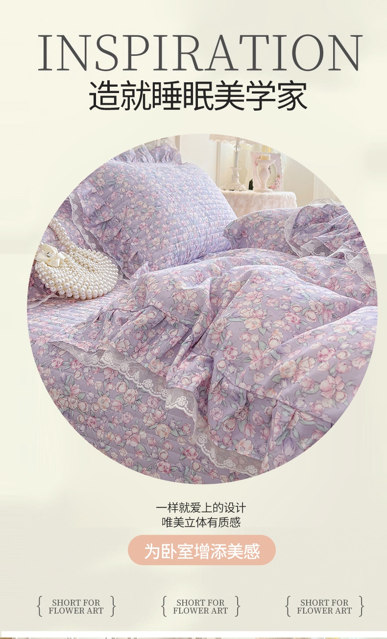 (总)网红馆(ck家纺) 2025新款亲肤舒适牛奶绒蕾丝边床裙四件套-秘密花园,秘密花园-粉色,秘密花园-卡其,秘密花园-米色,秘密花园-紫色