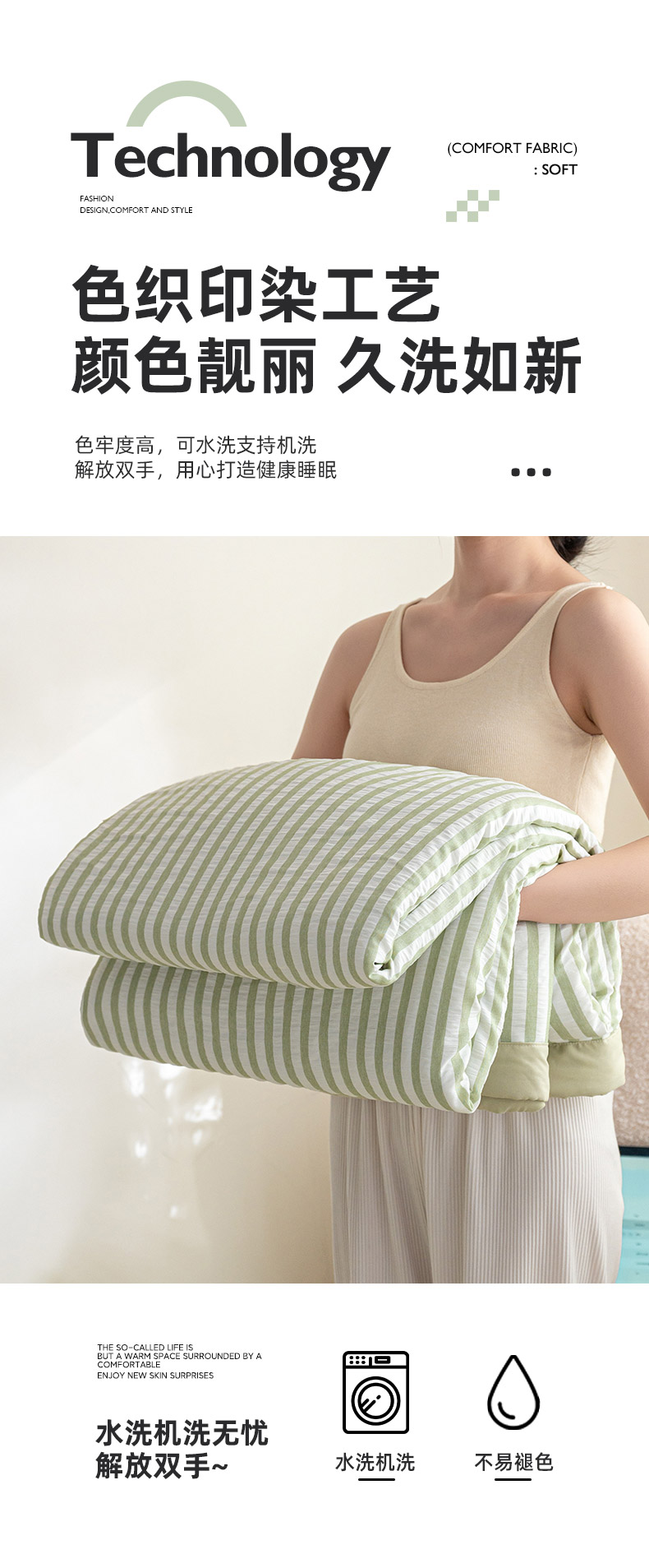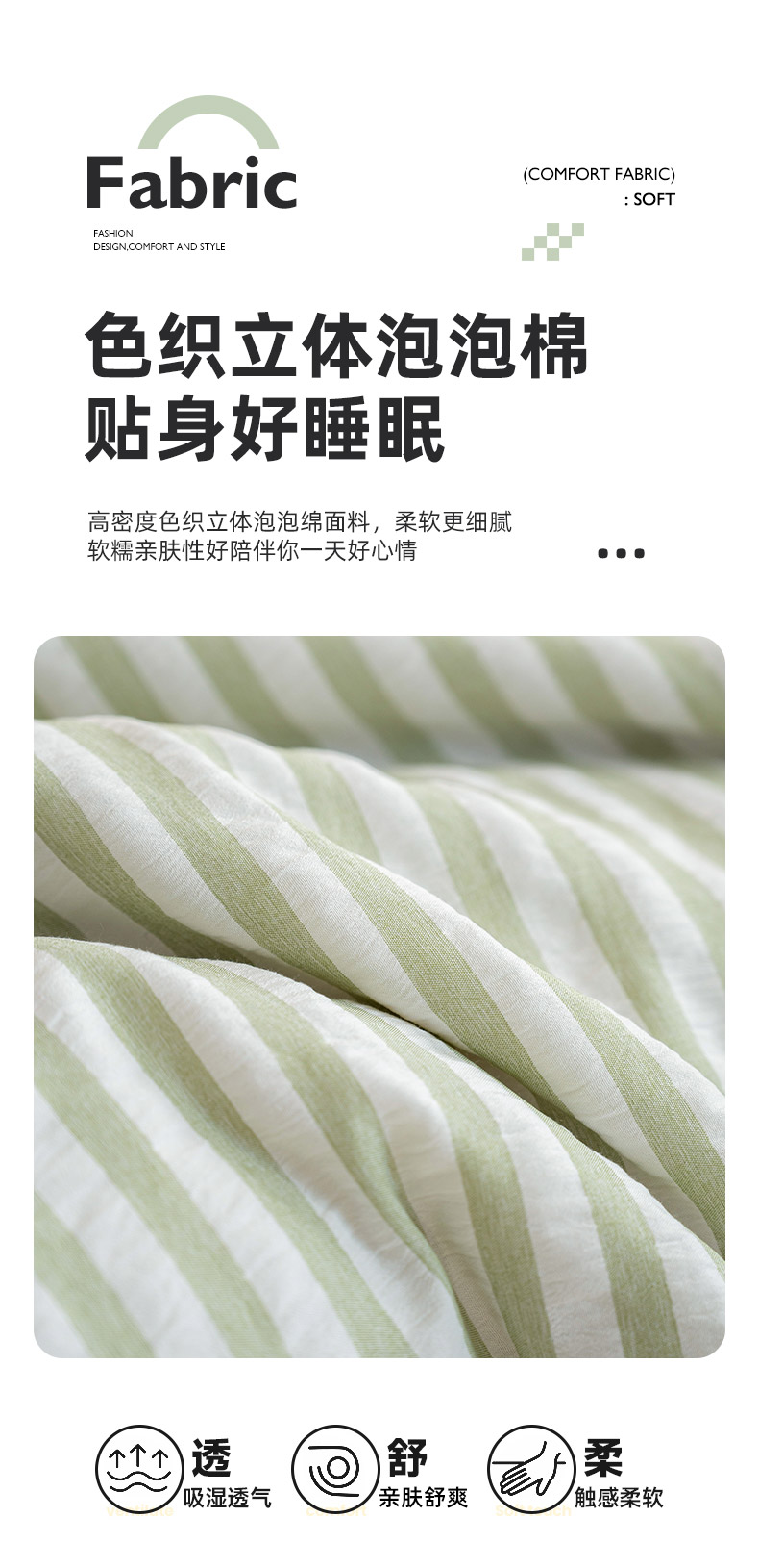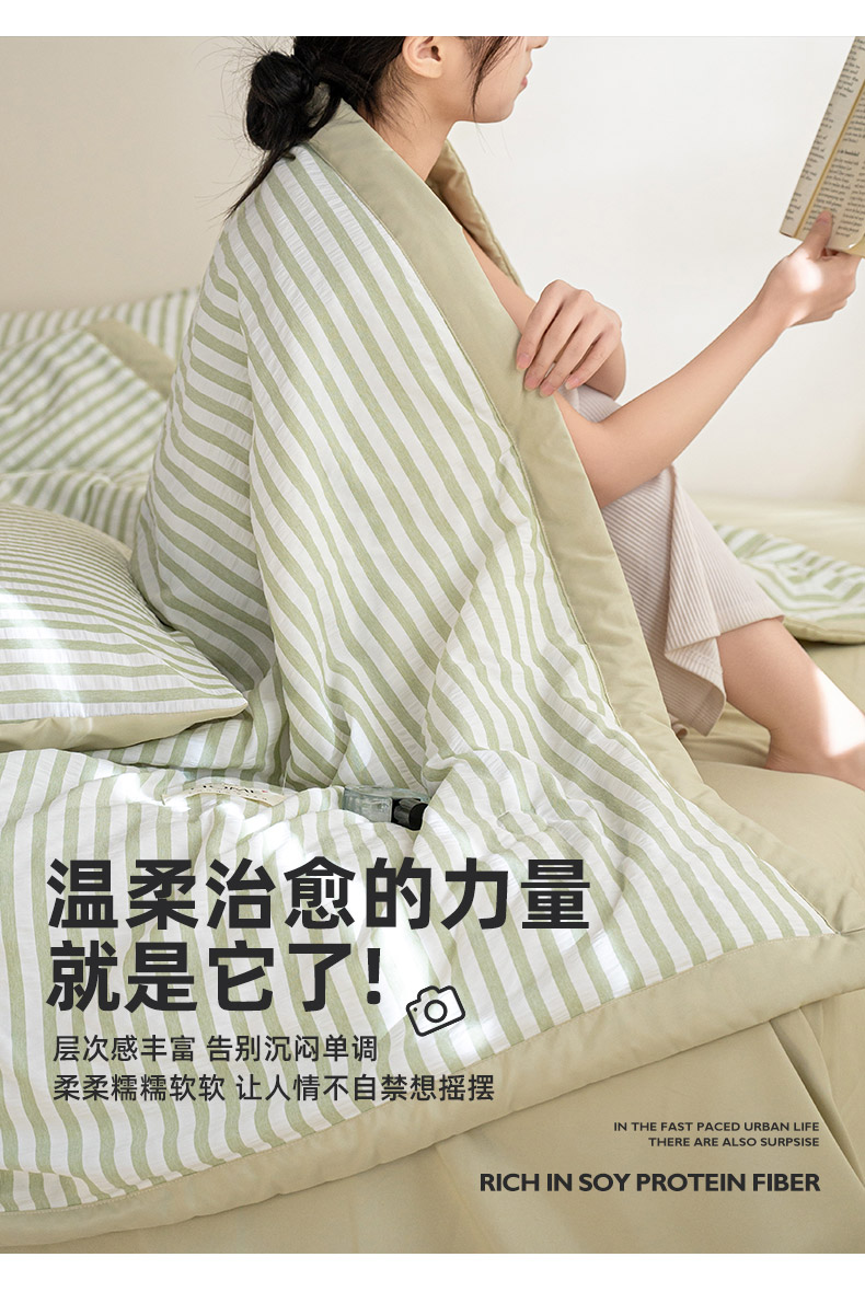 商品名称:吾诺 2025 色织立体泡泡棉彩虹系列大豆夏被子被芯夏凉被空调被 彩虹-绿
