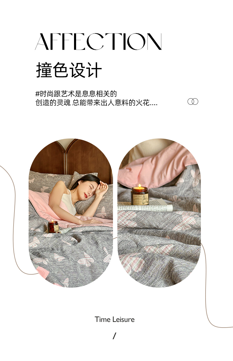 (总)吾诺 水洗原麻拼牛奶绒四件套 纽扣款四件套-原麻系列,晓梦,叠影,羽叶,叶藤,绍华,芳菲,花梦,暗香