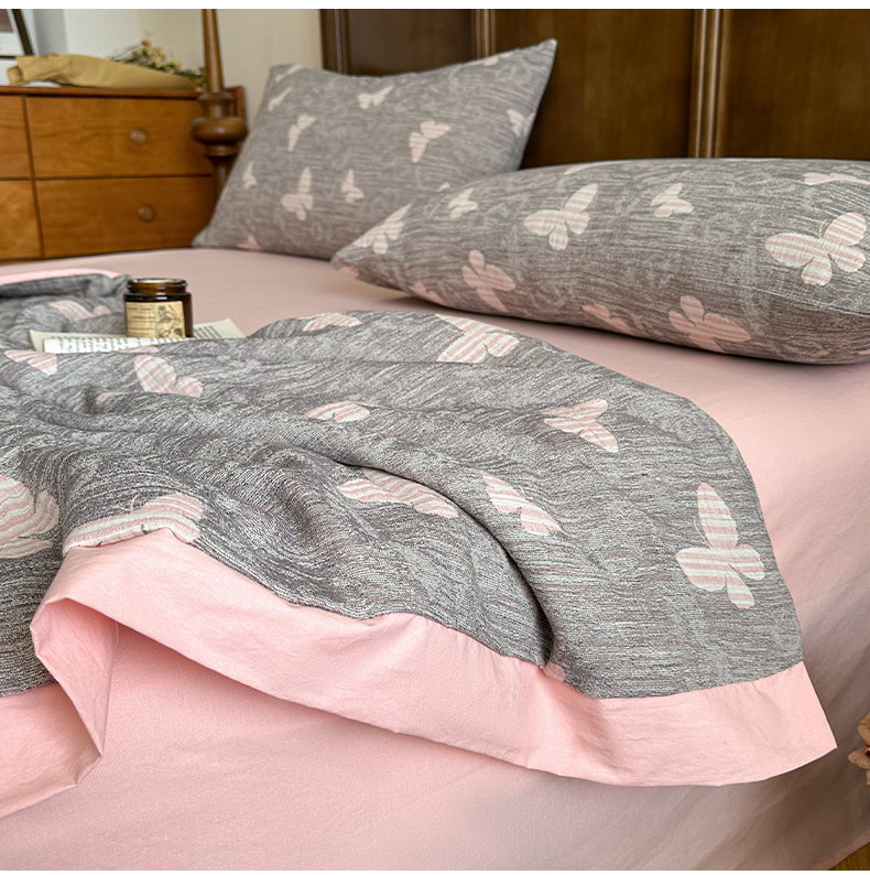 吾诺 2025 全棉色织提花三层纱大豆夏被全棉夏被子被芯空调被夏凉被 蝶舞-粉