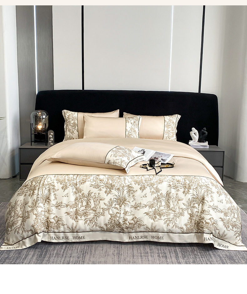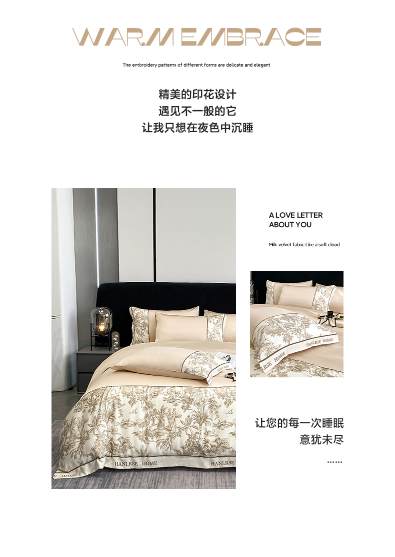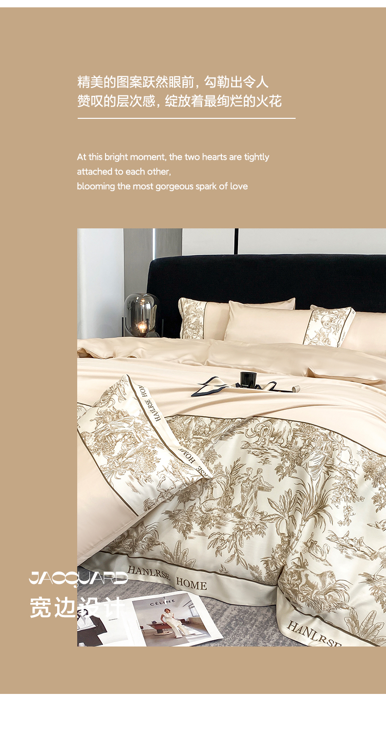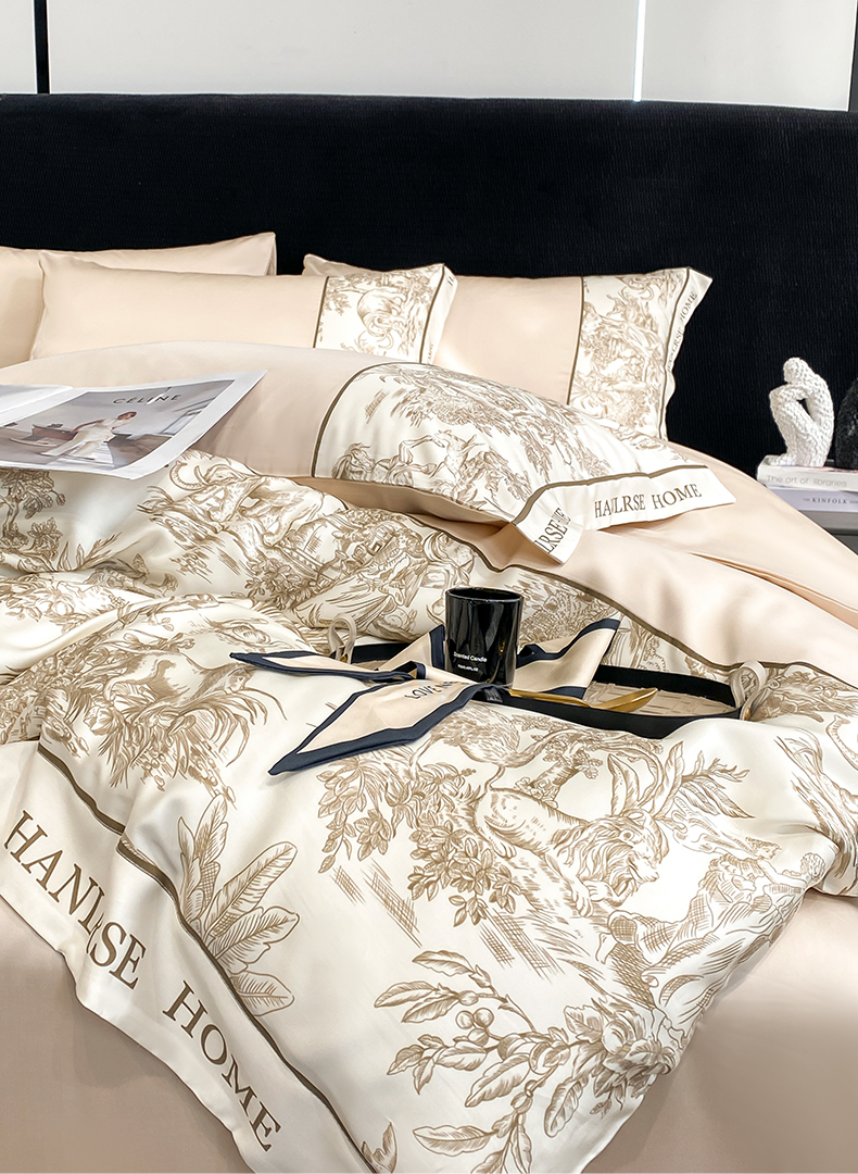 商品名称:花愿(原花纪) 2025新款水洗冰丝印花四件套 索菲亚 奶茶