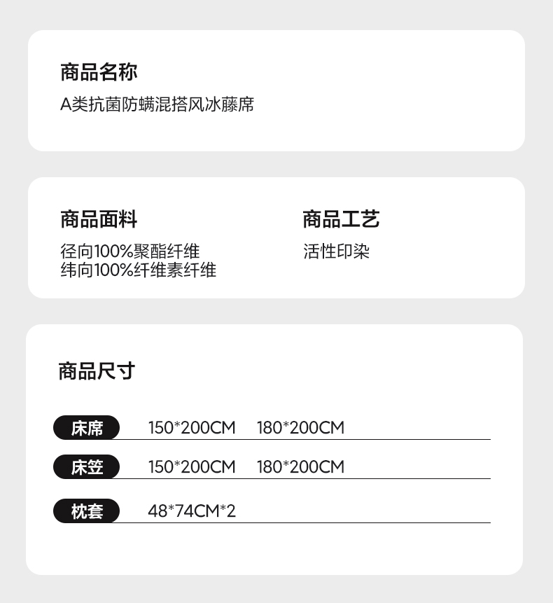商品名称:三味舒屋 2025新款韩风简约抗菌防螨900D高端养生冰藤席 床席 奶盐蓝