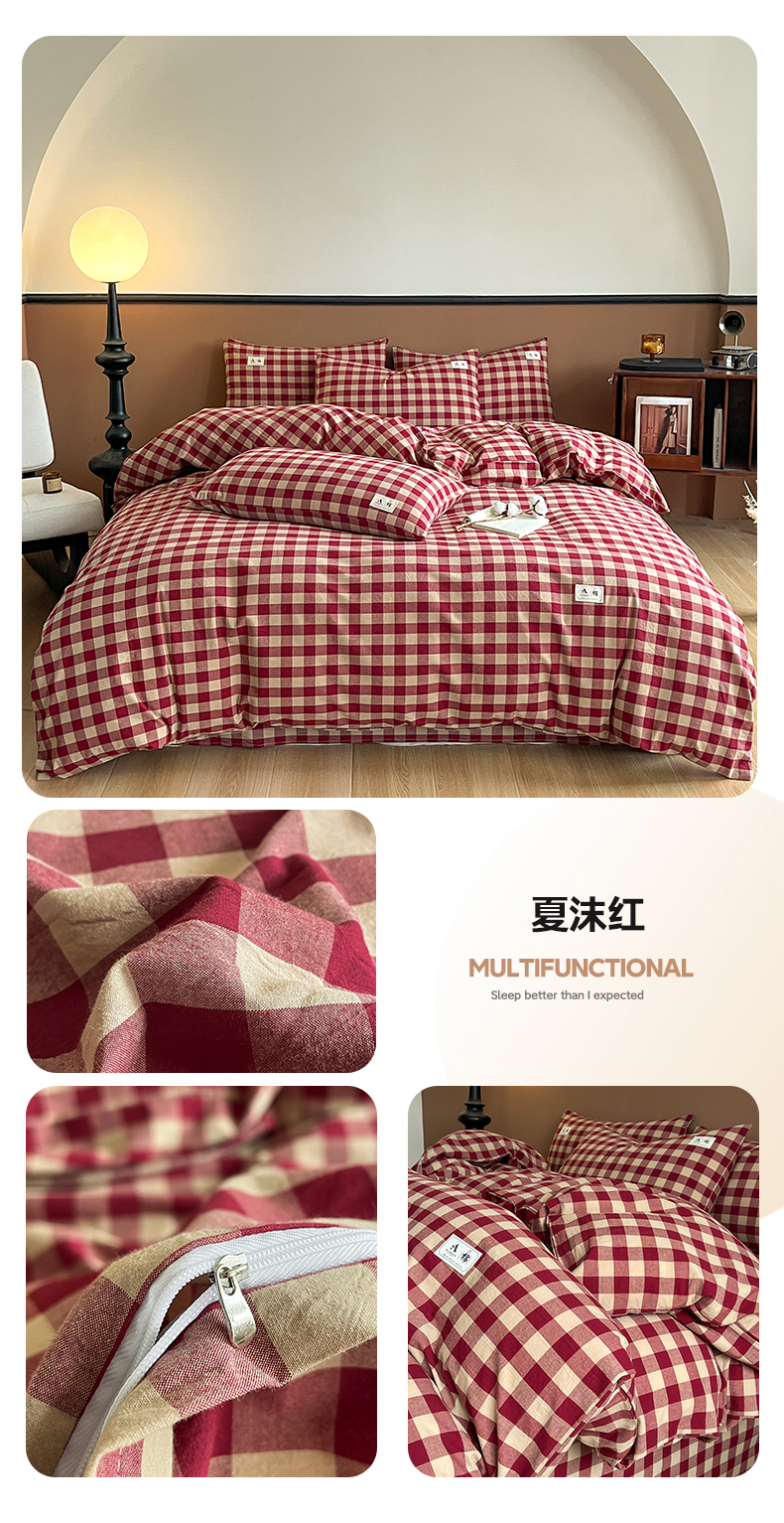 当前位置: 91家纺网 > 商品网购 > 床品套件 > 四件套 > 其它四件套 > 21度C 2025复古风全棉A类母婴级四件套 日落红