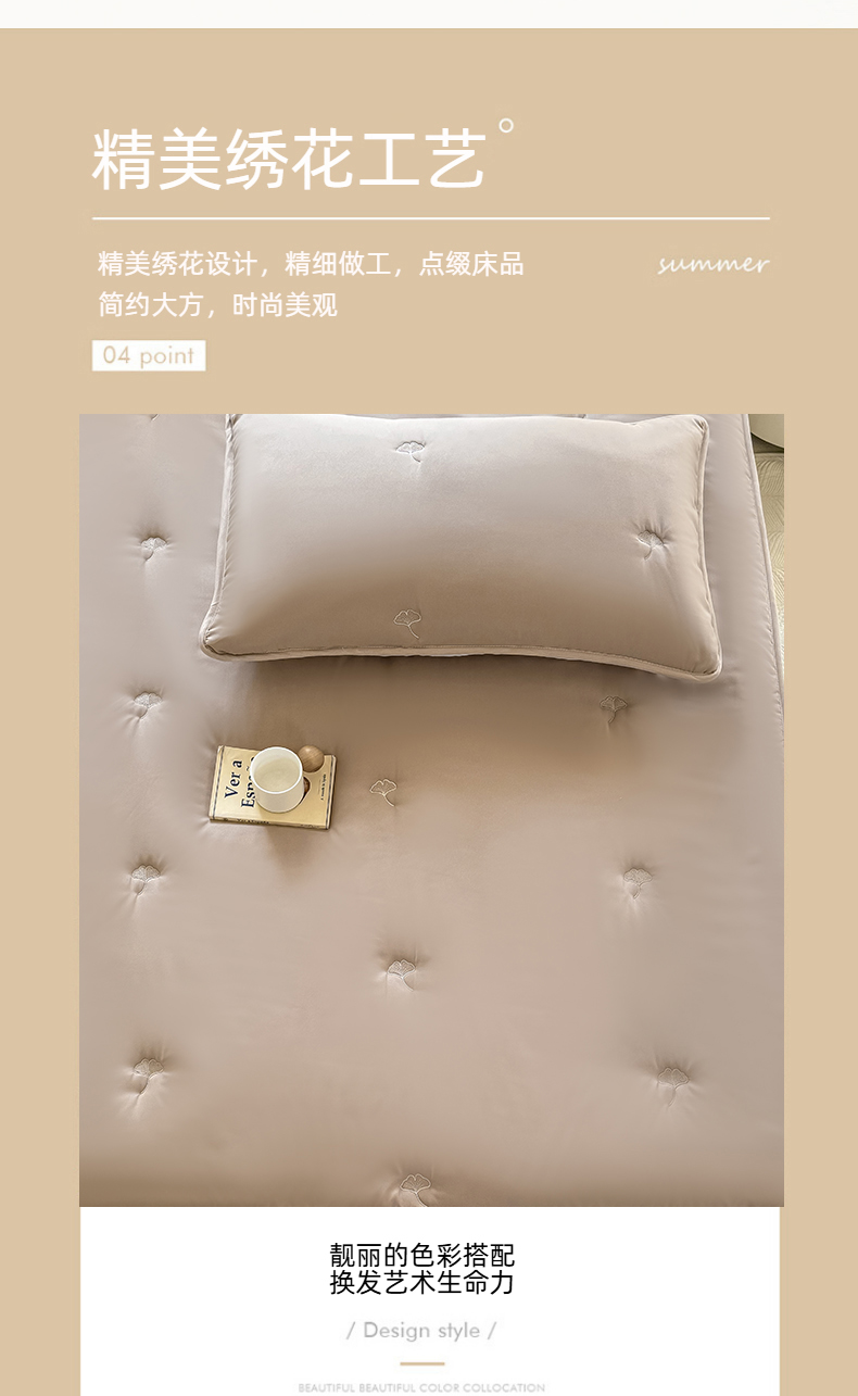 • 91家纺网 家纺一手货源 找家纺 萌飞 2025新款A类亲肤大豆棉刺绣床垫床褥学生床垫 银杏叶驼