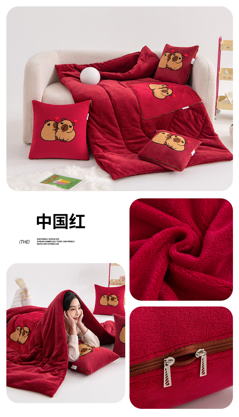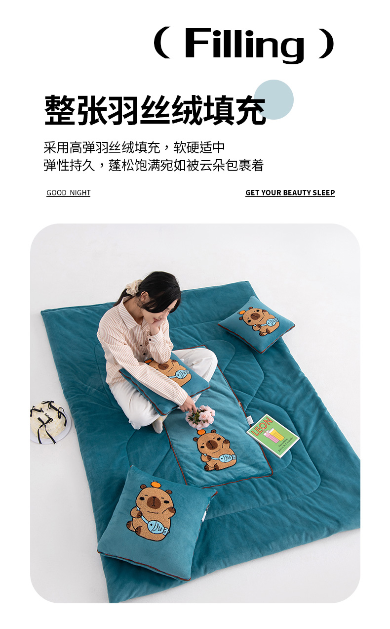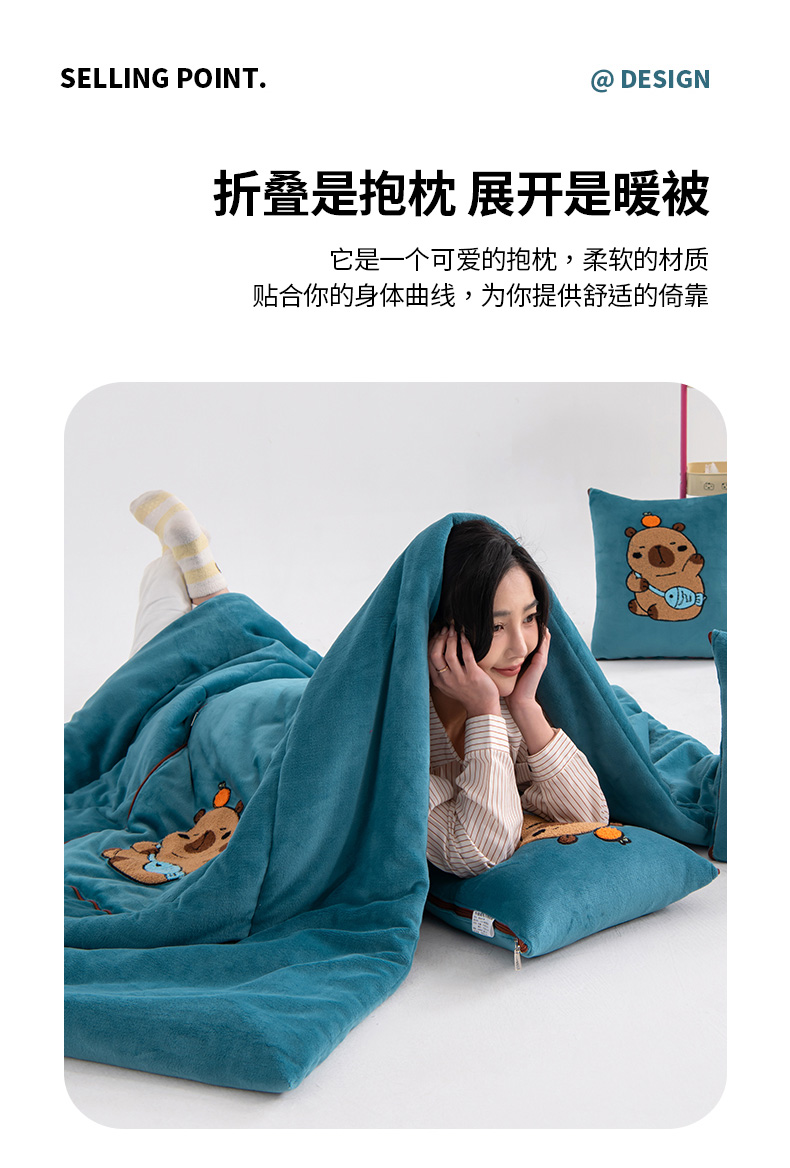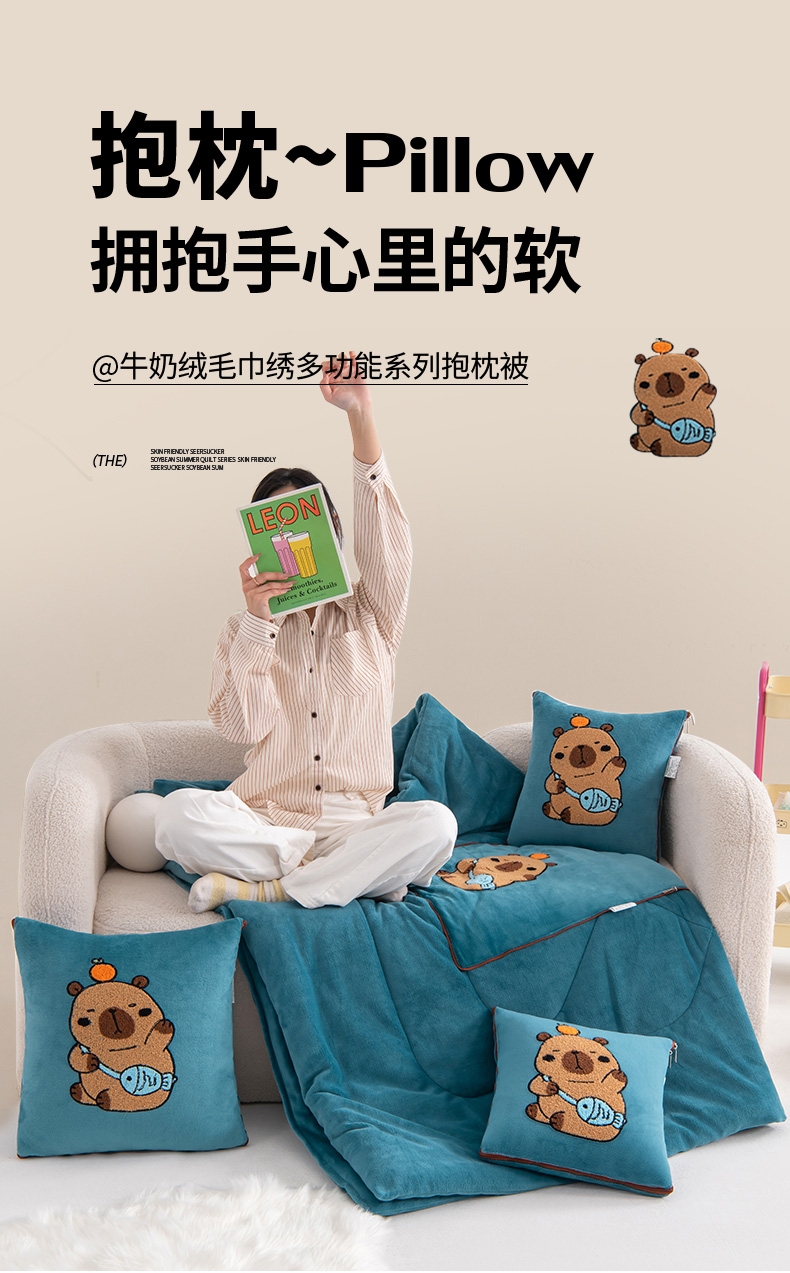 商品名称:(总)宝马家纺(原梦童画)2025新款卡皮巴拉牛奶绒毛巾绣抱枕被