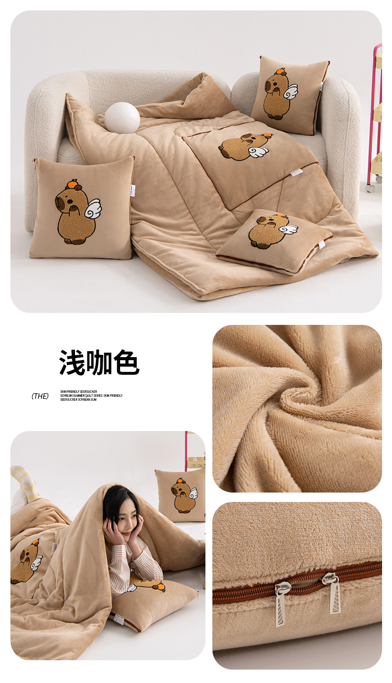 商品名称:宝马家纺(原梦童画)2025新款卡皮巴拉牛奶绒毛巾绣抱枕被 浅咖色