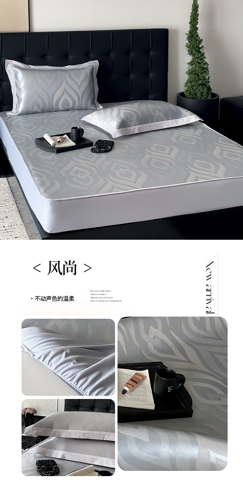 商品名称:由有家居 2025新款A类轻奢高精密7A抗菌色织可水洗冰丝床笠款凉席三件套 风尚