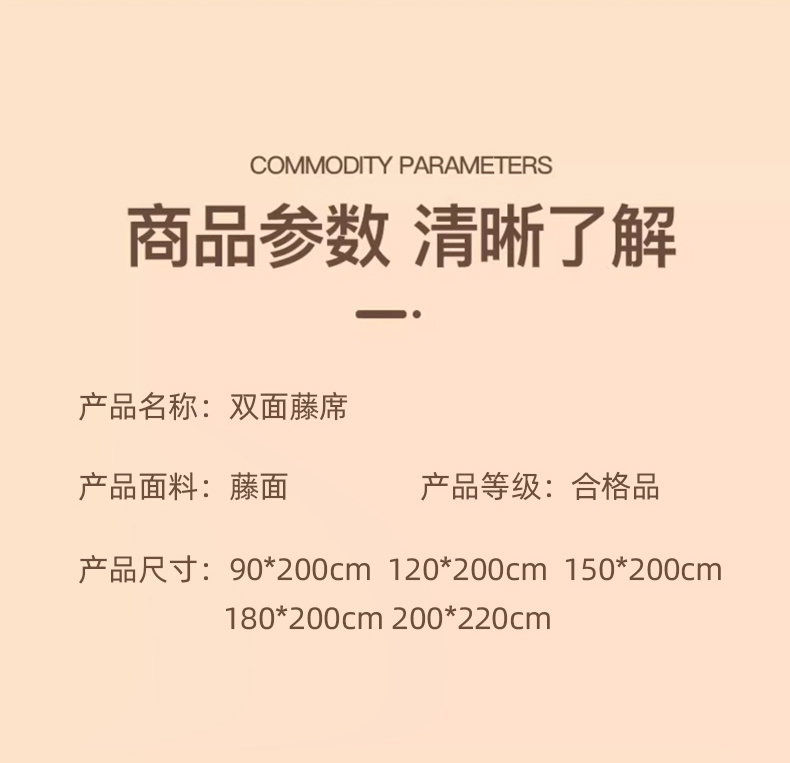 商品名称:席佬大 2025新款古藤冰丝双面可用升级藤席学生宿舍席 浅灰