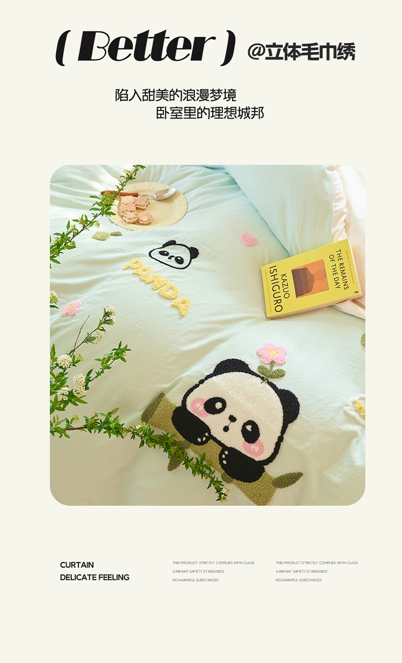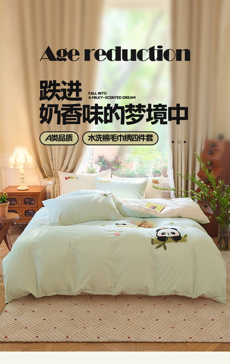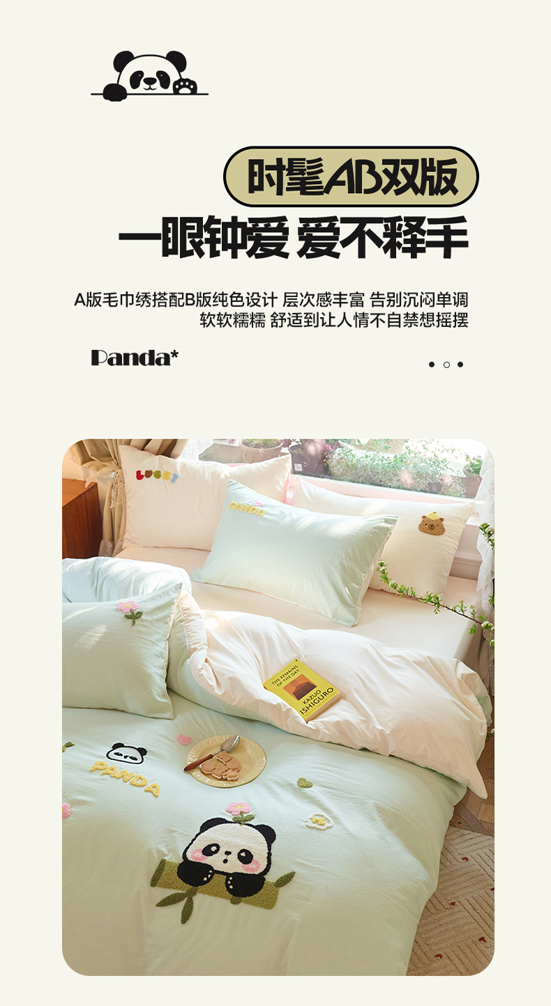 当前位置: 91家纺网 > 商品网购 > 床品套件 > 四件套 > 全棉普通四件套 > 鑫喜莱 2025新款水洗棉毛巾绣四件套场景一【全系图有买家秀文件】 熊猫呆呆