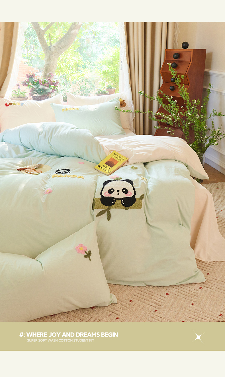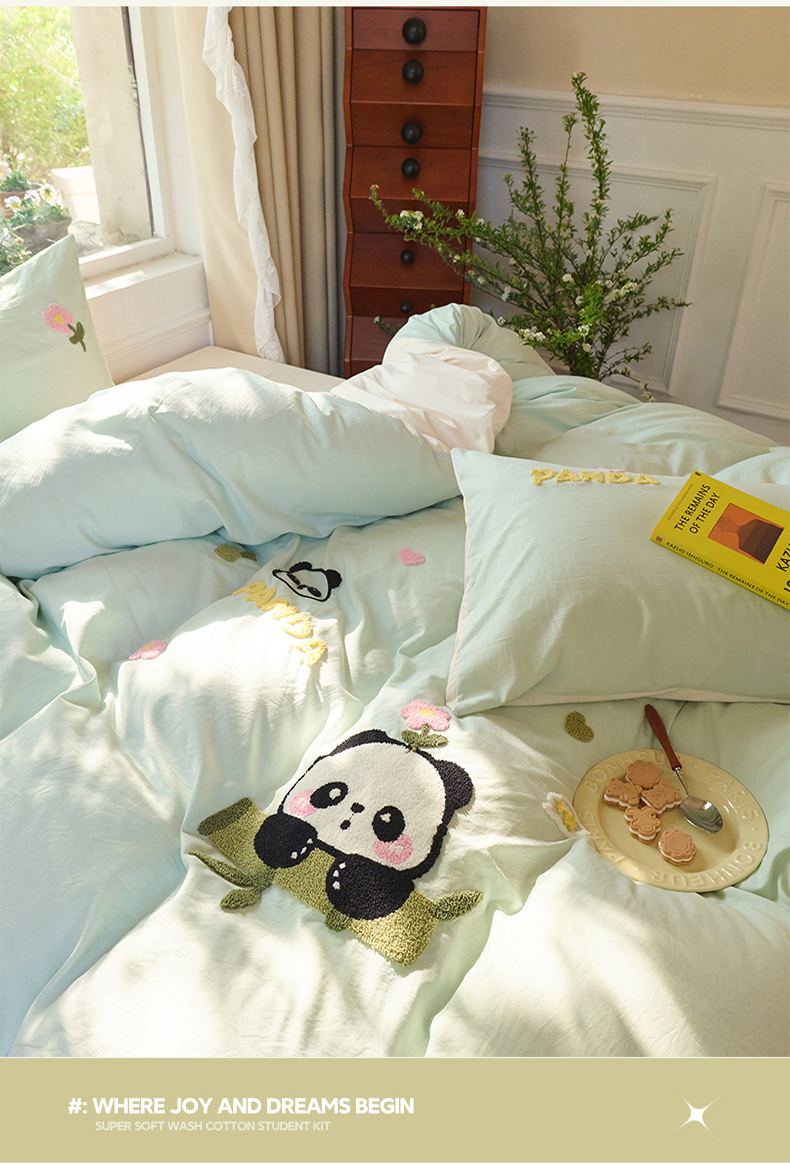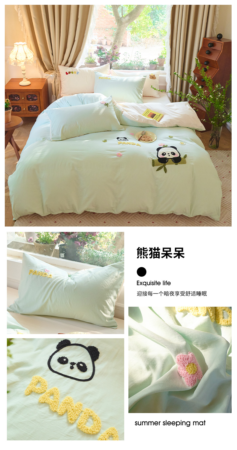 当前位置: 91家纺网 > 商品网购 > 床品套件 > 四件套 > 全棉普通四件套 > 鑫喜莱 2025新款水洗棉毛巾绣四件套场景一【全系图有买家秀文件】 熊猫呆呆