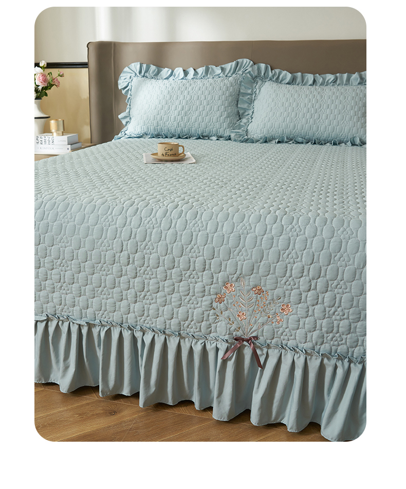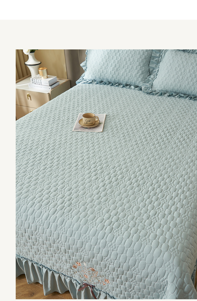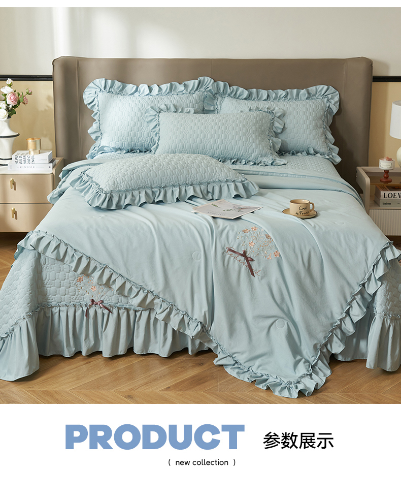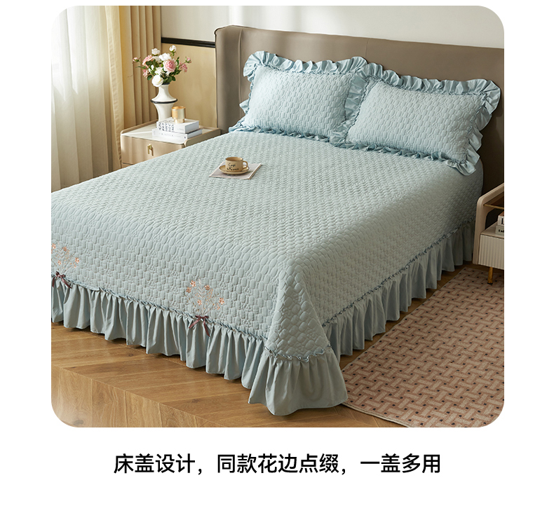 商品名称:恒爱家纺 2025新款A类情缘多功能床盖四件套 浅灰蓝
