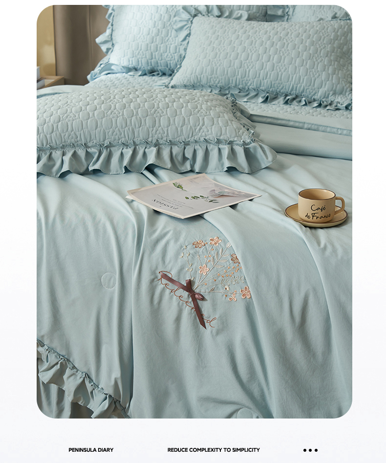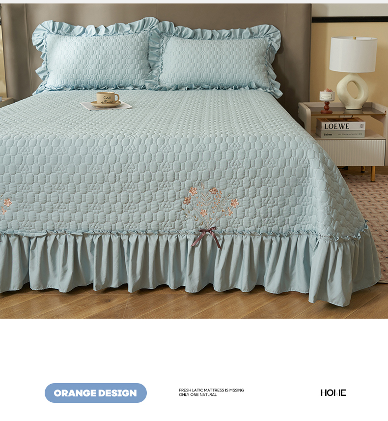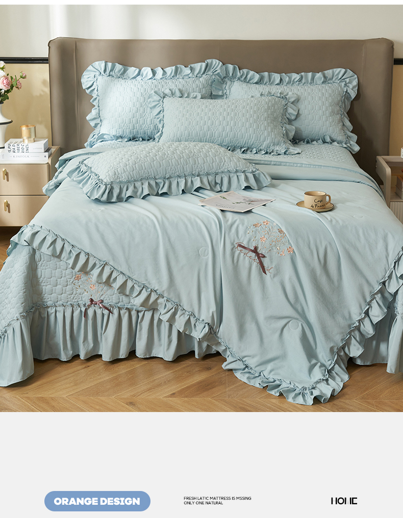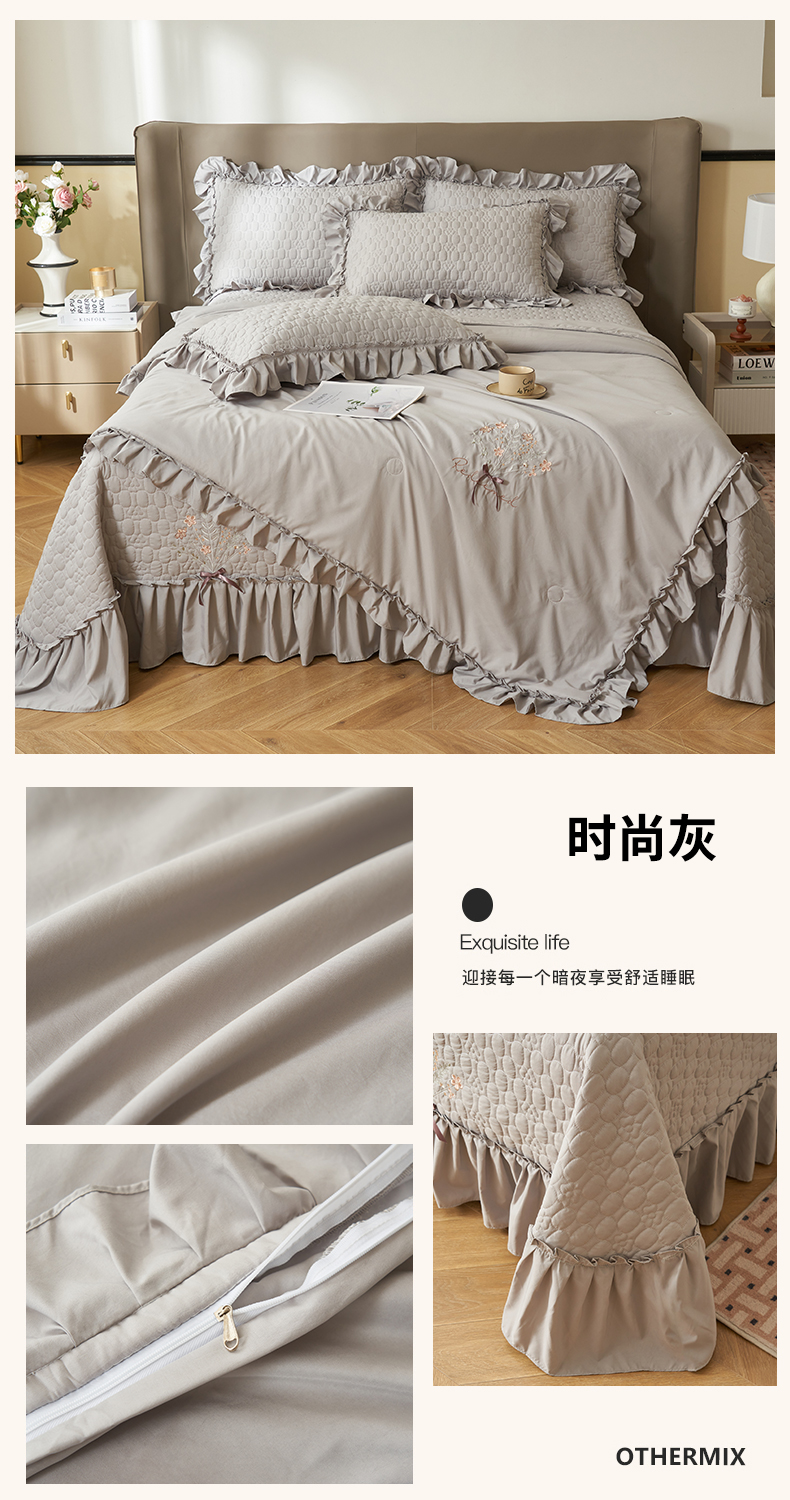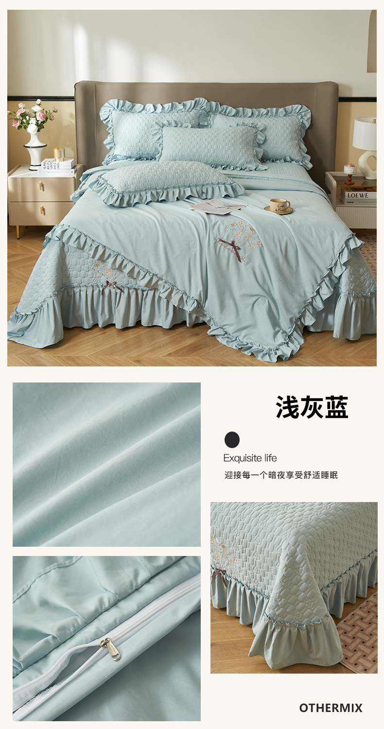 恒爱家纺 2025新款A类情缘多功能床盖四件套 浅灰蓝