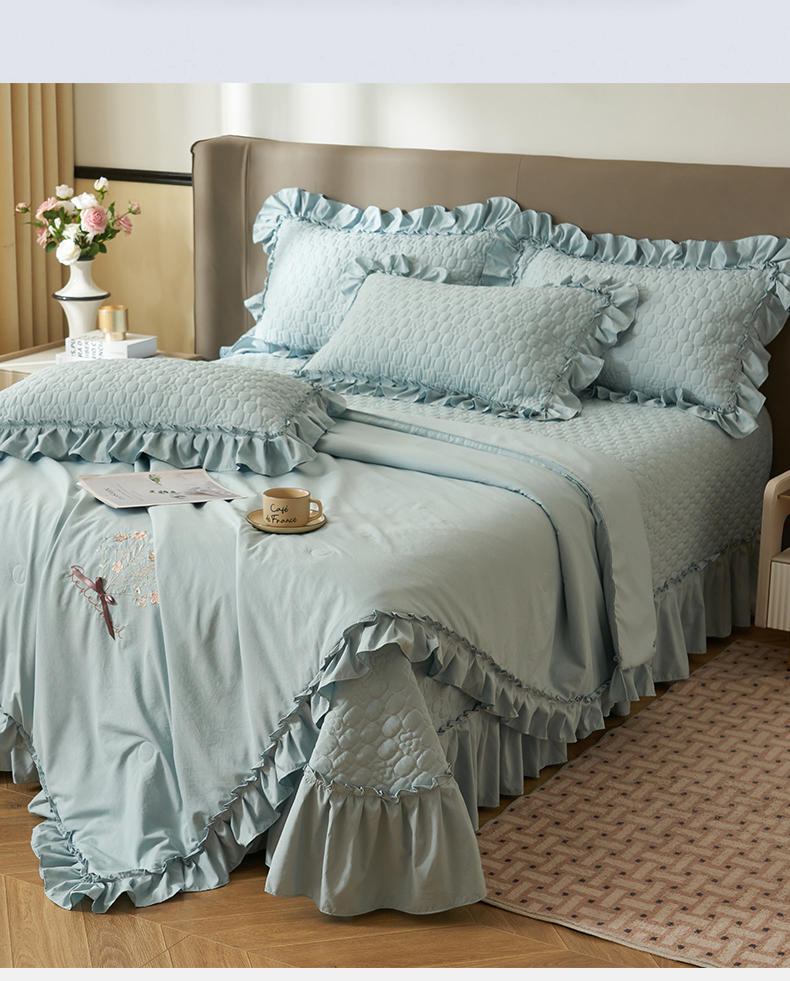 (总)恒爱 2022秋冬水晶绒翩翩花舞夹棉床裙四件套,大红色,豆沙红,橄榄绿,公主粉,桔色,咖啡色,孔雀绿,拉菲红,罗兰紫,玫红色,美人玉,米白色,米驼色,抹茶绿,浅灰色,紫色