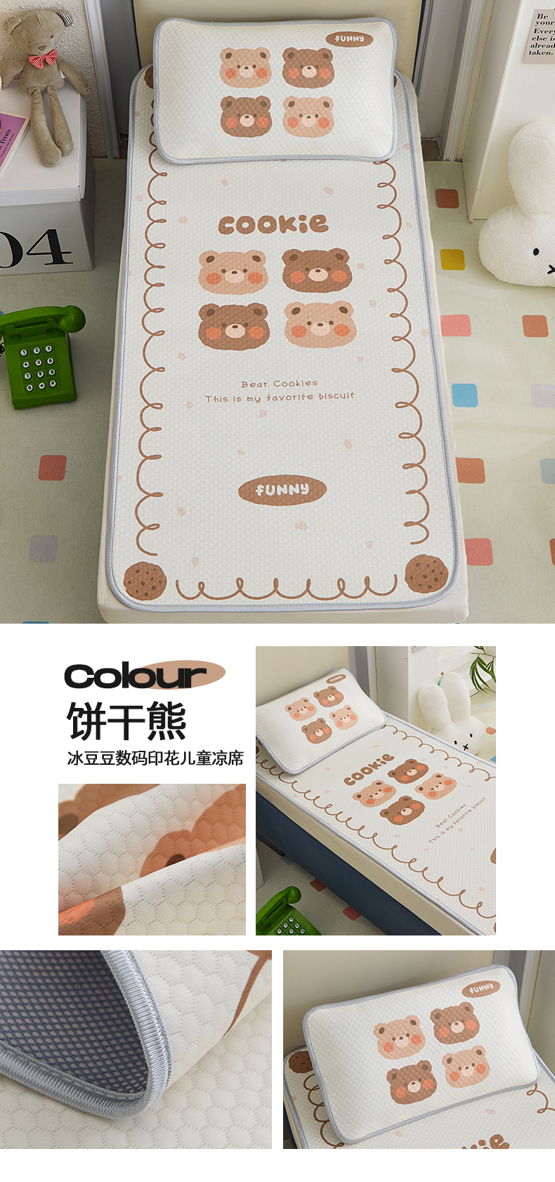 欣品希家纺 2025新款A类冰豆豆数码印花儿童凉席 饼干熊