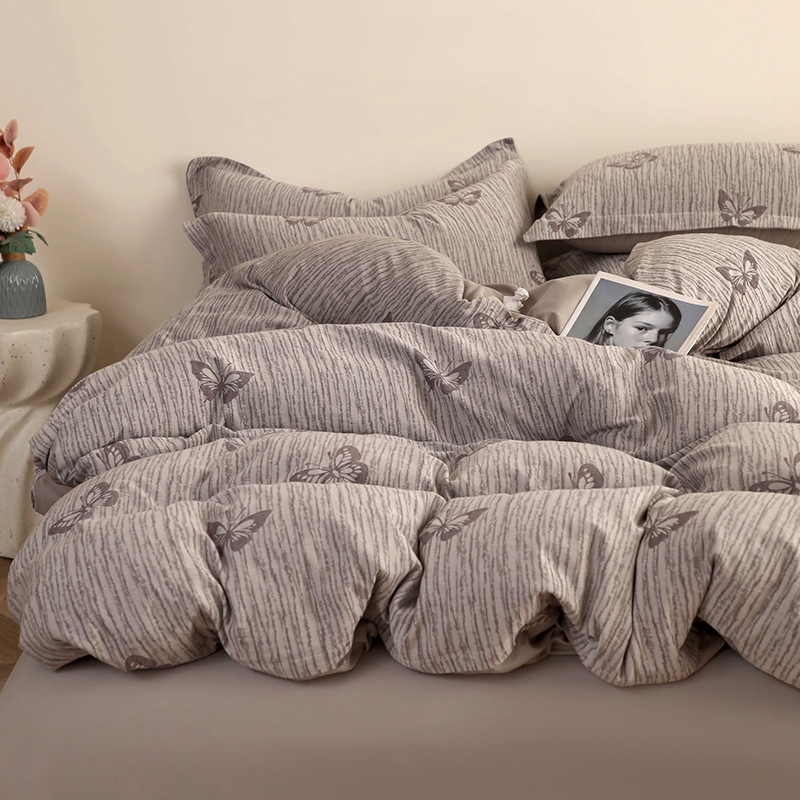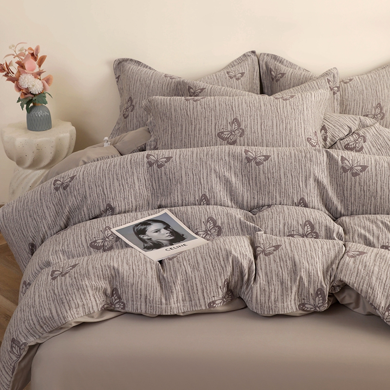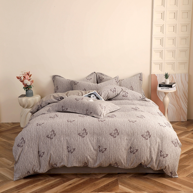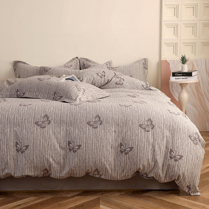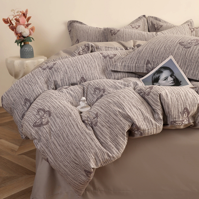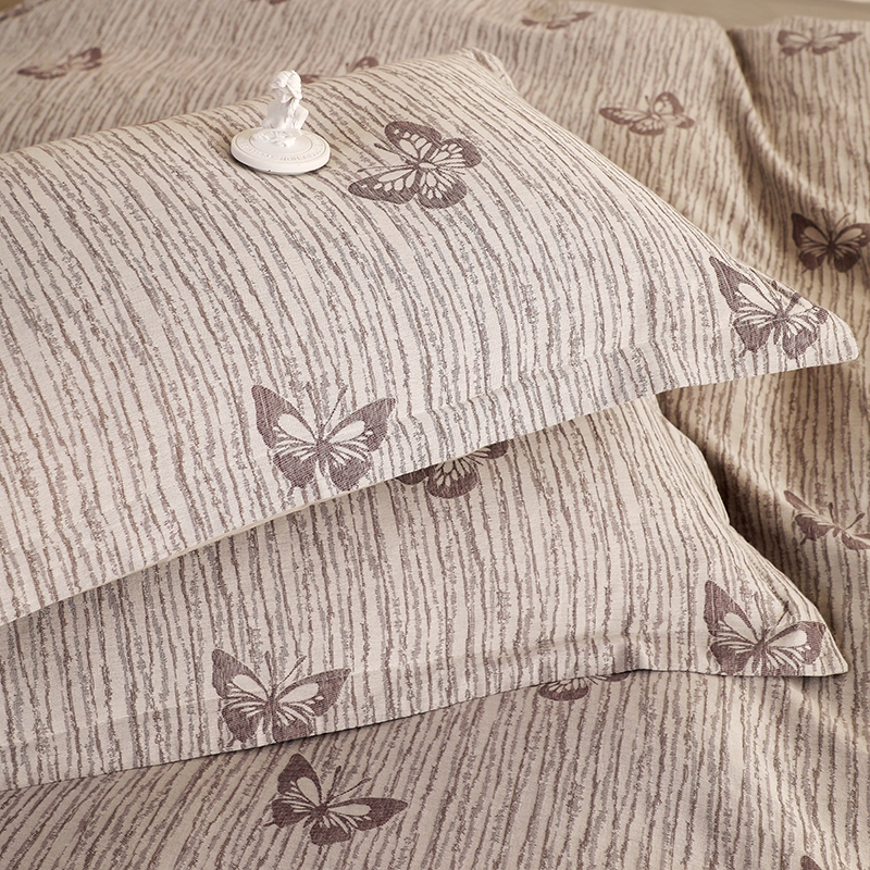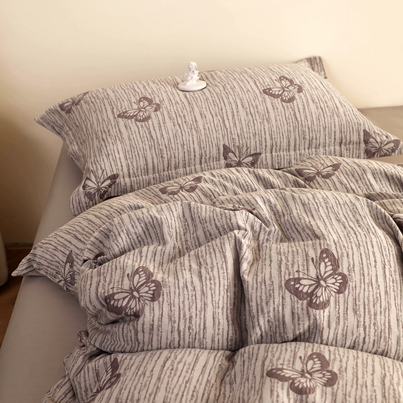 昊川家纺 2025新款全棉双层纱水洗色织大提花四件套 蝶影