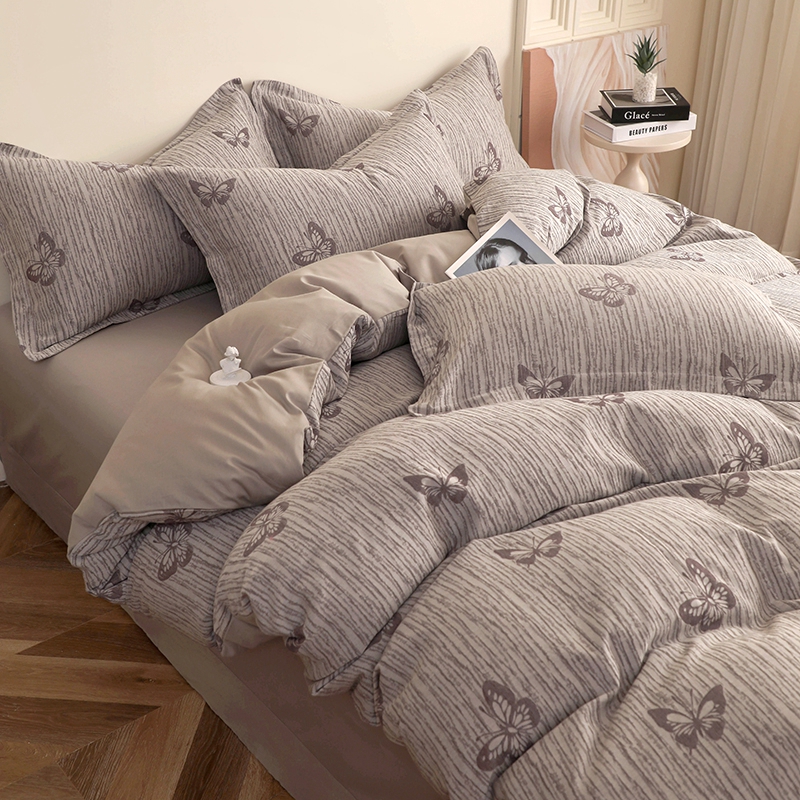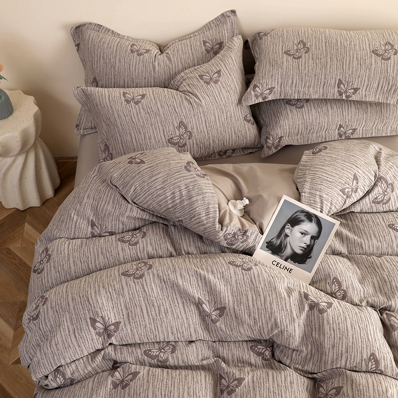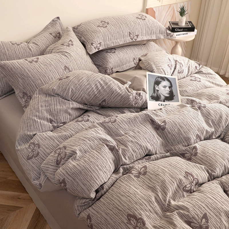商品名称:昊川家纺 2025新款全棉双层纱水洗色织大提花四件套 蝶影