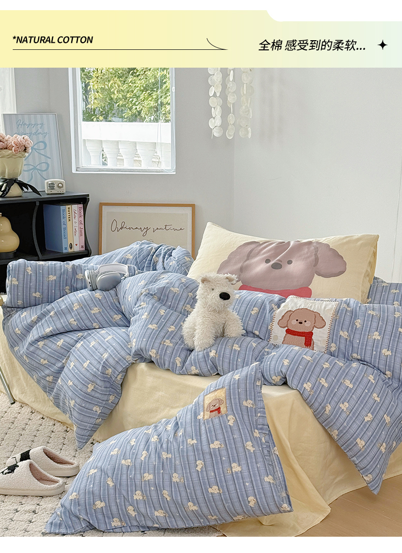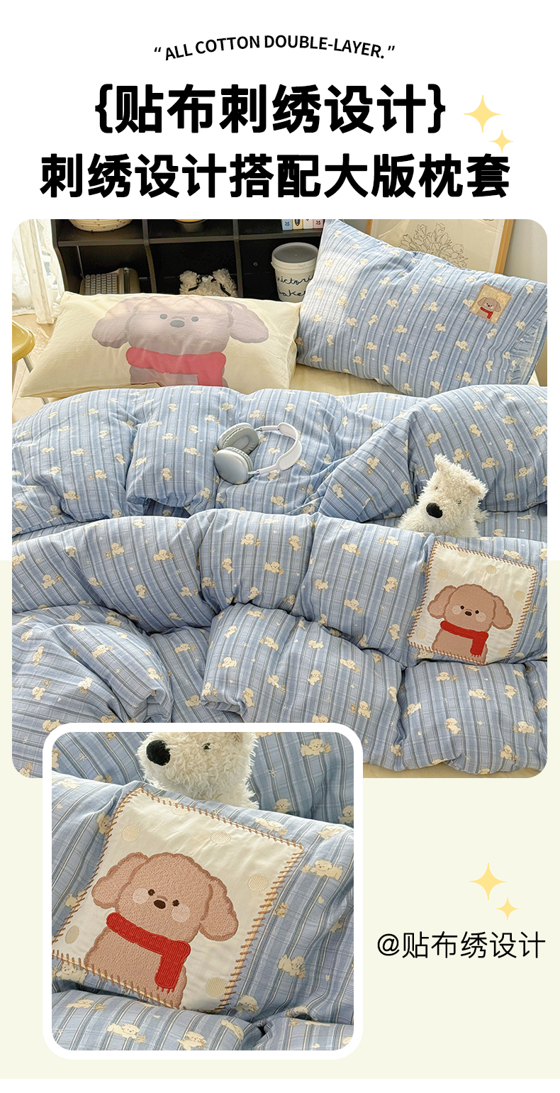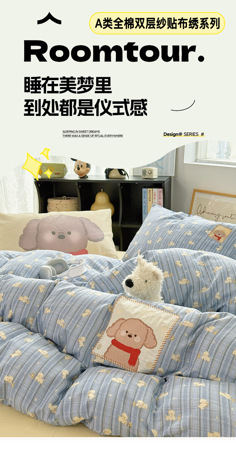 商品名称:TT.one 塔塔家居 2025新款全棉刺绣双层纱贴布绣四件套 哆哆狗