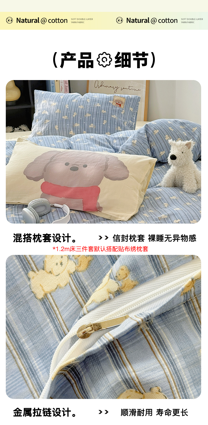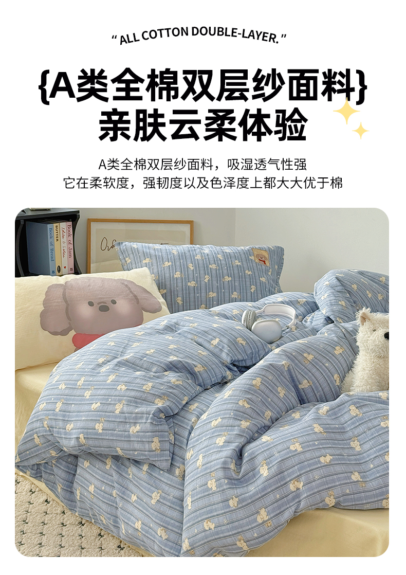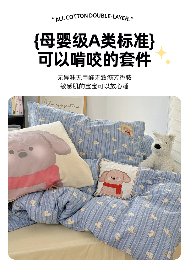 商品名称:TT.one 塔塔家居 2025新款全棉刺绣双层纱贴布绣四件套 哆哆狗