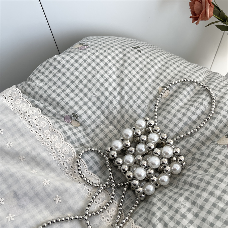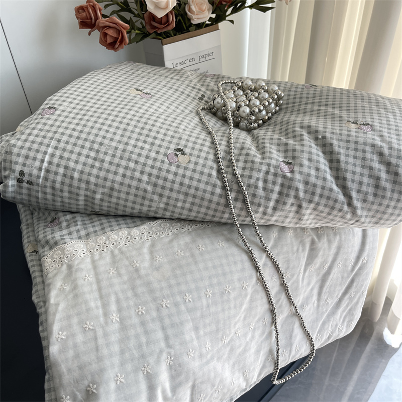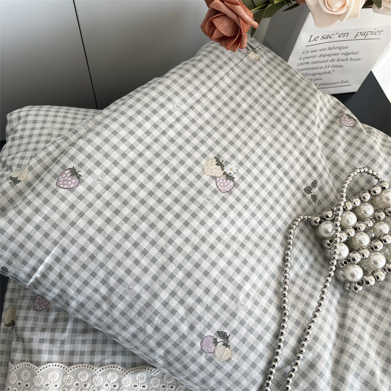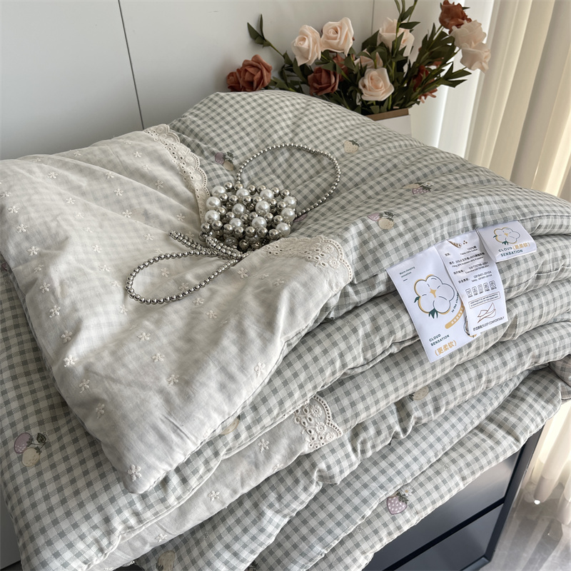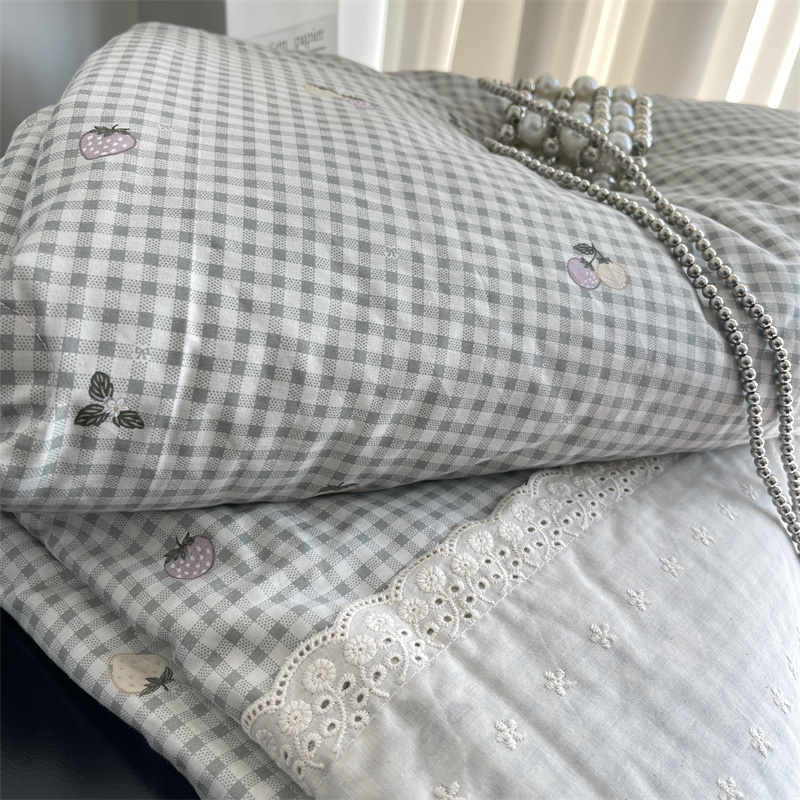 奈萝家纺 奈萝2025新款全棉13372法式花边纯棉夏被春秋被 格子草莓